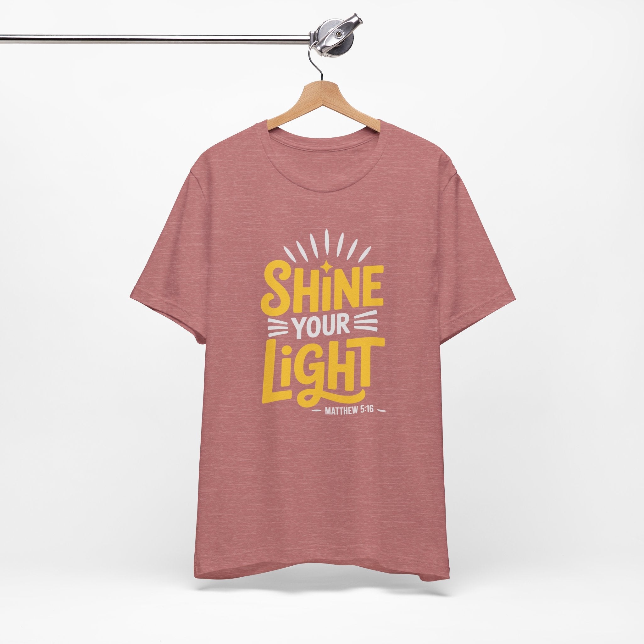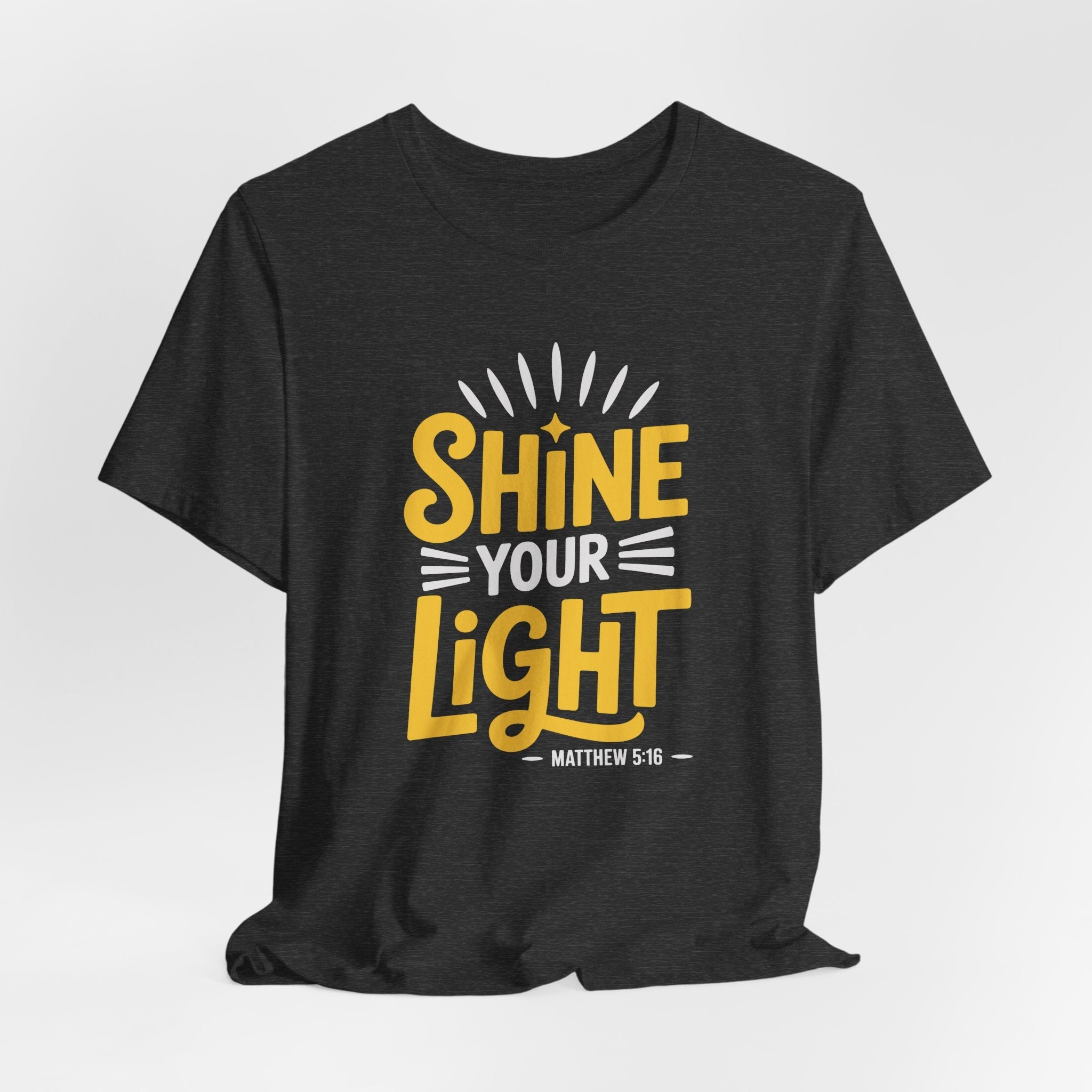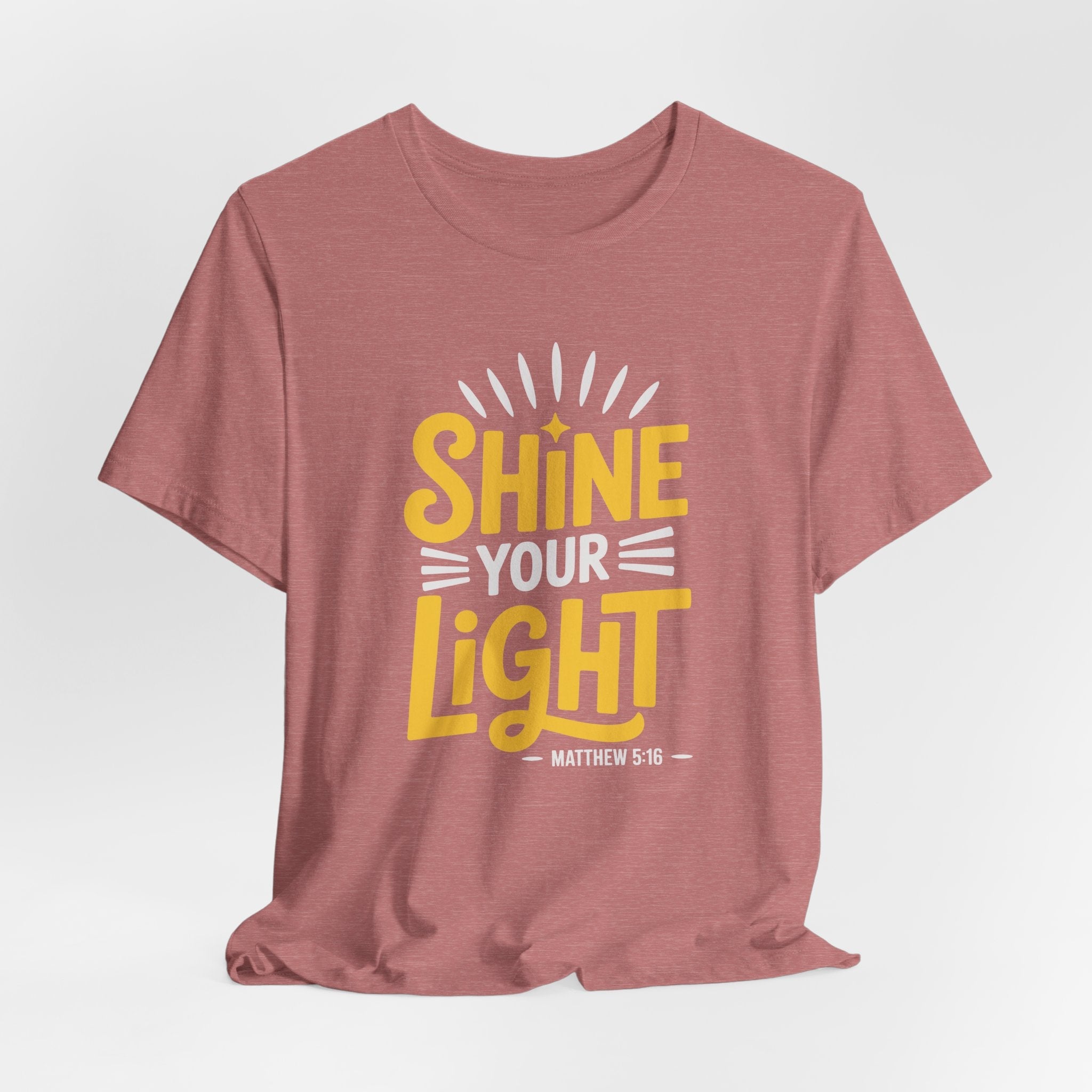 Shine Your Light tee • a bright, uplifting Christian T-shirt inspired by Matthew 5:16 — a joyful reminder to let your faith shine and reflect God’s love wherever you go.