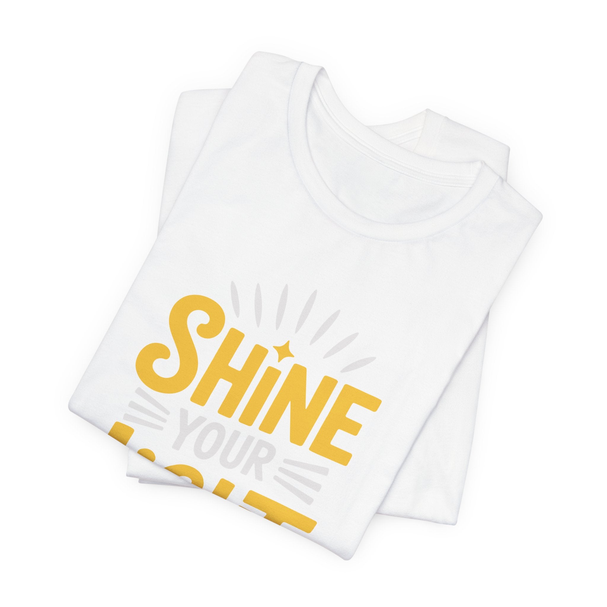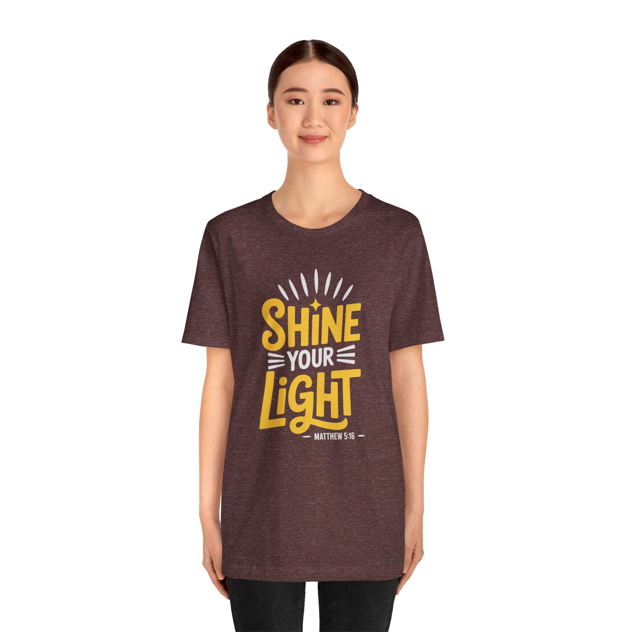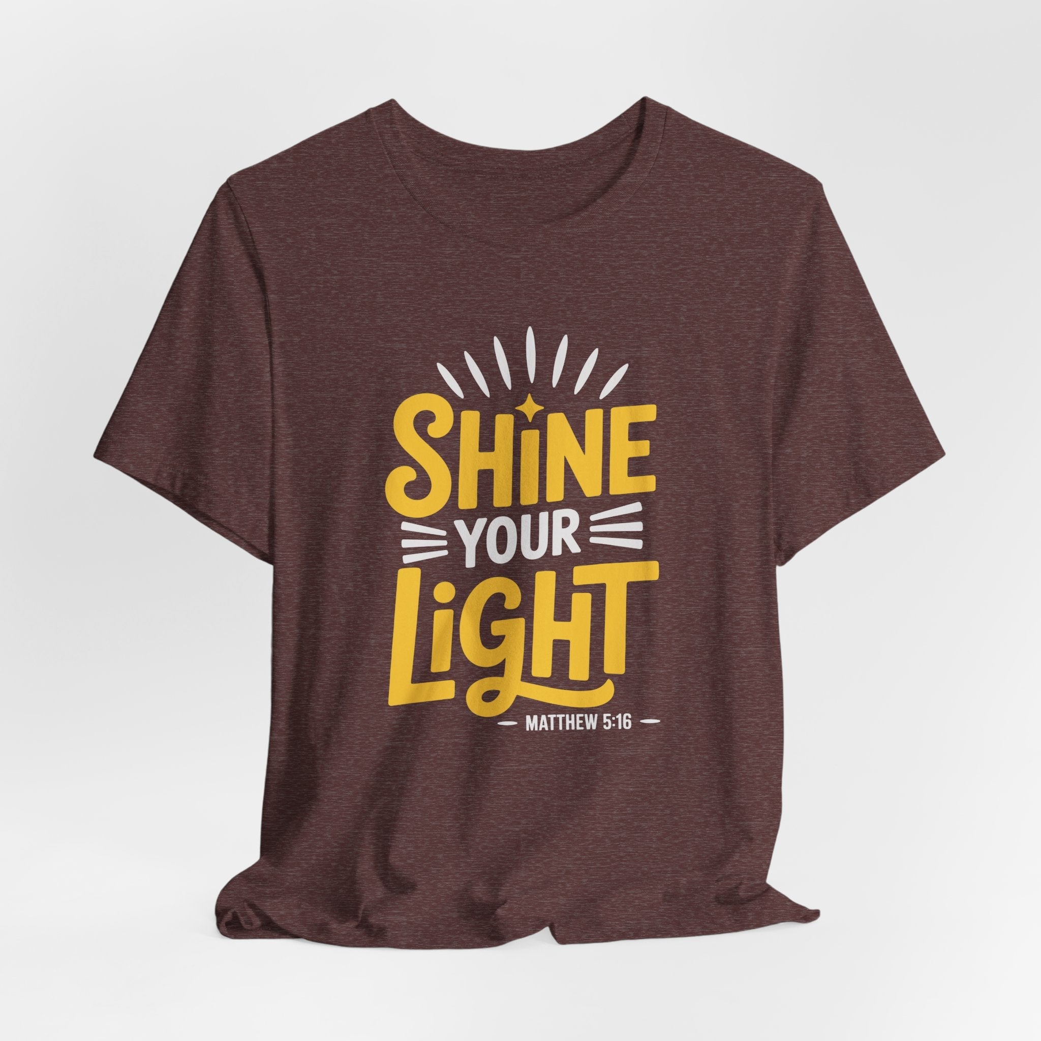 Shine Your Light tee • a bright, uplifting Christian T-shirt inspired by Matthew 5:16 — a joyful reminder to let your faith shine and reflect God’s love wherever you go.
