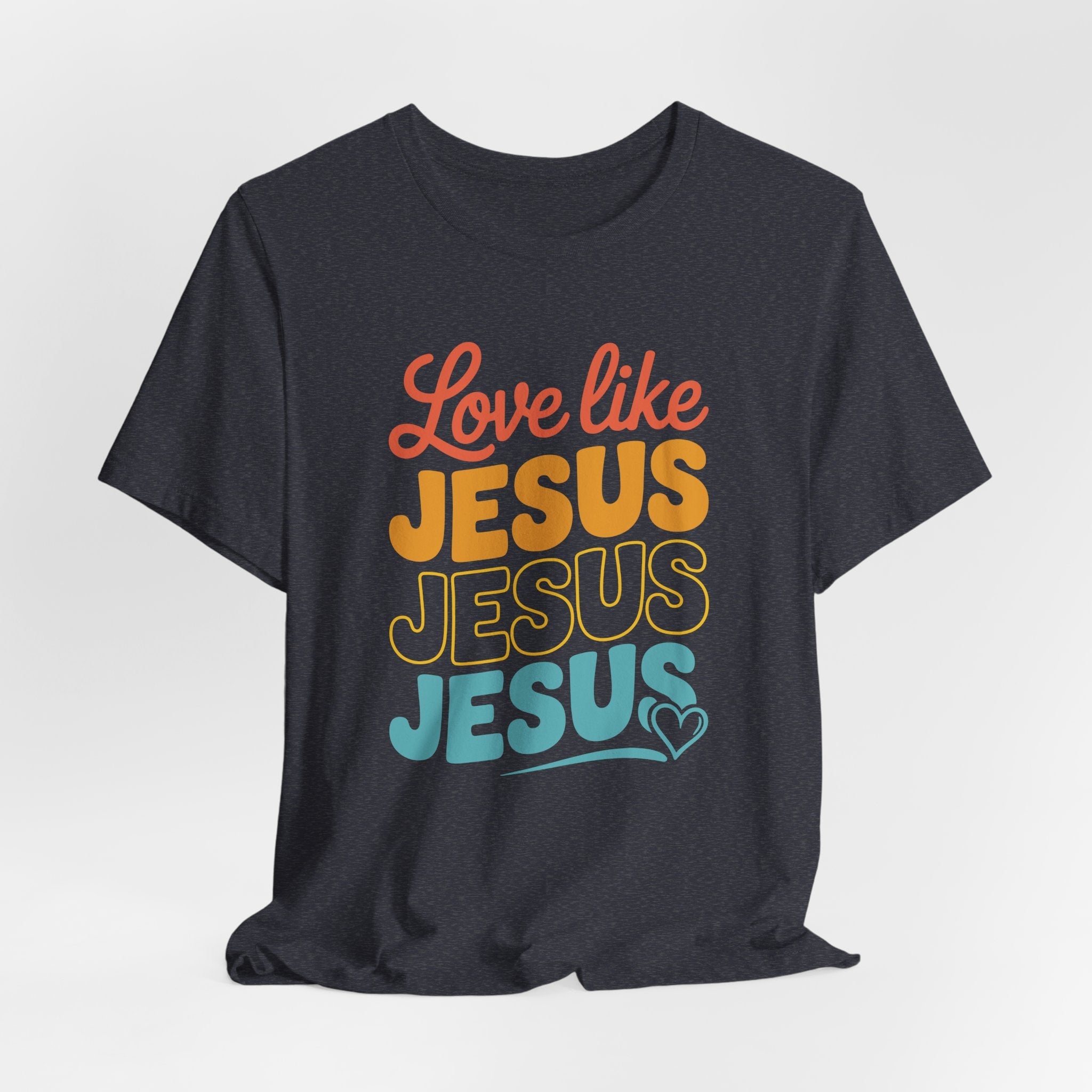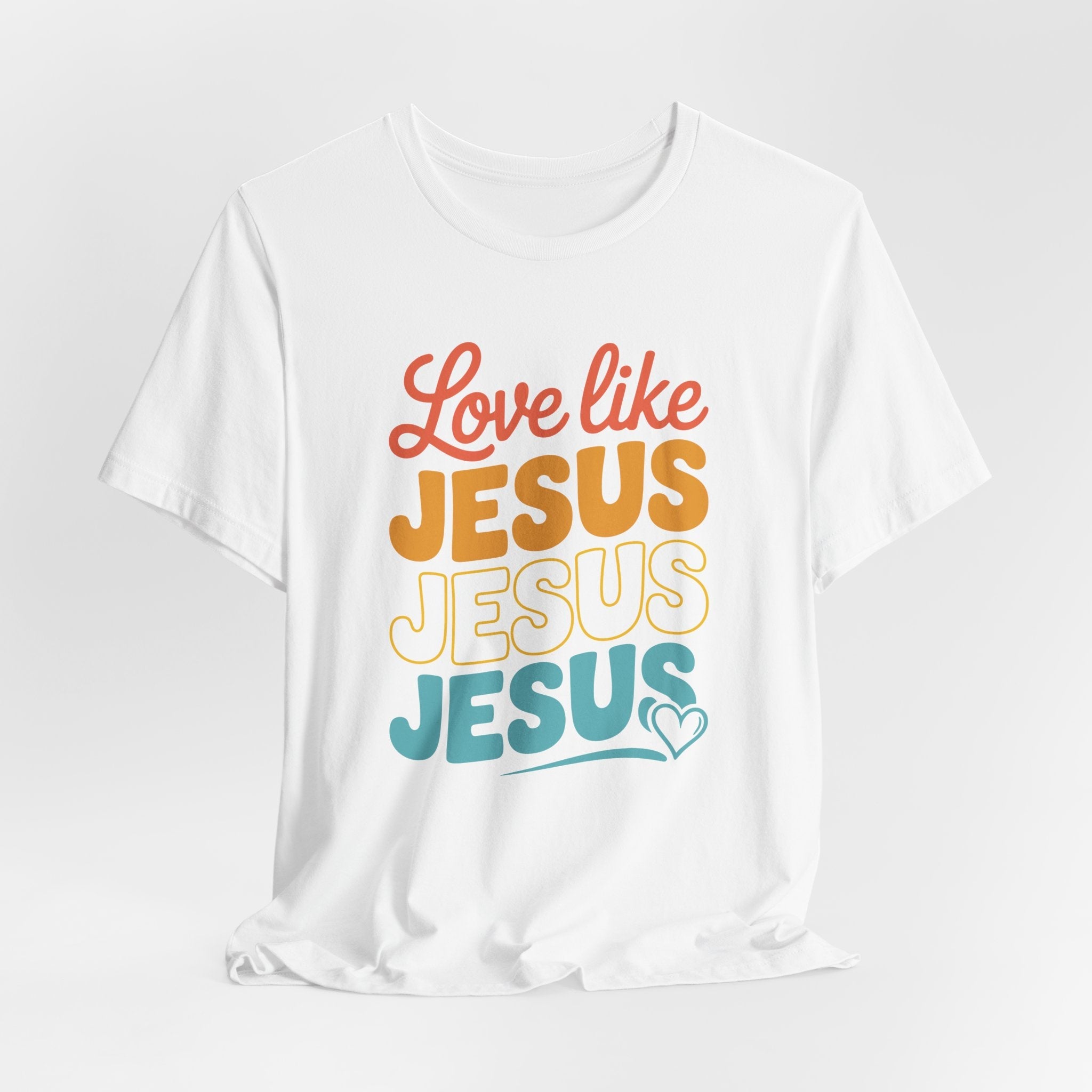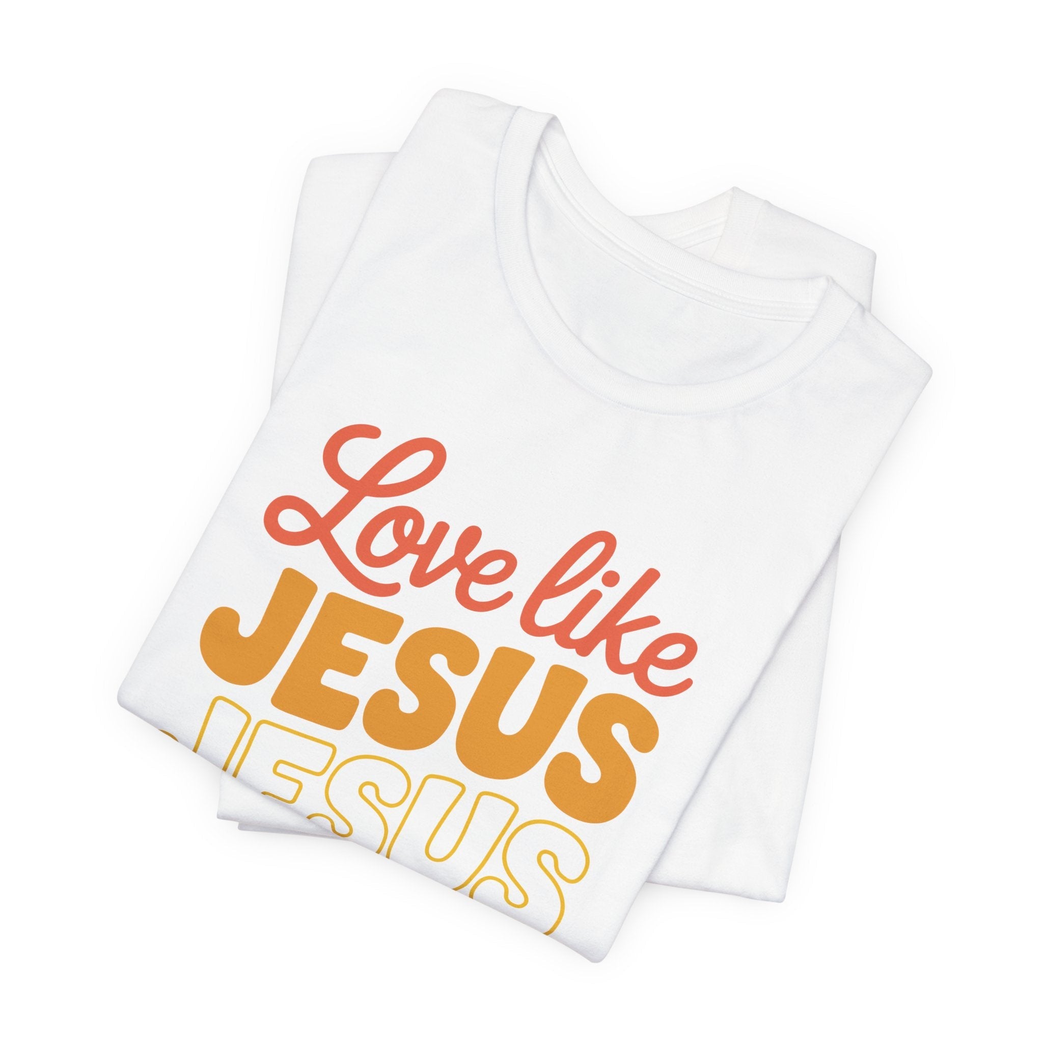 Love Like Jesus tee — a joyful, heartwarming Christian T-shirt encouraging kindness and grace through Christ’s example of perfect love.