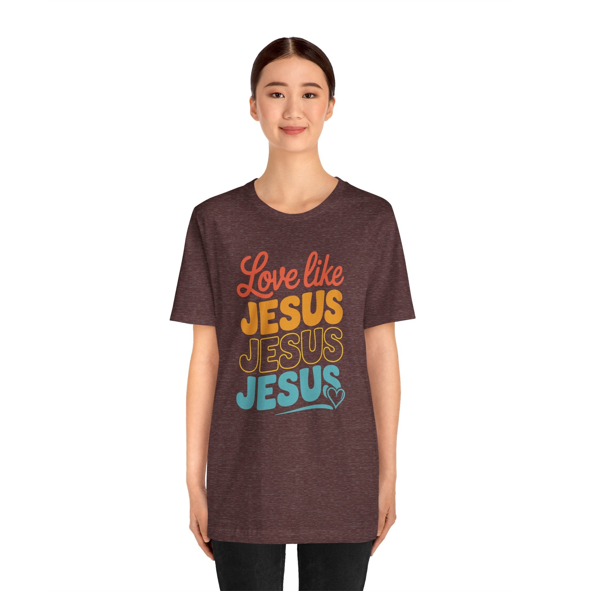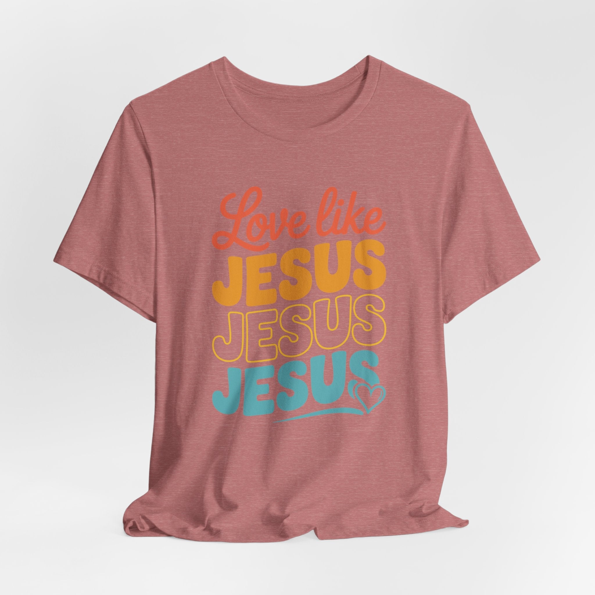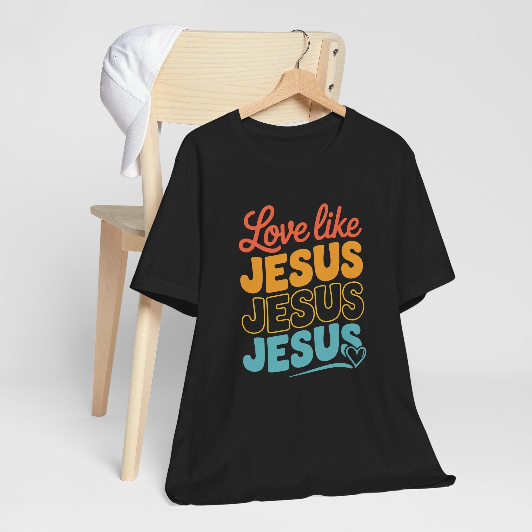 Love Like Jesus tee — a joyful, heartwarming Christian T-shirt encouraging kindness and grace through Christ’s example of perfect love.