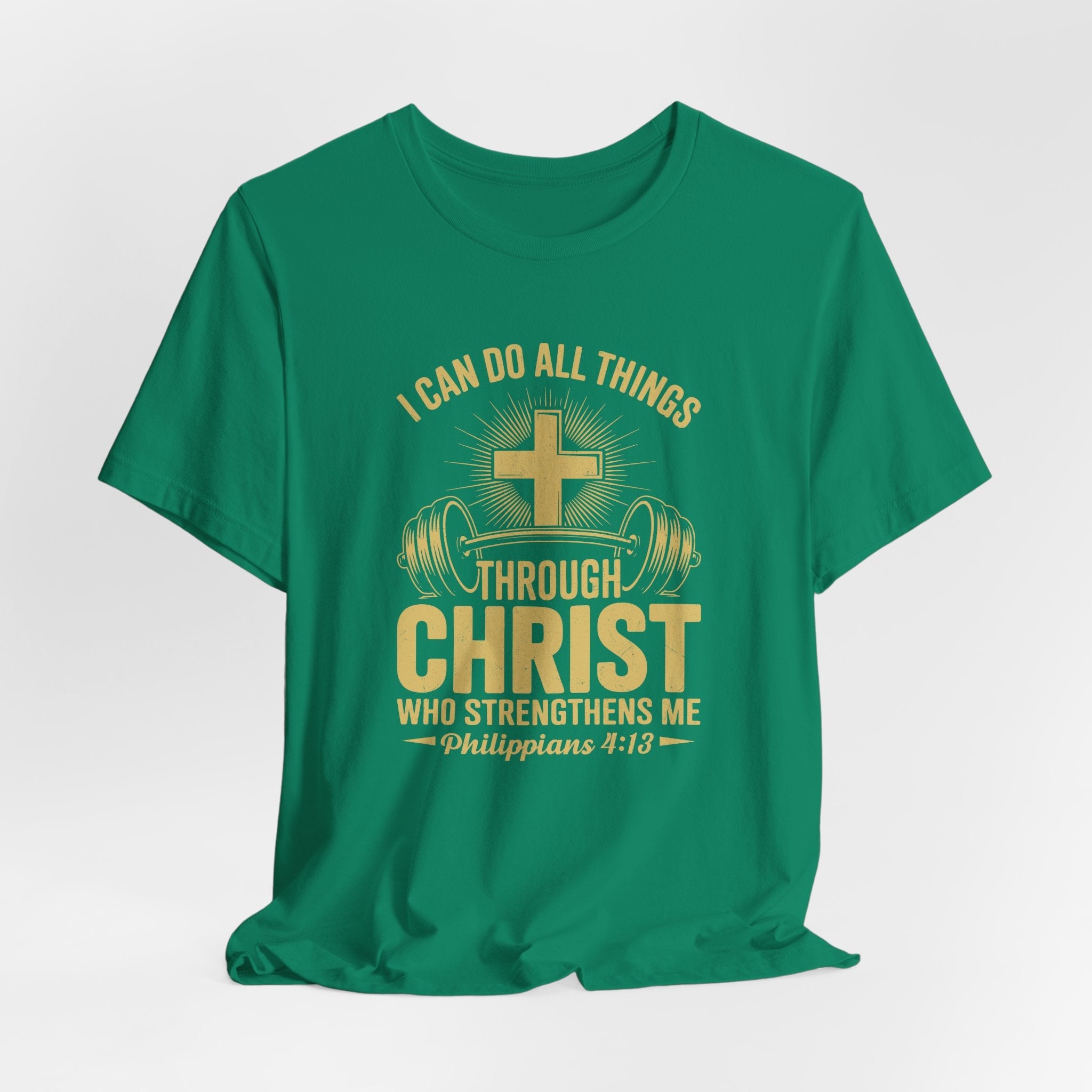 Empowered by Faith — this “I Can Do All Things Through Christ” tee features Philippians 4:13, reminding believers that true strength comes from Jesus.