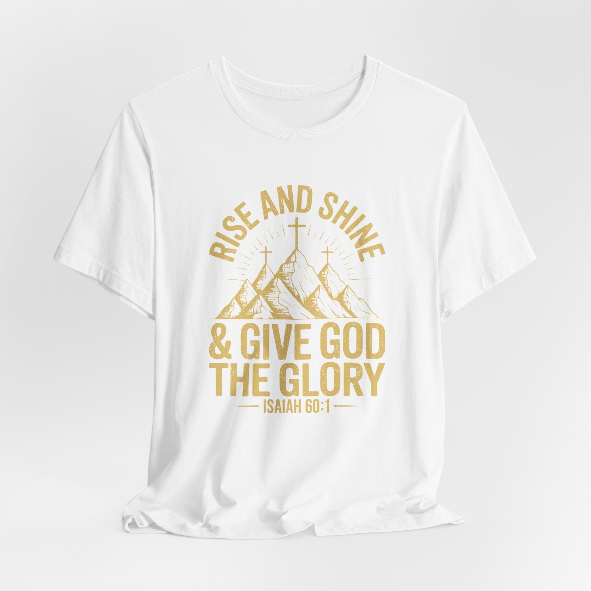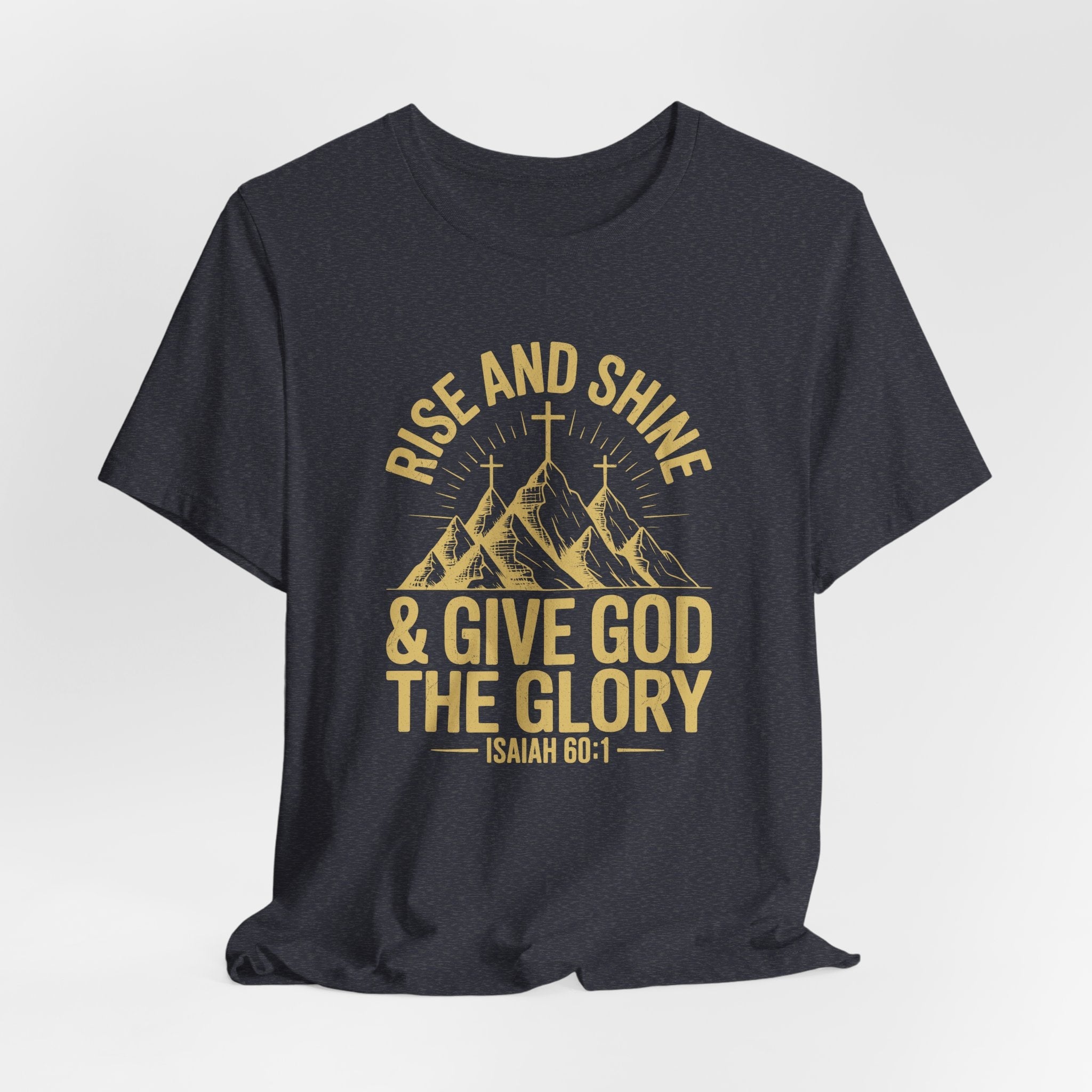 Rise and Shine tee • a bright, faith-inspired Christian T-shirt celebrating Isaiah 60:1 — a daily reminder to give God the glory and shine His light everywhere you go.