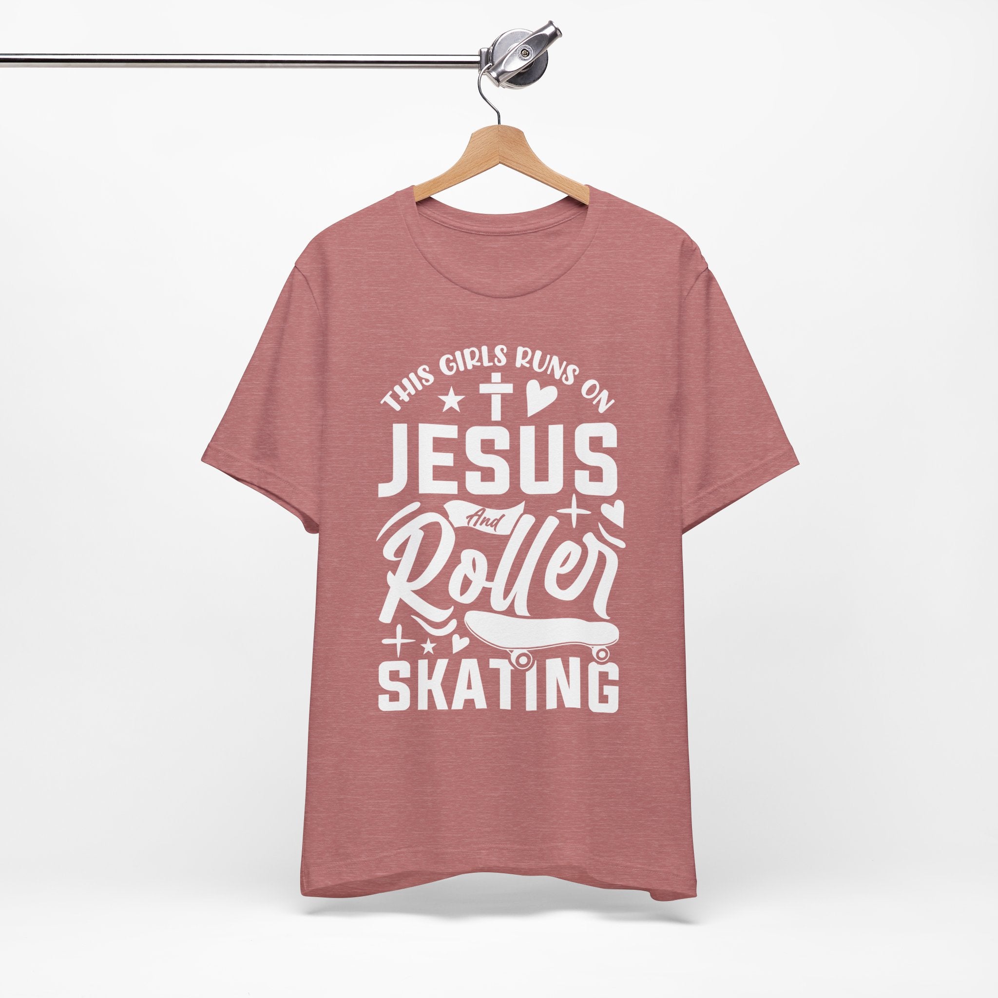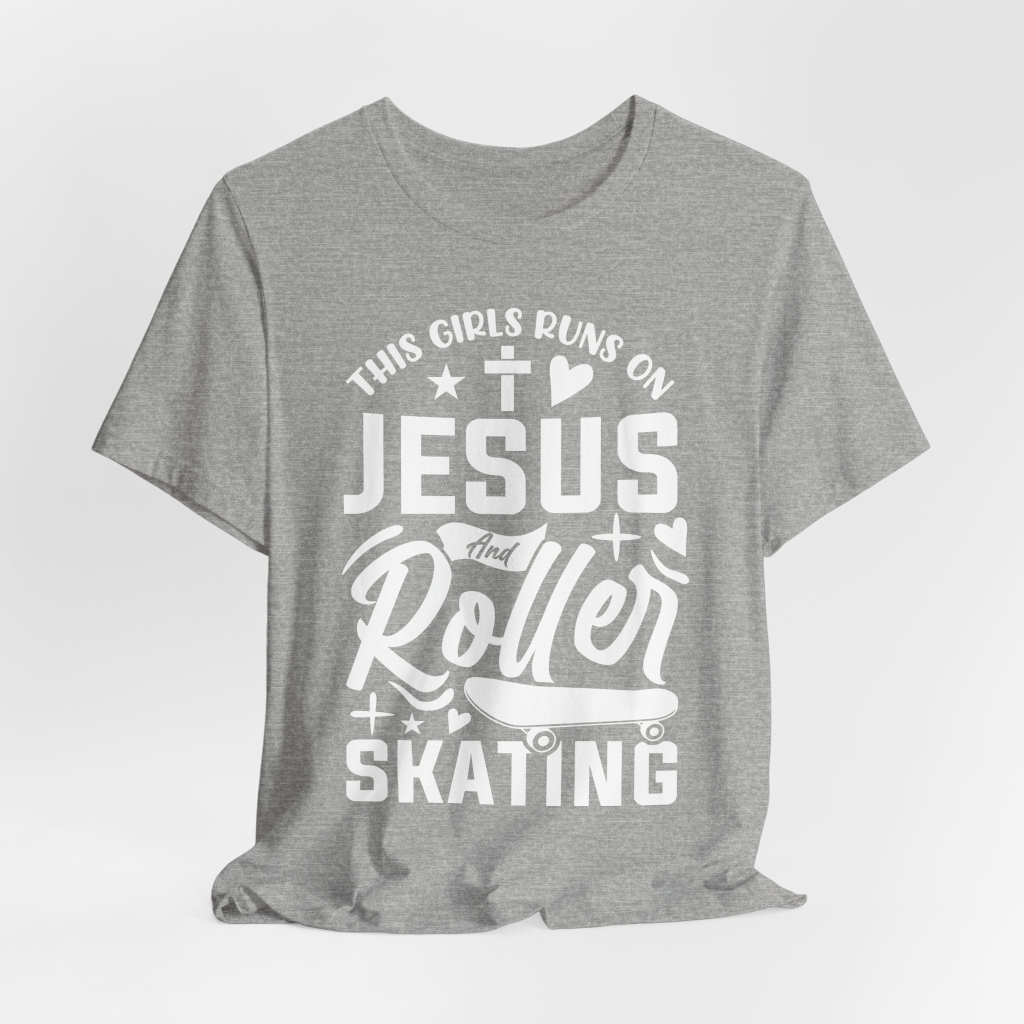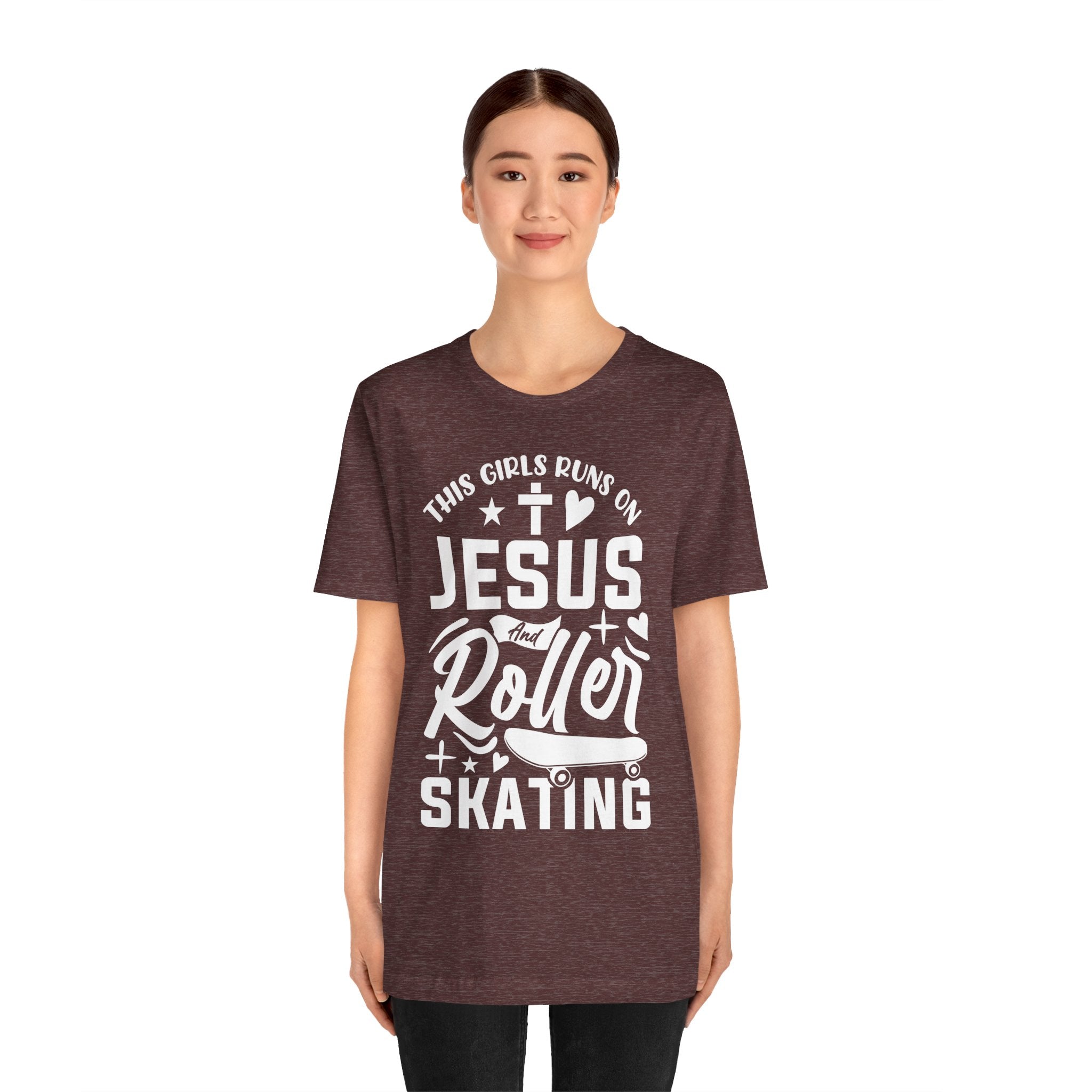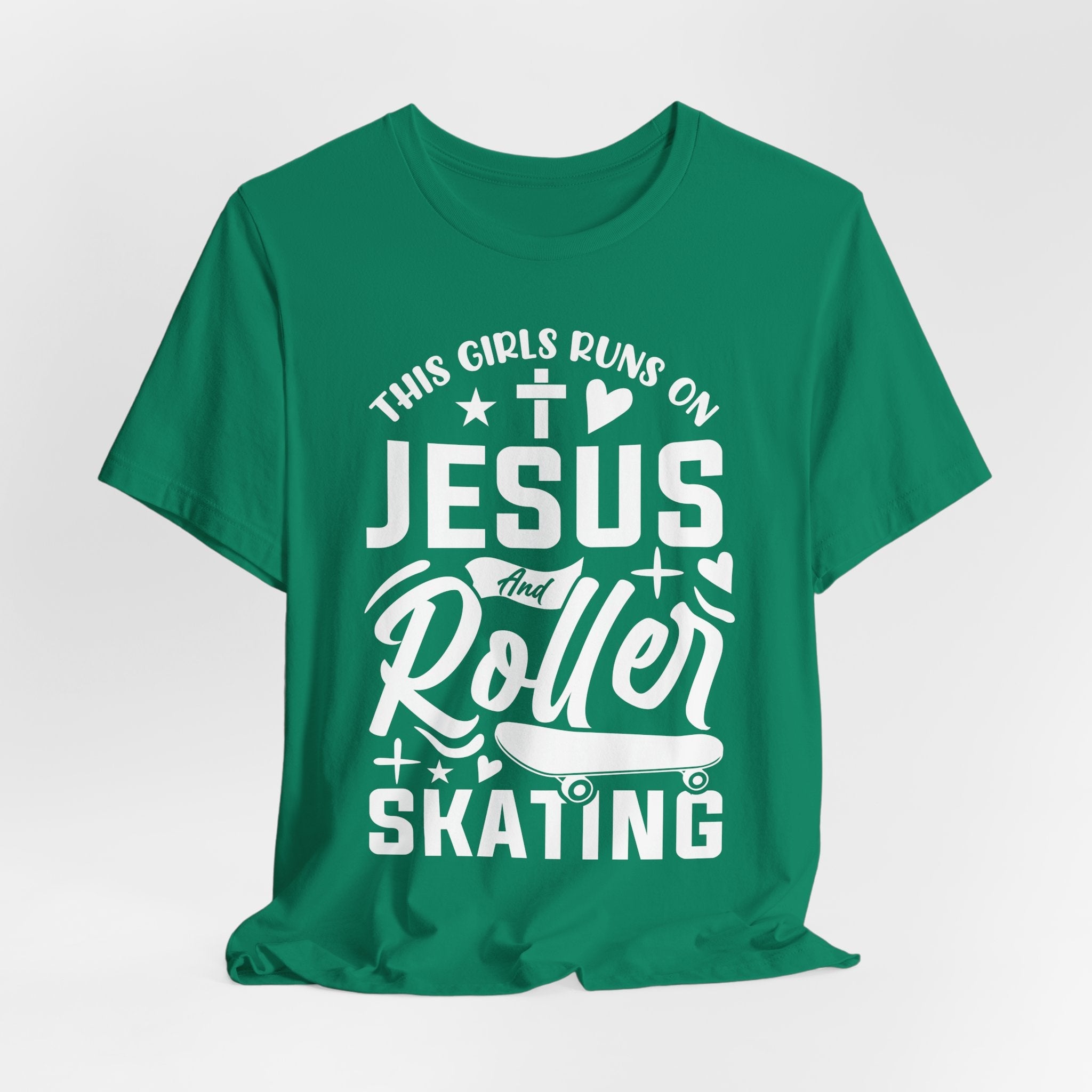 This Girl Runs on Jesus and Roller Skating tee • a fun, faith-filled Christian T-shirt combining love for Jesus with a passion for skating — energetic, joyful, and uplifting.