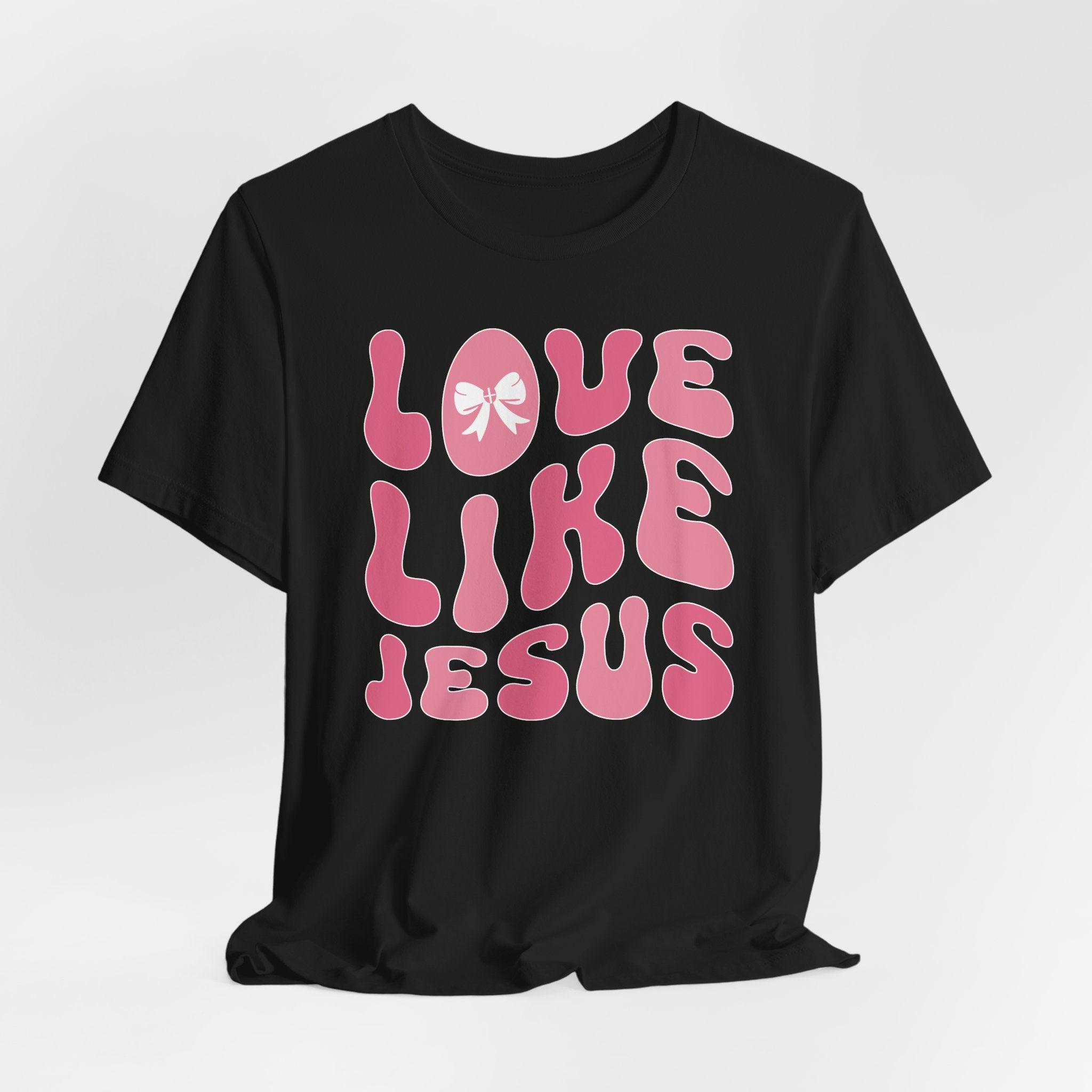 Love Like Jesus tee • a soft, retro-style Christian T-shirt with a sweet pink design and a message of kindness and compassion inspired by Christ’s love.