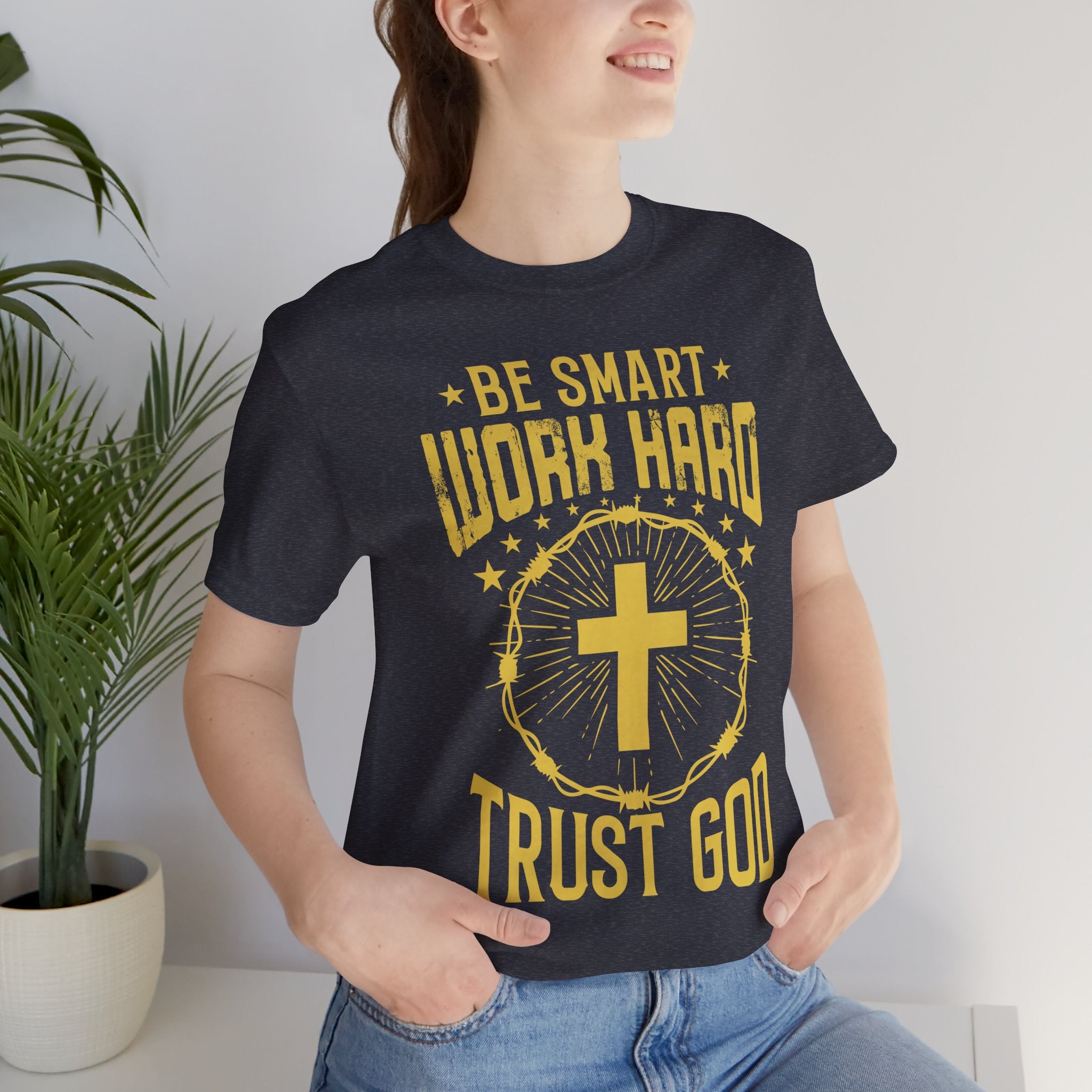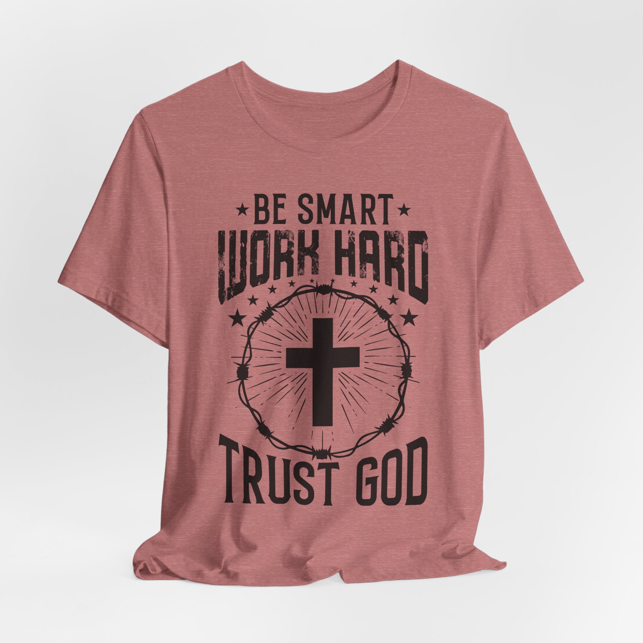 Faith-Driven Motivation — this “Be Smart, Work Hard, Trust God” tee reminds believers that success comes through effort guided by faith and divine trust.