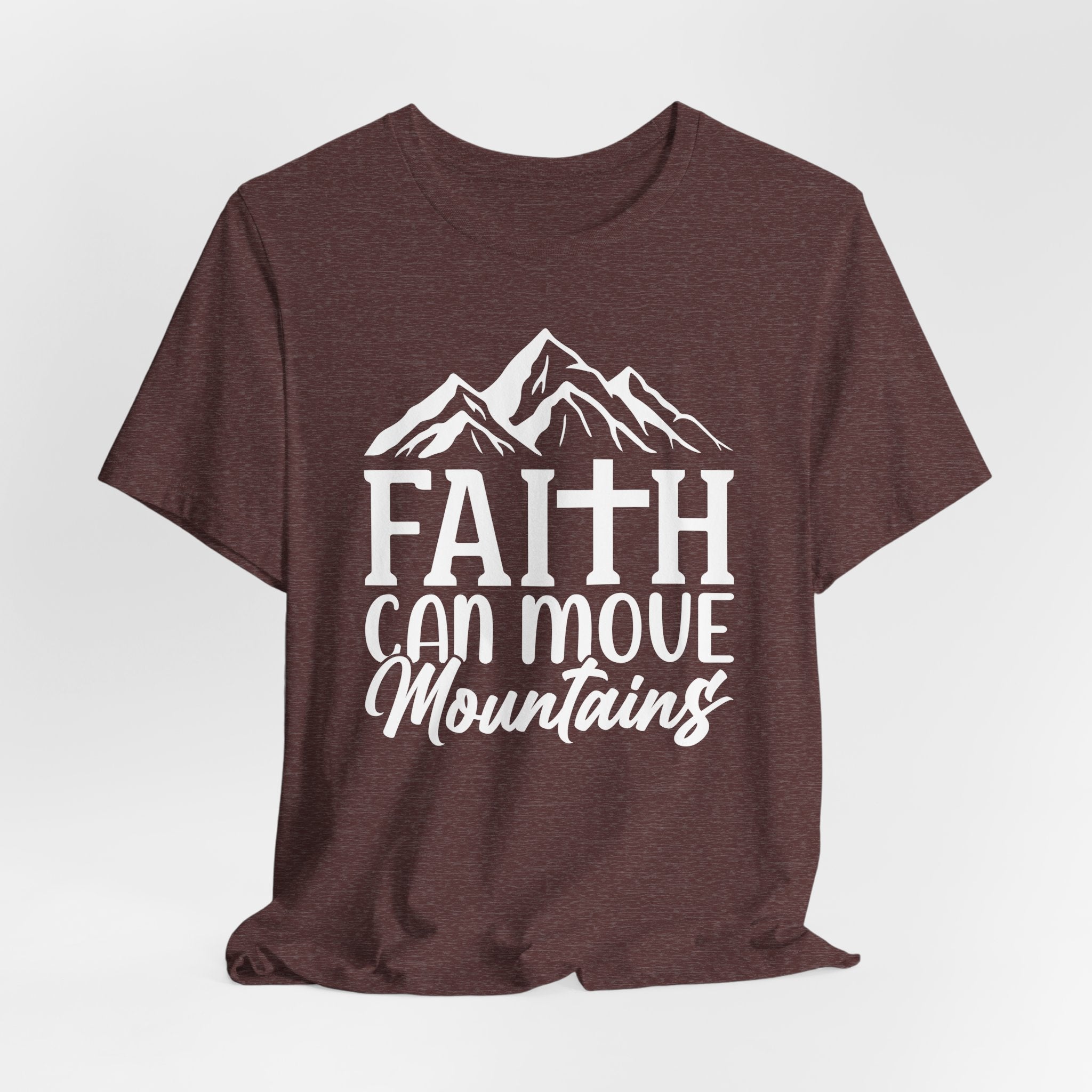 Faith Can Move Mountains tee • an inspiring Christian T-shirt reminding believers that through faith in God, no challenge or obstacle is too great to overcome.