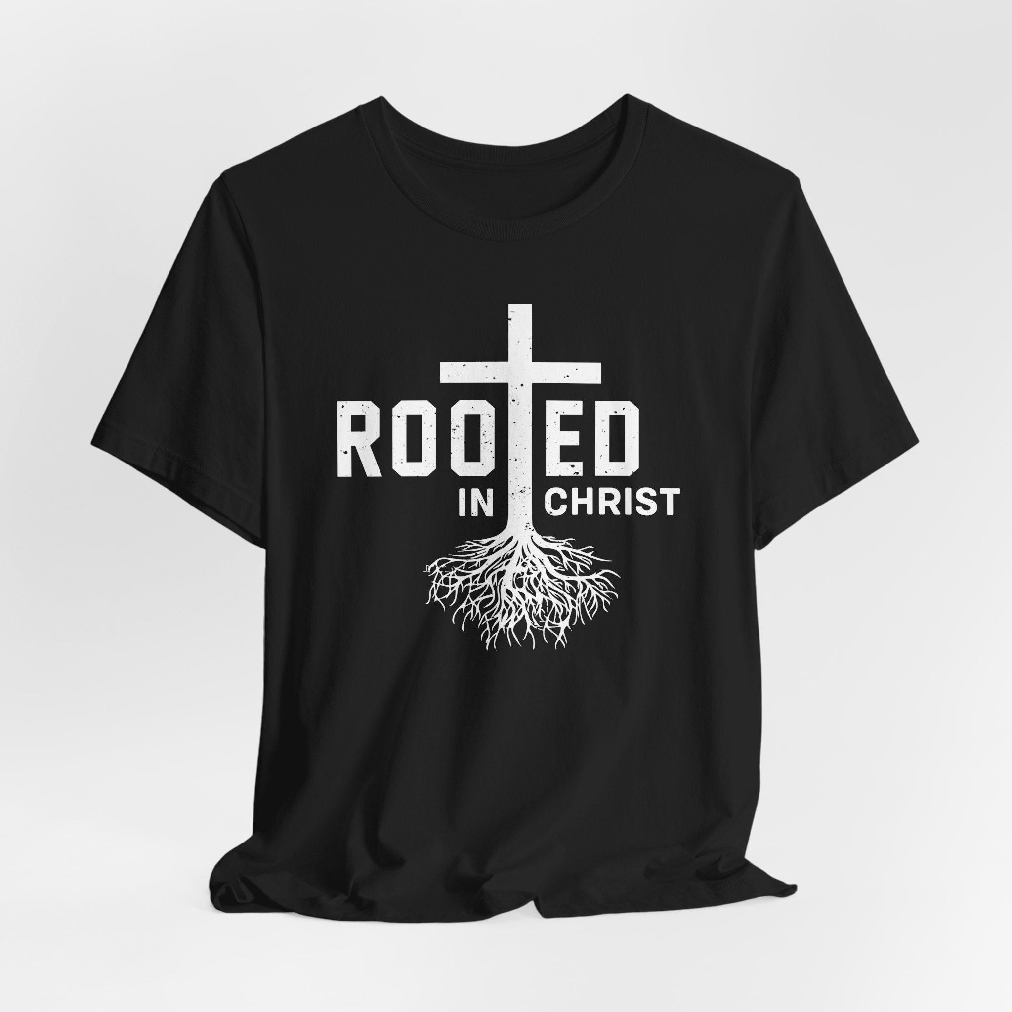 Rooted in Christ tee • a strong, faith-filled Christian T-shirt symbolizing deep spiritual roots in Jesus, built on strength, stability, and unwavering devotion.