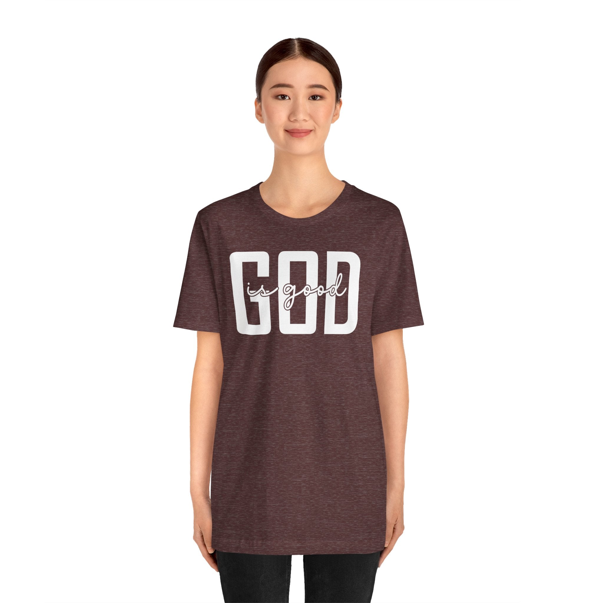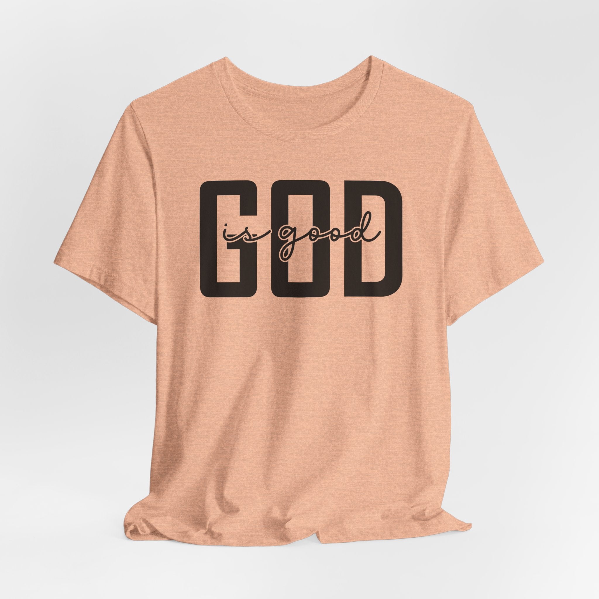 God is Good tee — a simple, modern Christian T-shirt celebrating His faithfulness and constant blessings.