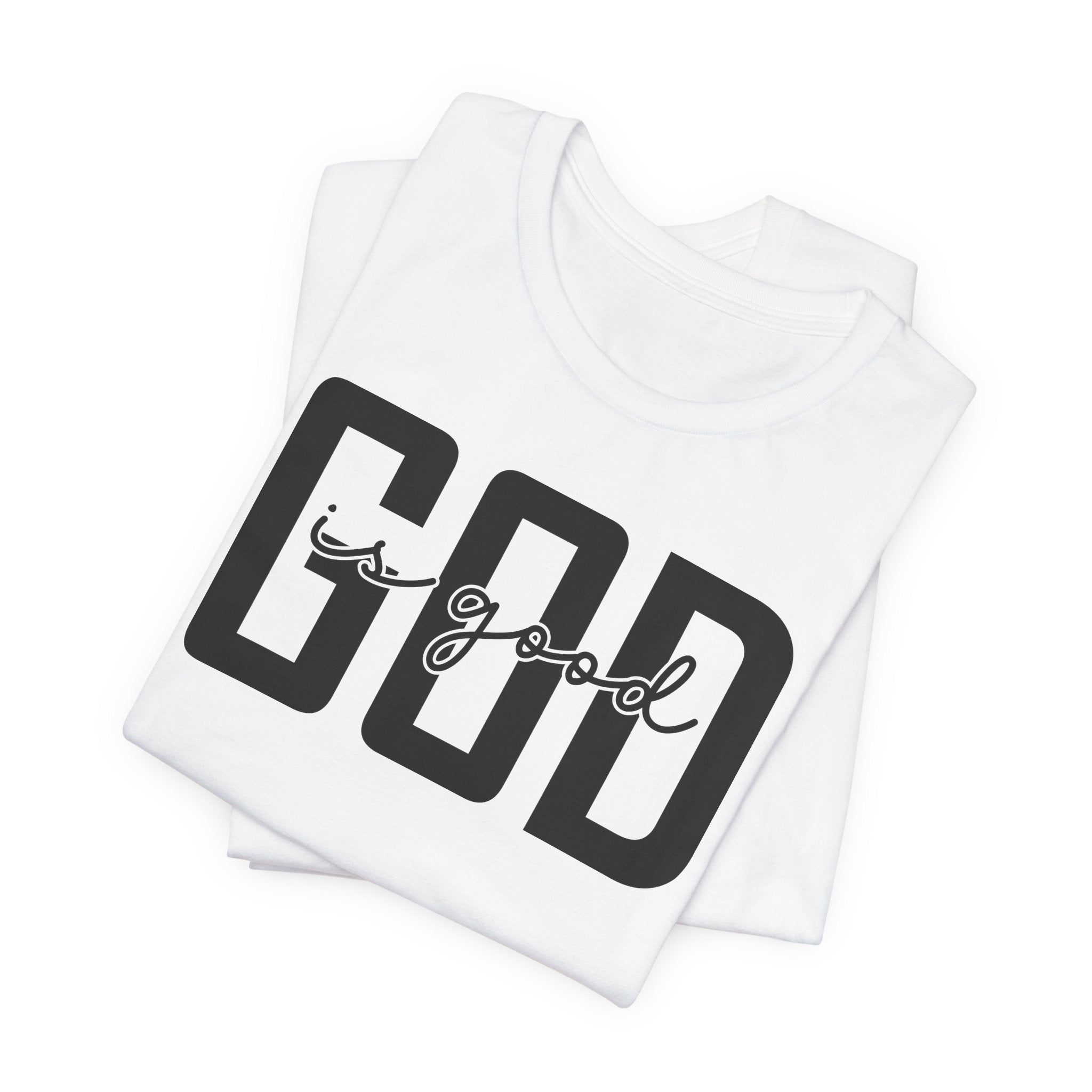 A Timeless Truth: This minimalist Christian T-shirt features the powerful, central declaration "God is Good" in a stylish, overlapping font.