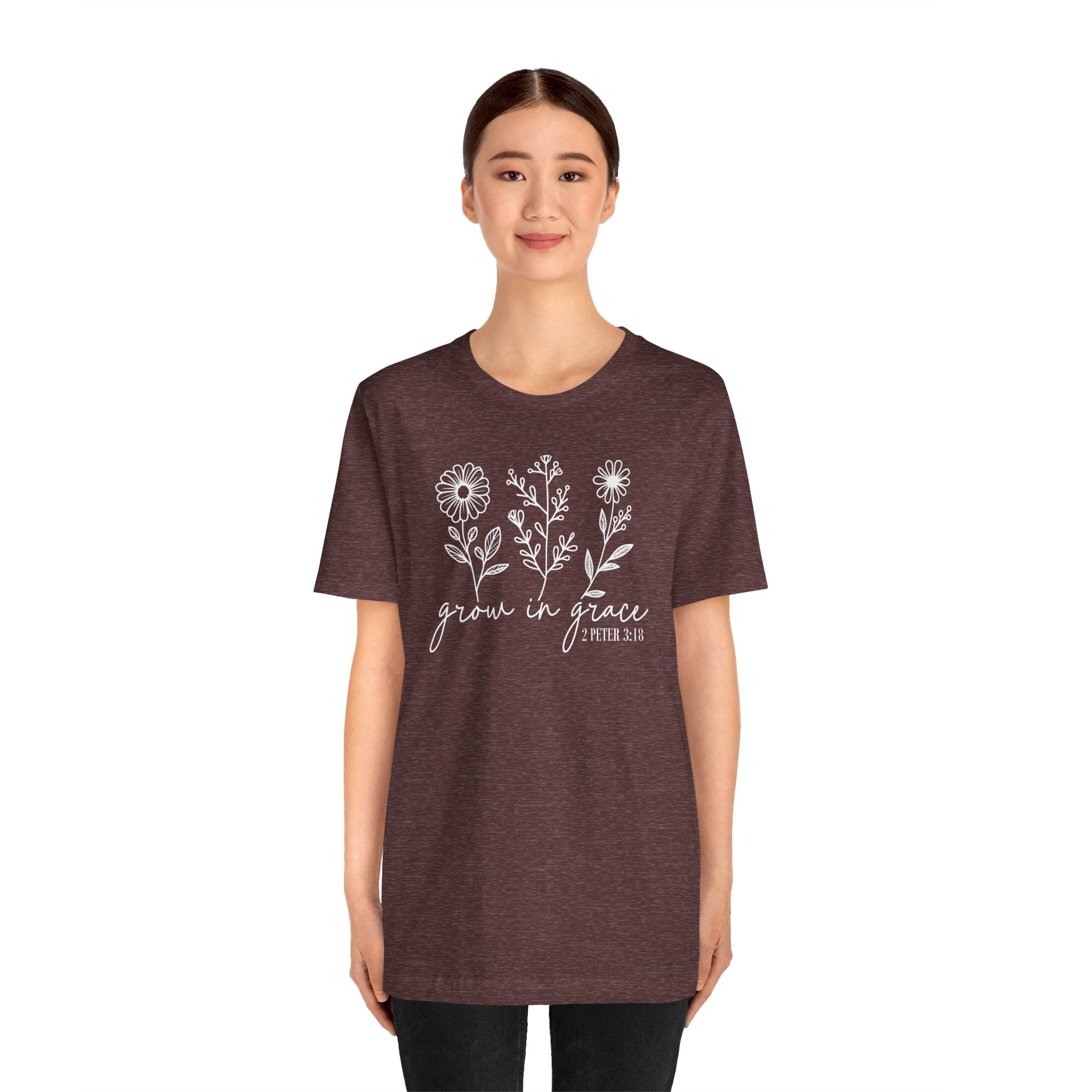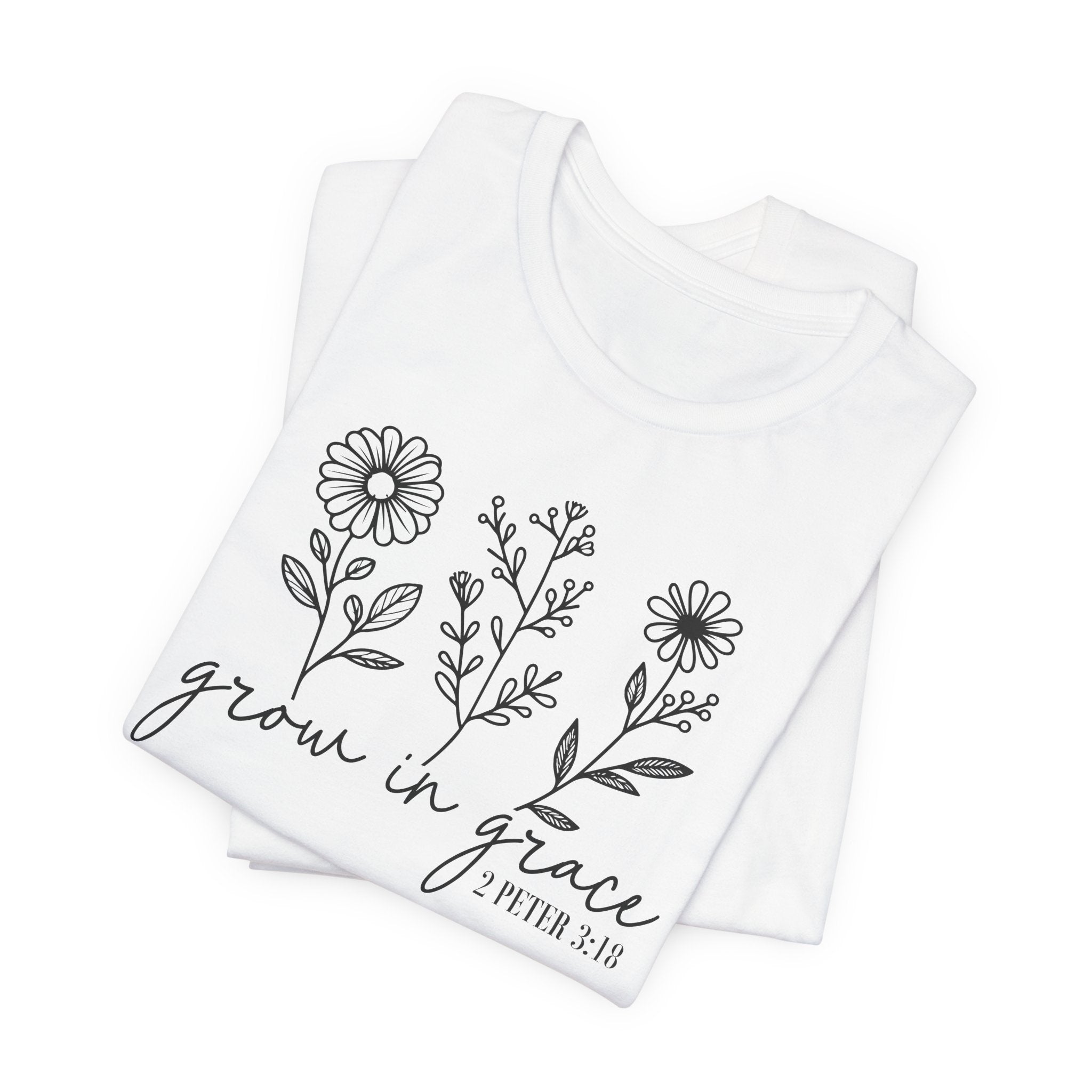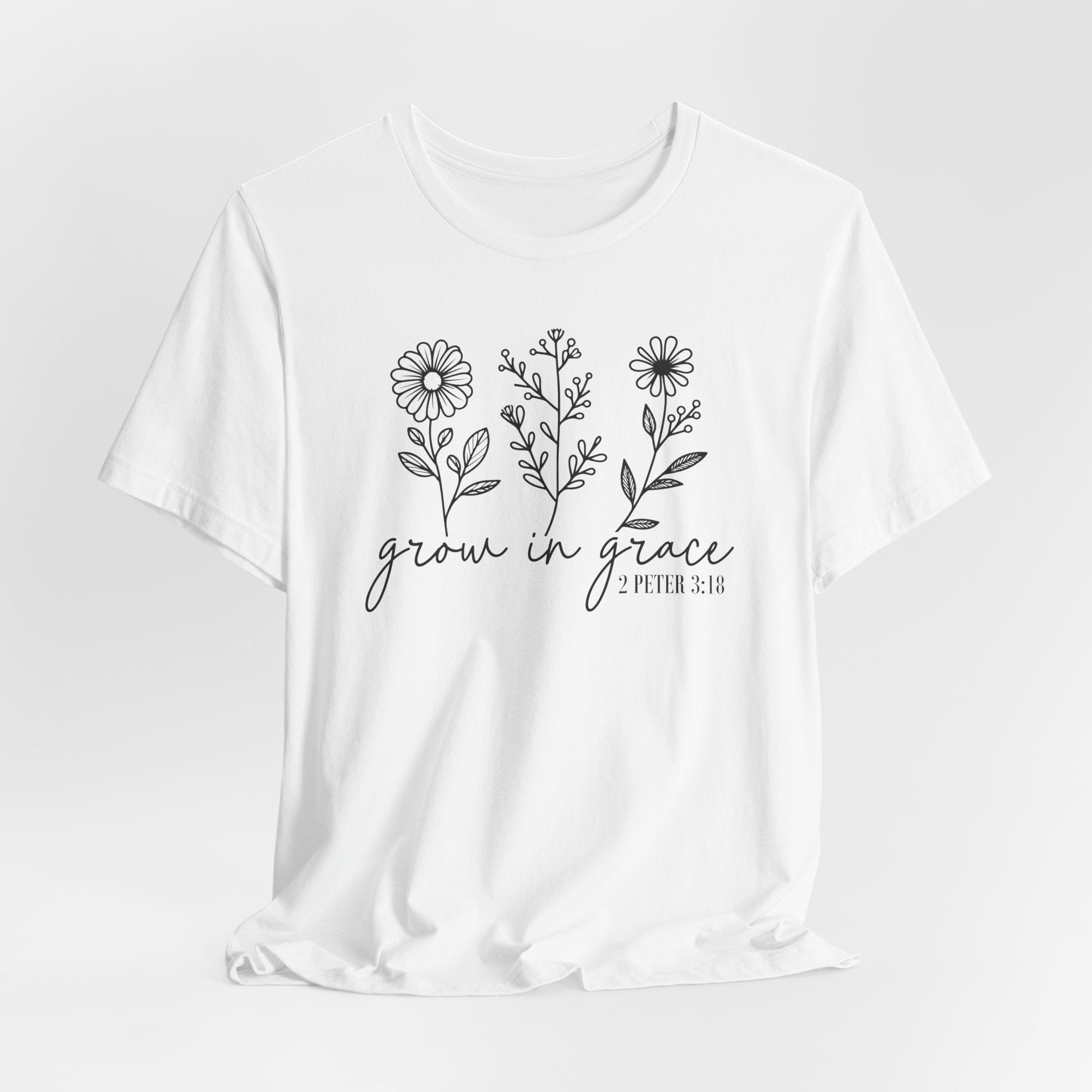 Grow in Grace tee • a peaceful Christian T-shirt with hand-drawn floral artwork, reminding believers to flourish daily through God’s love and grace.