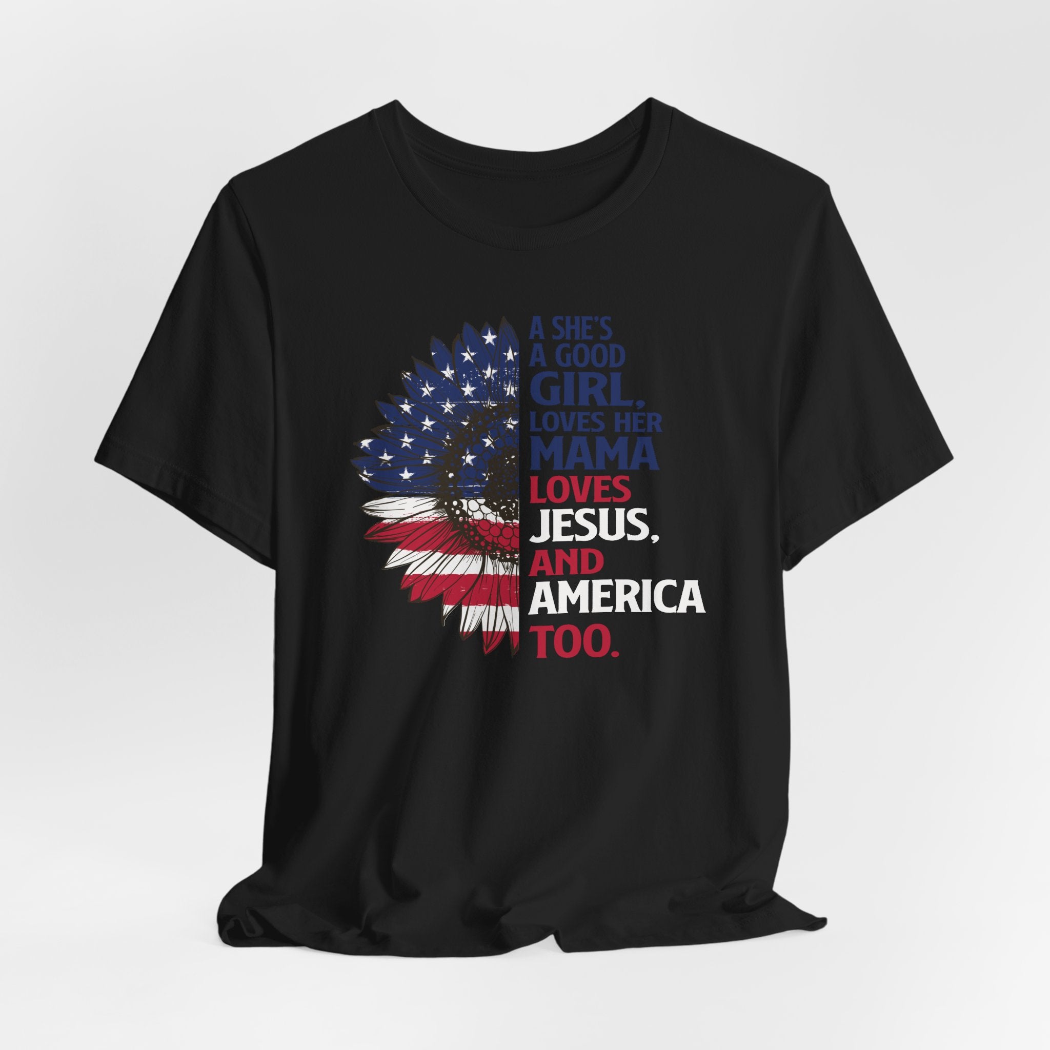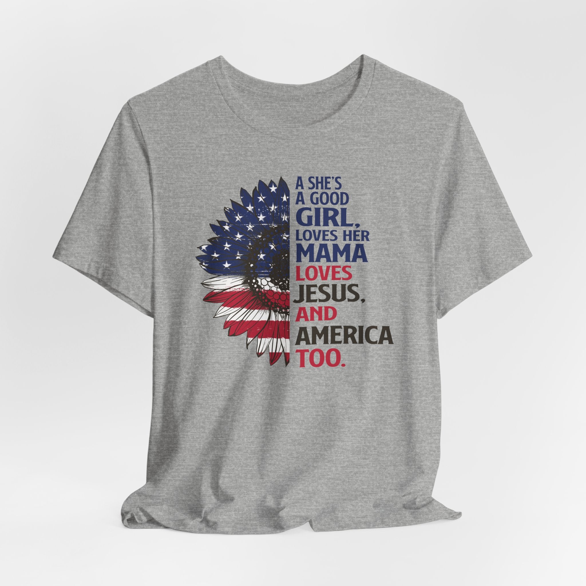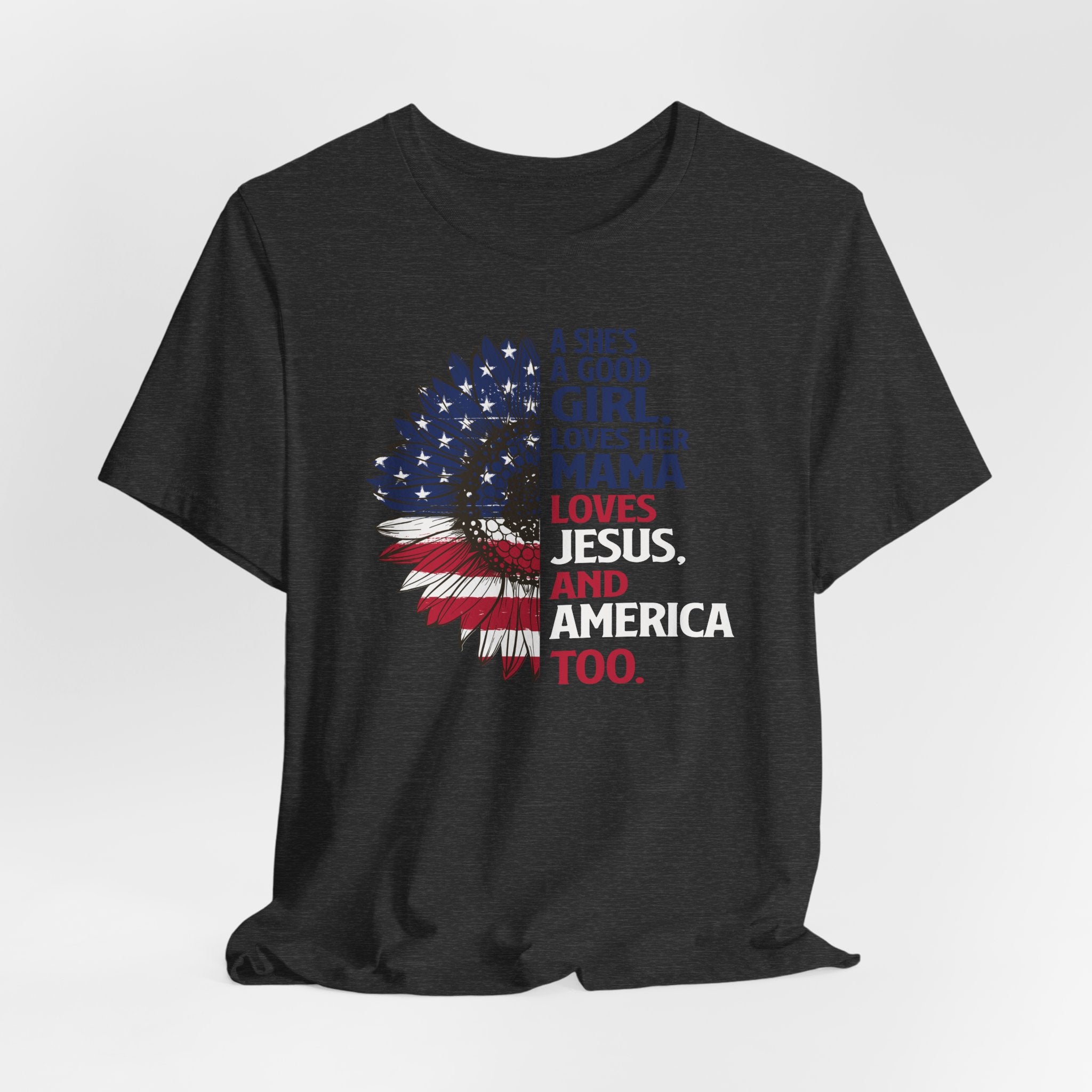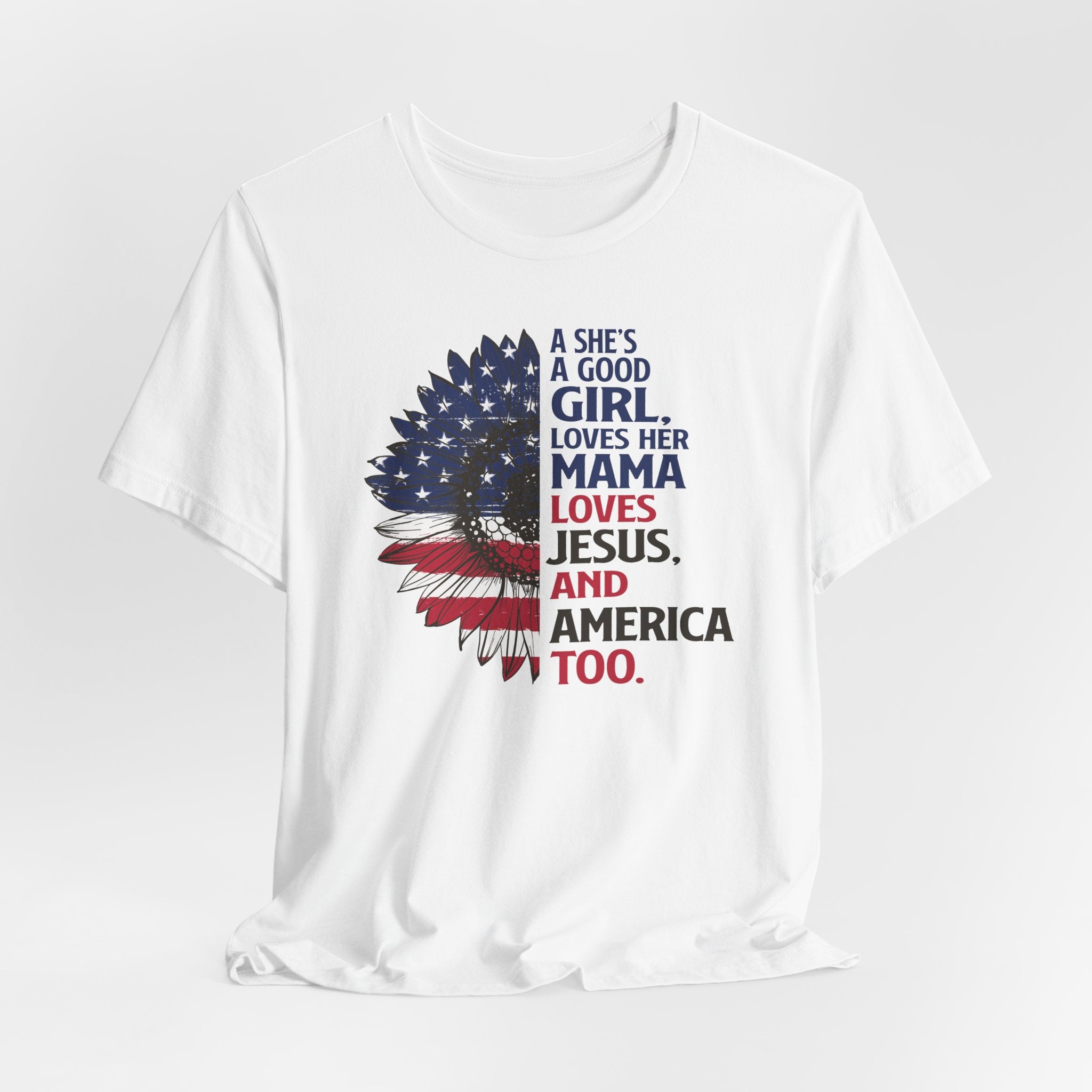 Good Girl Loves Jesus tee • a patriotic Christian T-shirt celebrating faith, family, and love for America — perfect for proud women of faith.