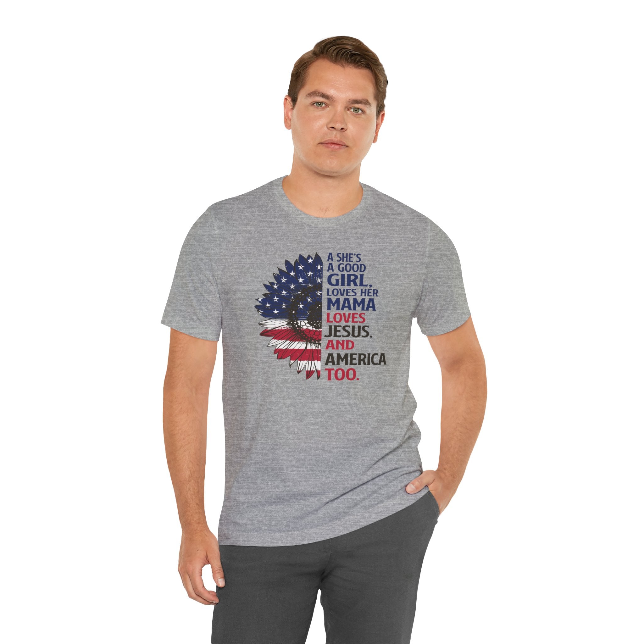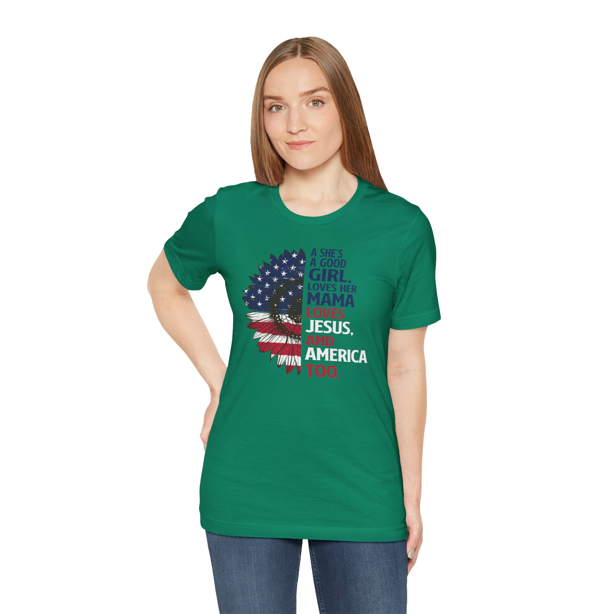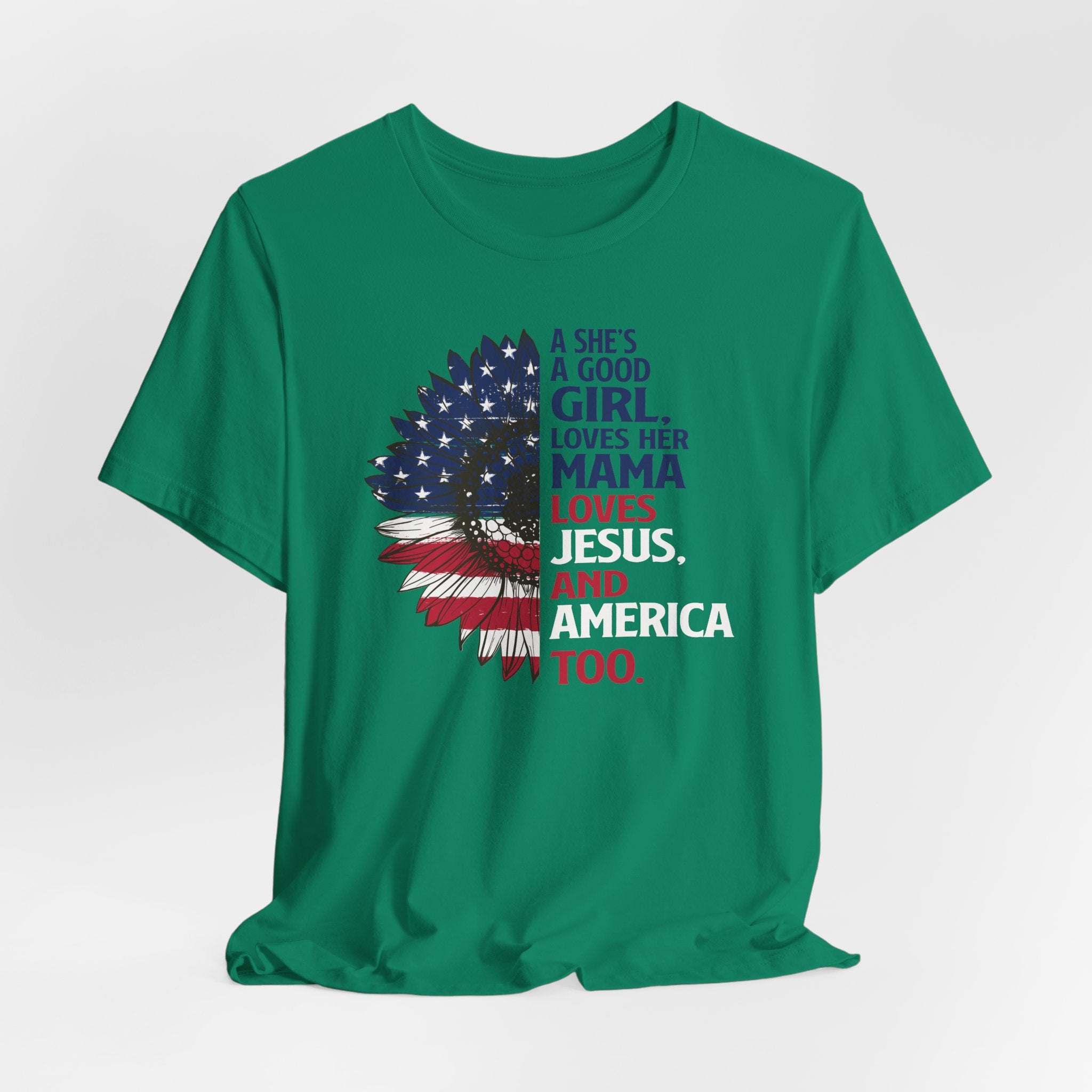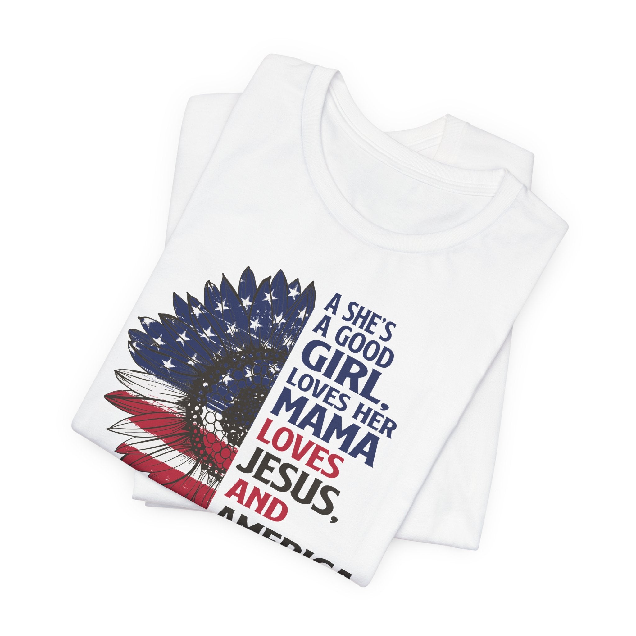 Good Girl Loves Jesus tee • a patriotic Christian T-shirt celebrating faith, family, and love for America — perfect for proud women of faith.