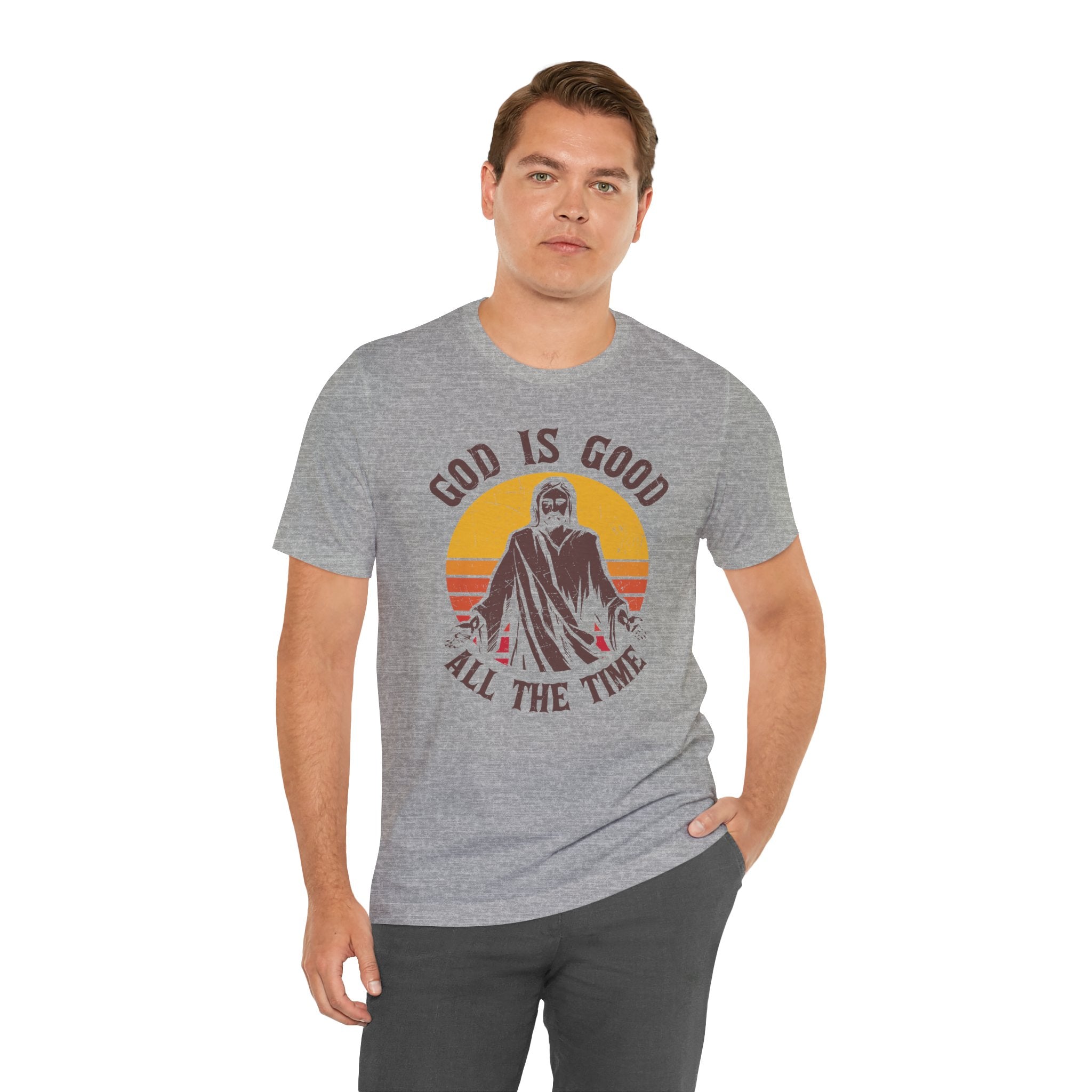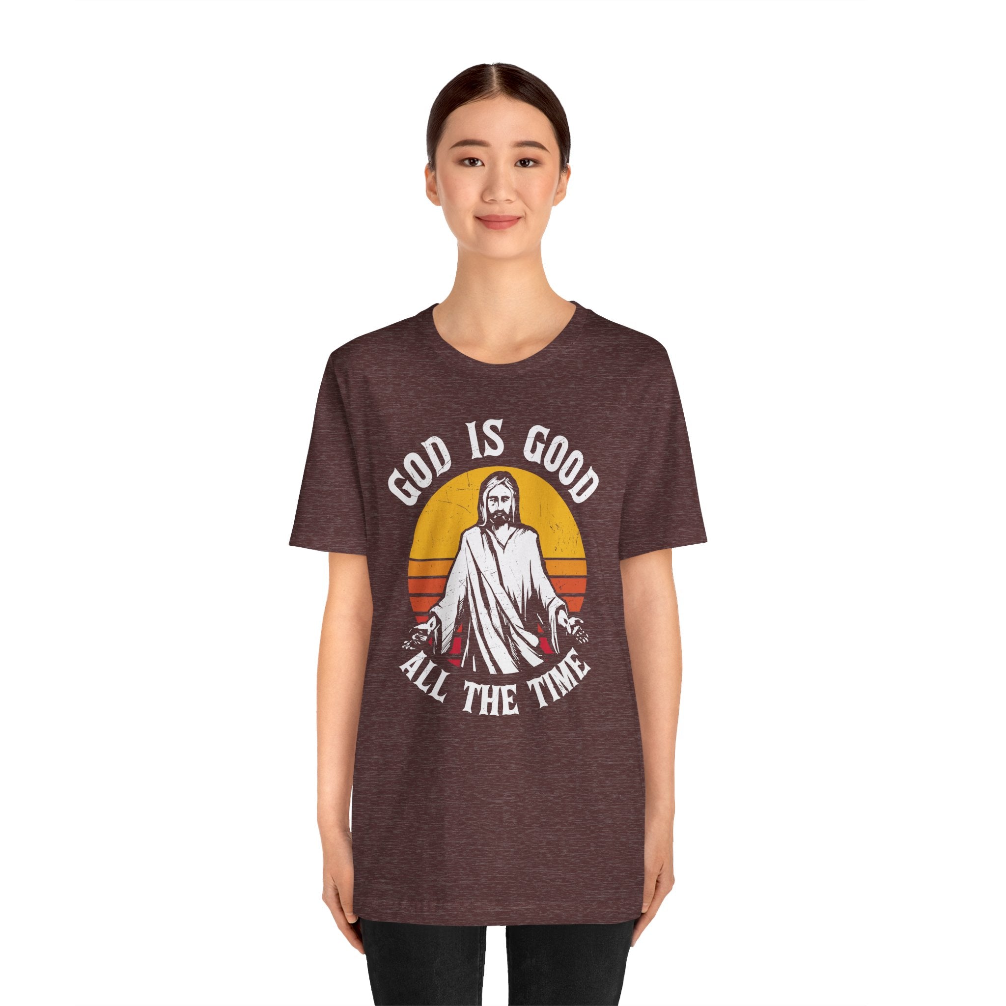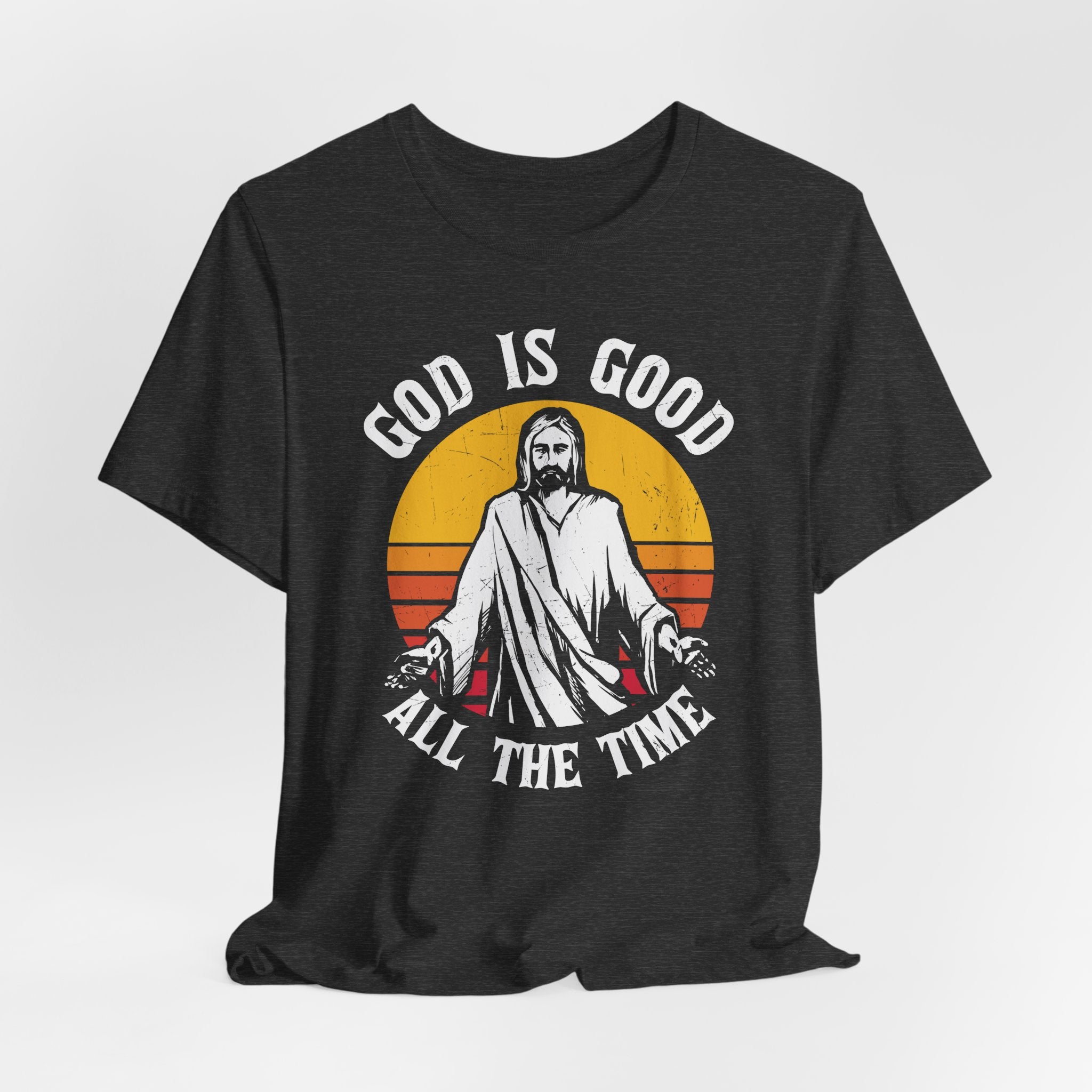 God Is Good tee • a vintage-style Christian T-shirt celebrating faith and gratitude with the timeless message “God Is Good All the Time.”