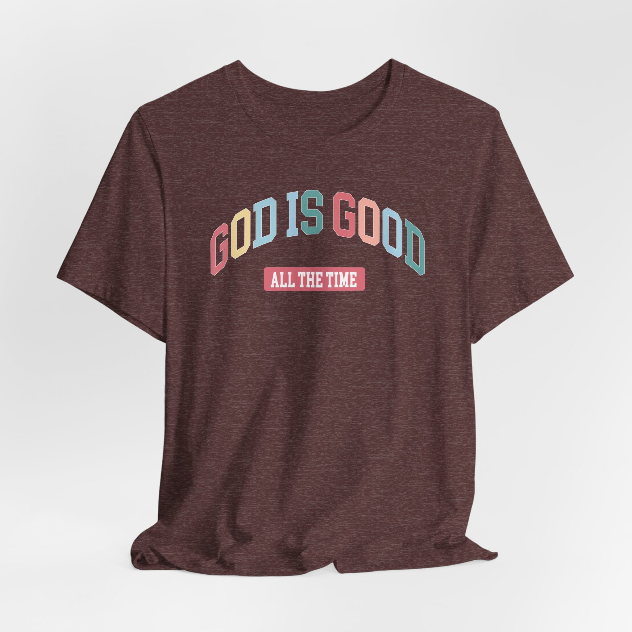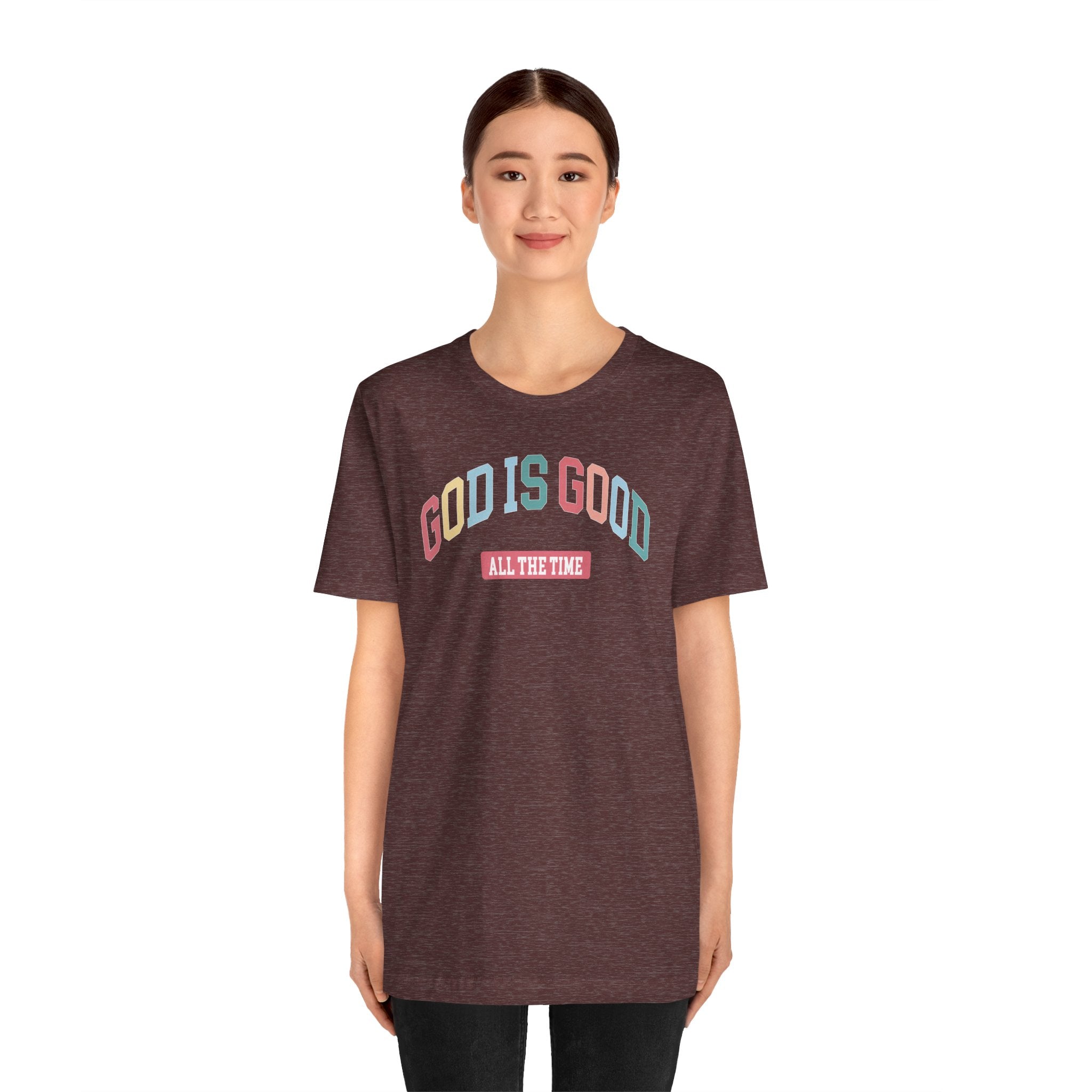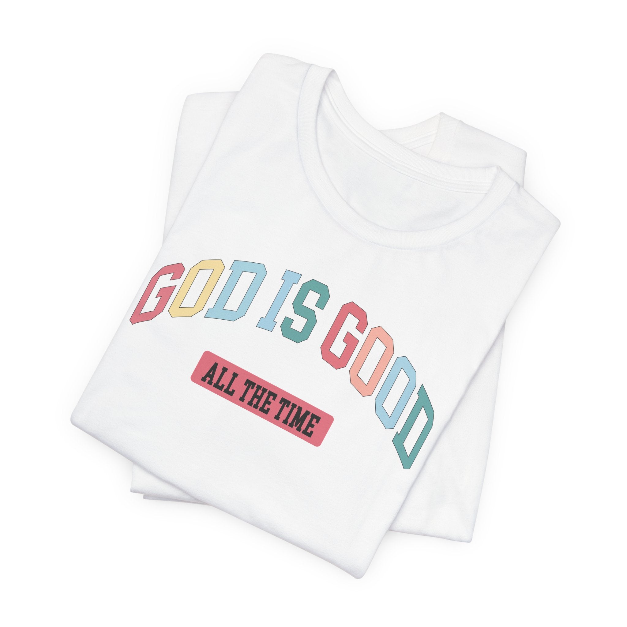 God Is Good tee • a colorful and joyful Christian T-shirt reminding believers of God’s constant goodness and faithfulness.