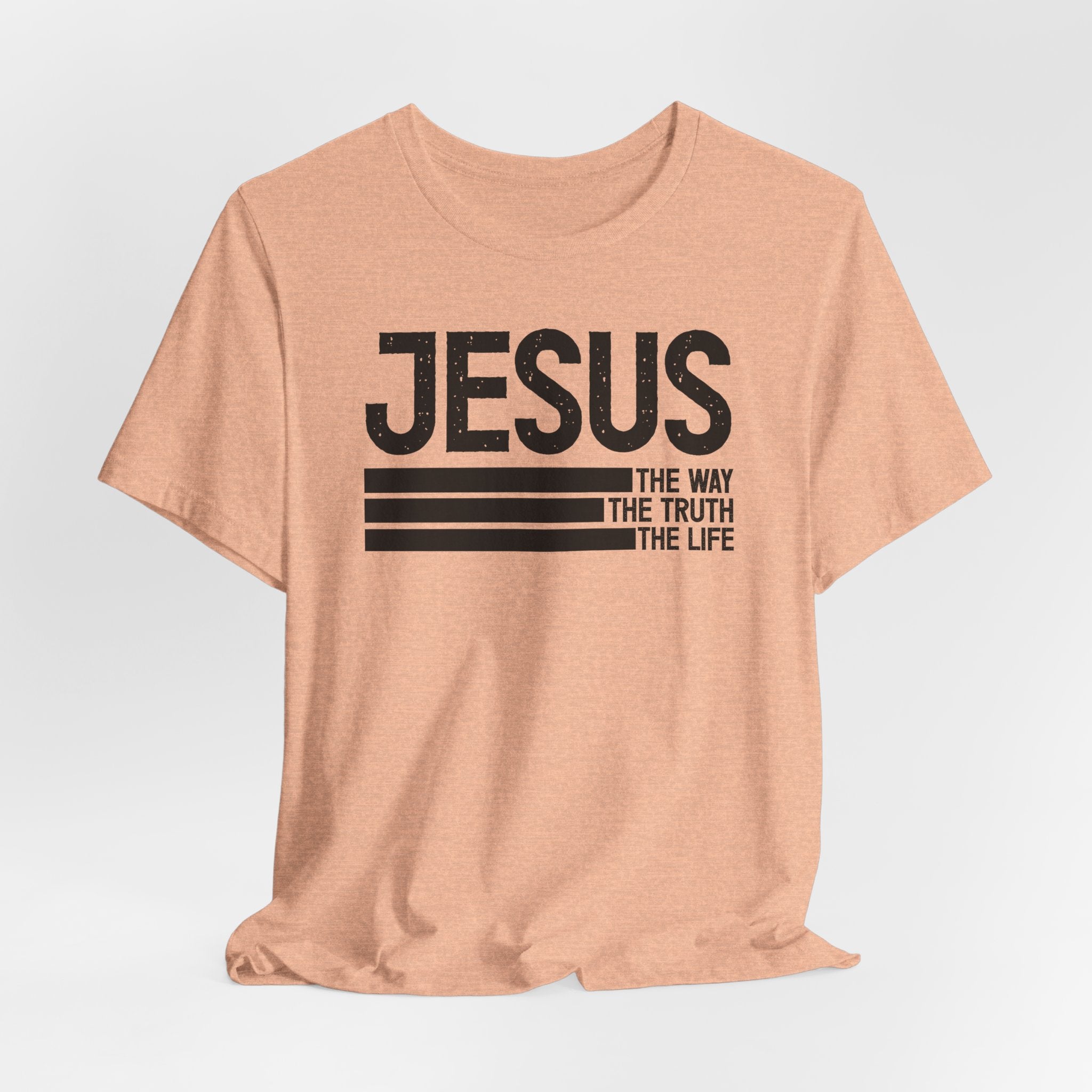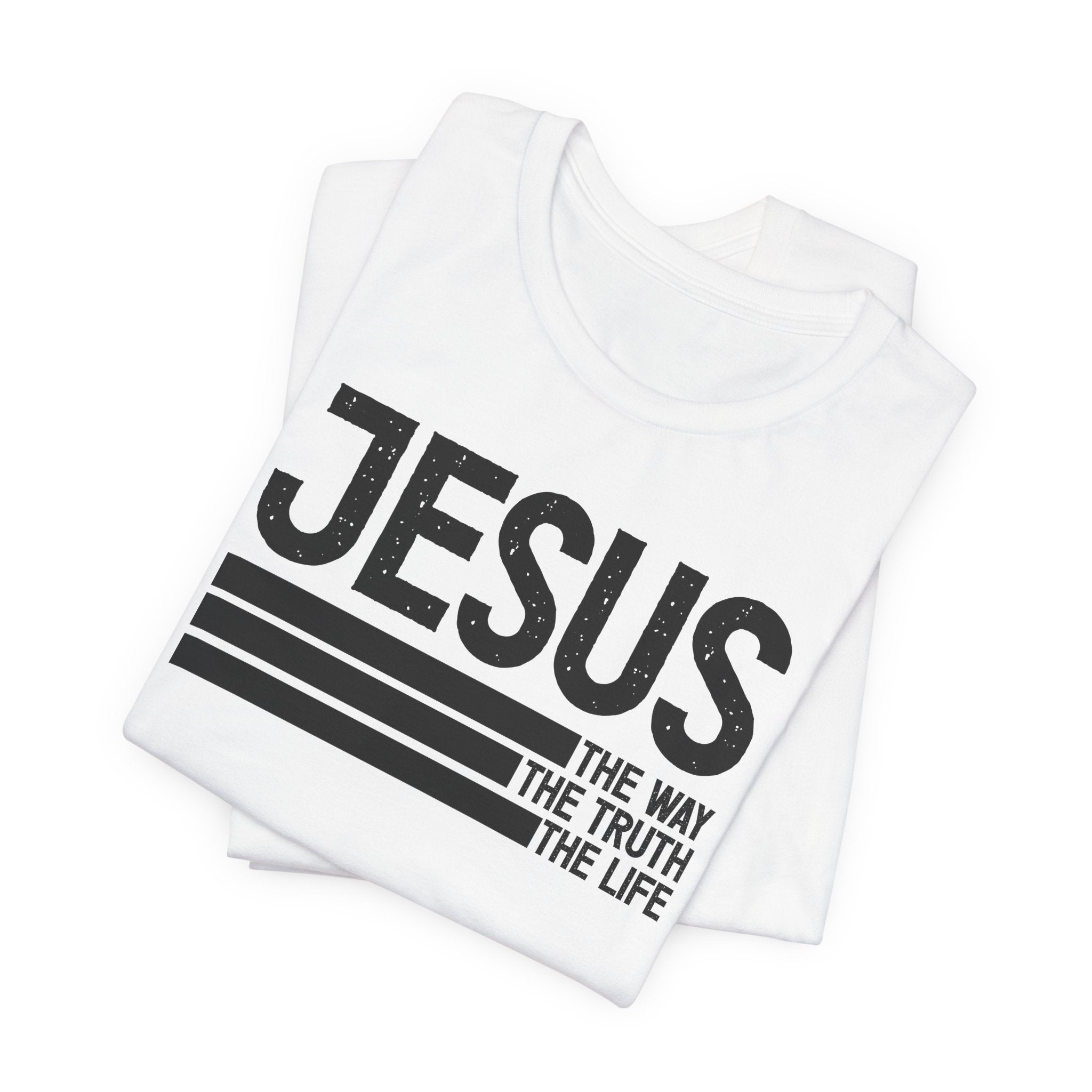 Bold Declaration — this “Jesus: The Way, The Truth, The Life” tee shares the powerful words of John 14:6 with minimalist strength.