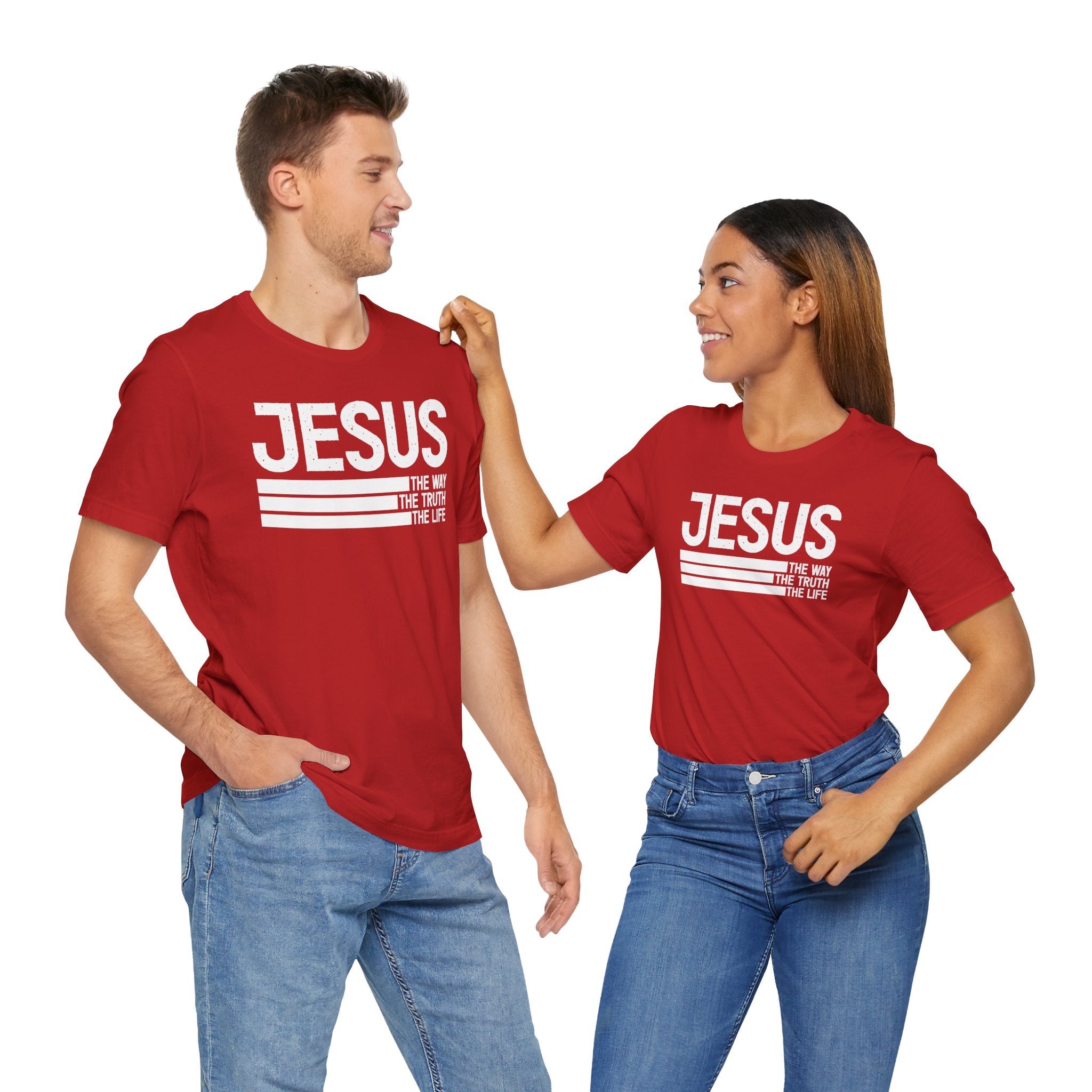 Jesus The Way tee • a bold Christian T-shirt proclaiming John 14:6 — “The Way, The Truth, The Life,” a timeless message of salvation.
