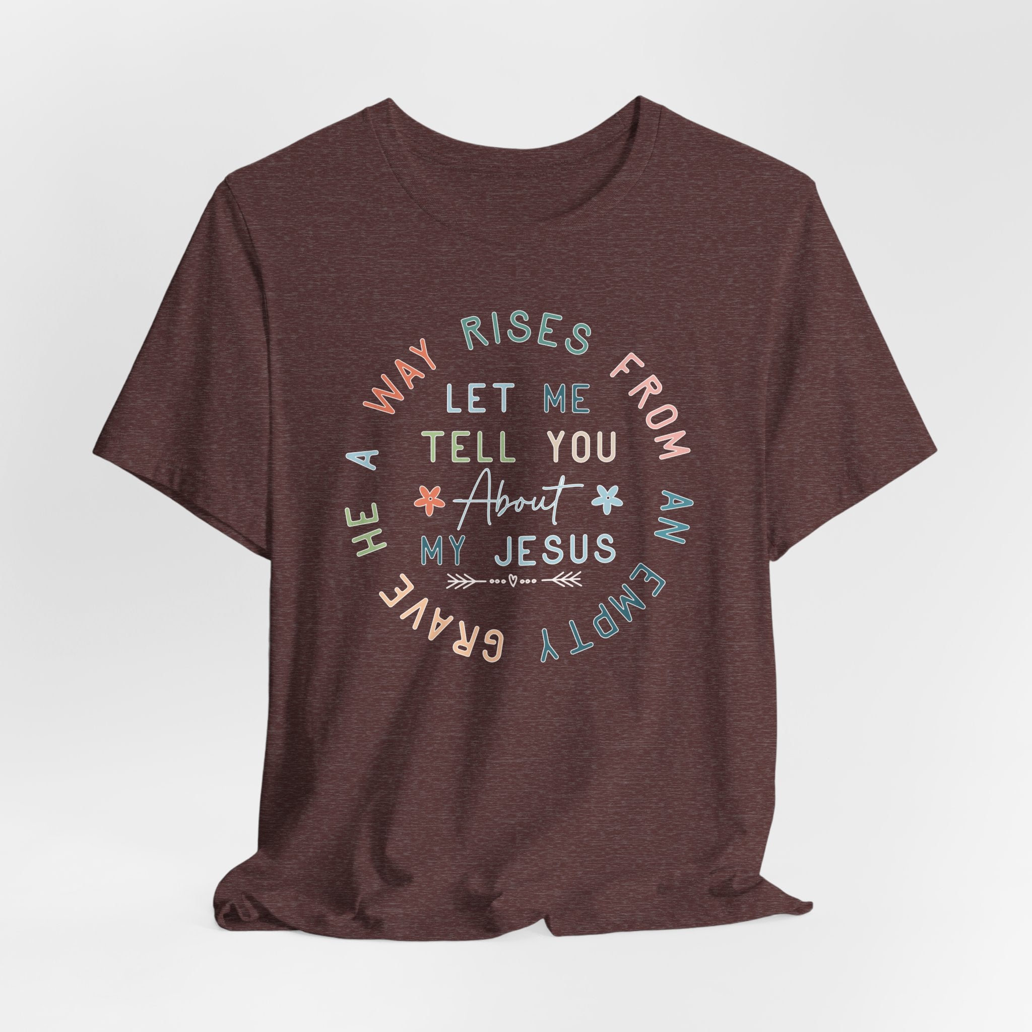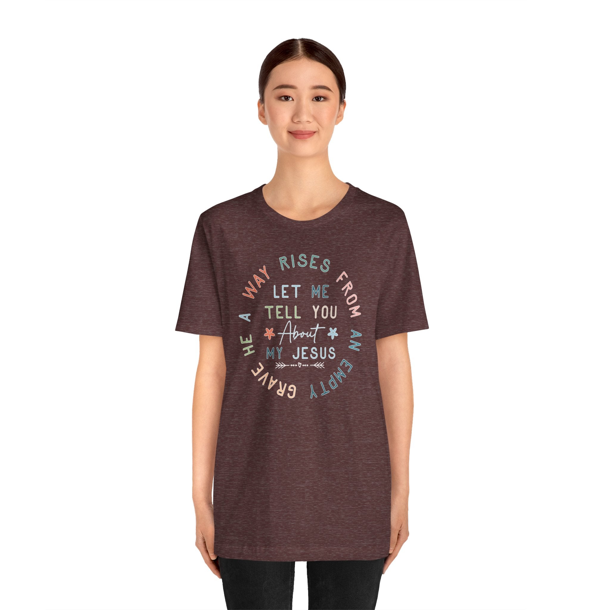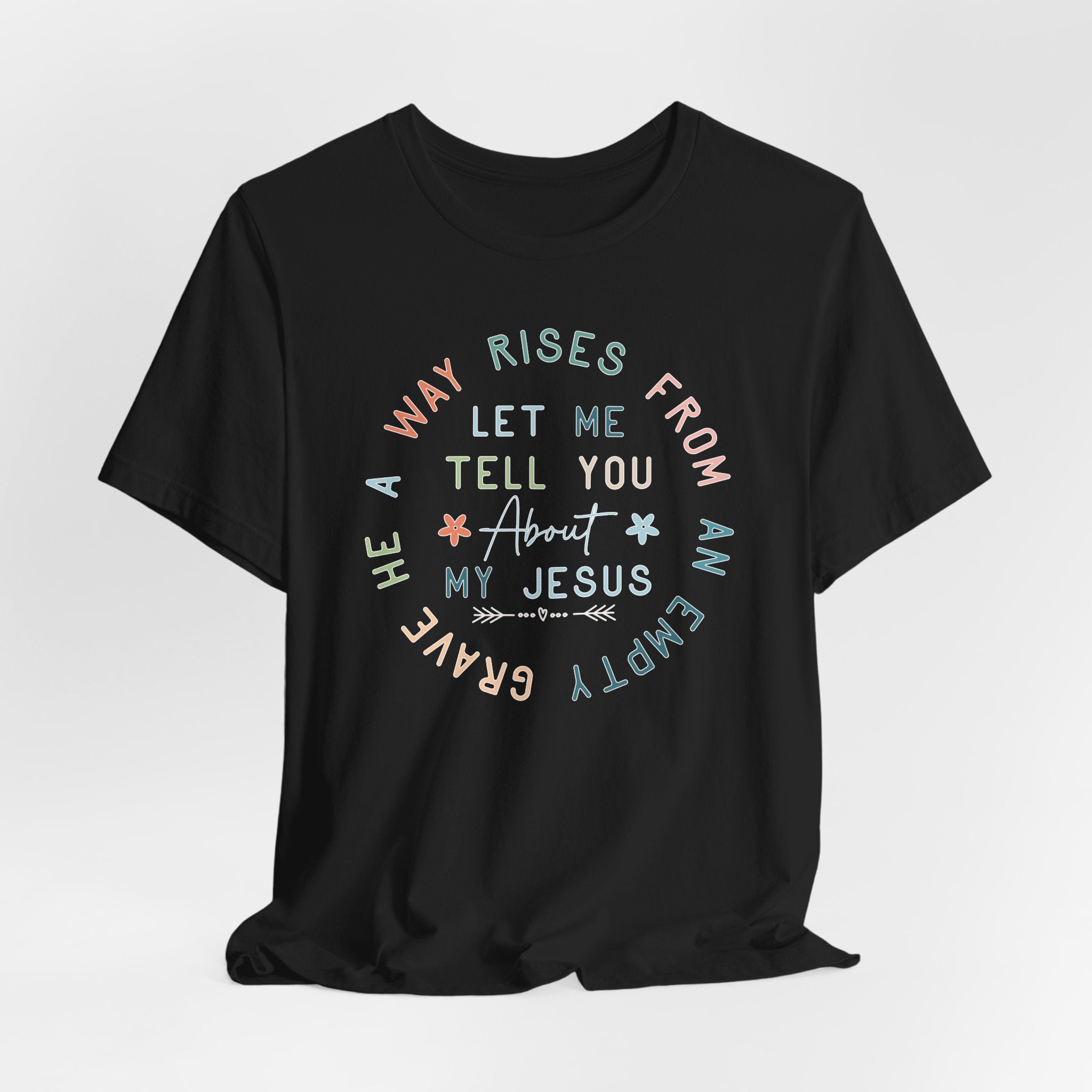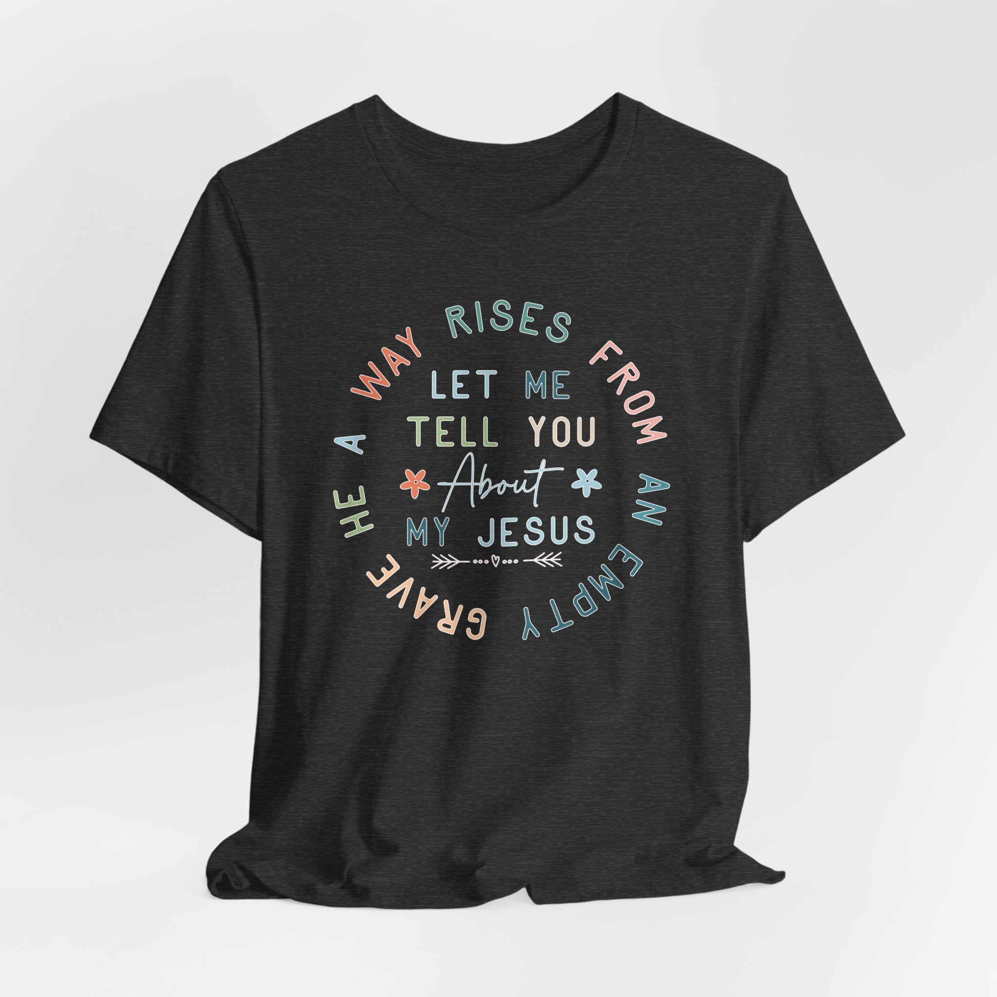 Let Me Tell You About My Jesus tee • a joyful Christian T-shirt that shares the Gospel boldly and celebrates the risen Savior.
