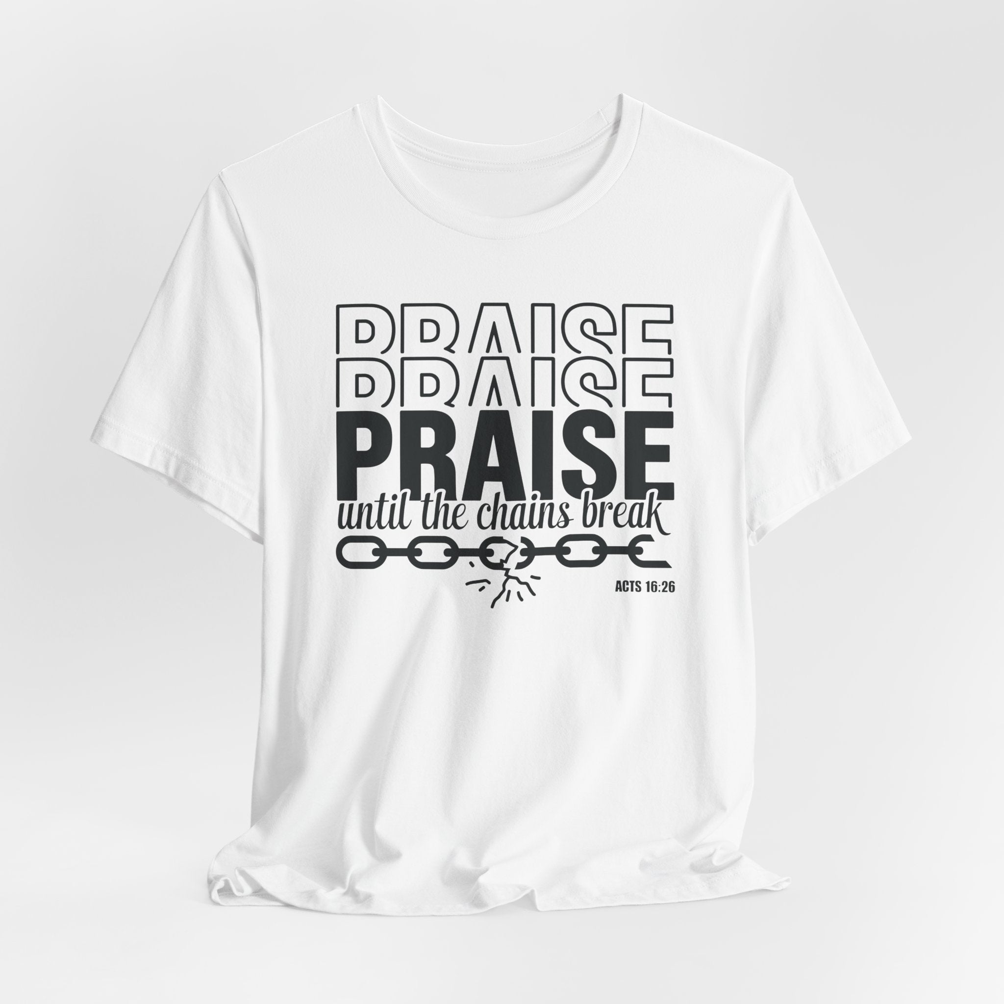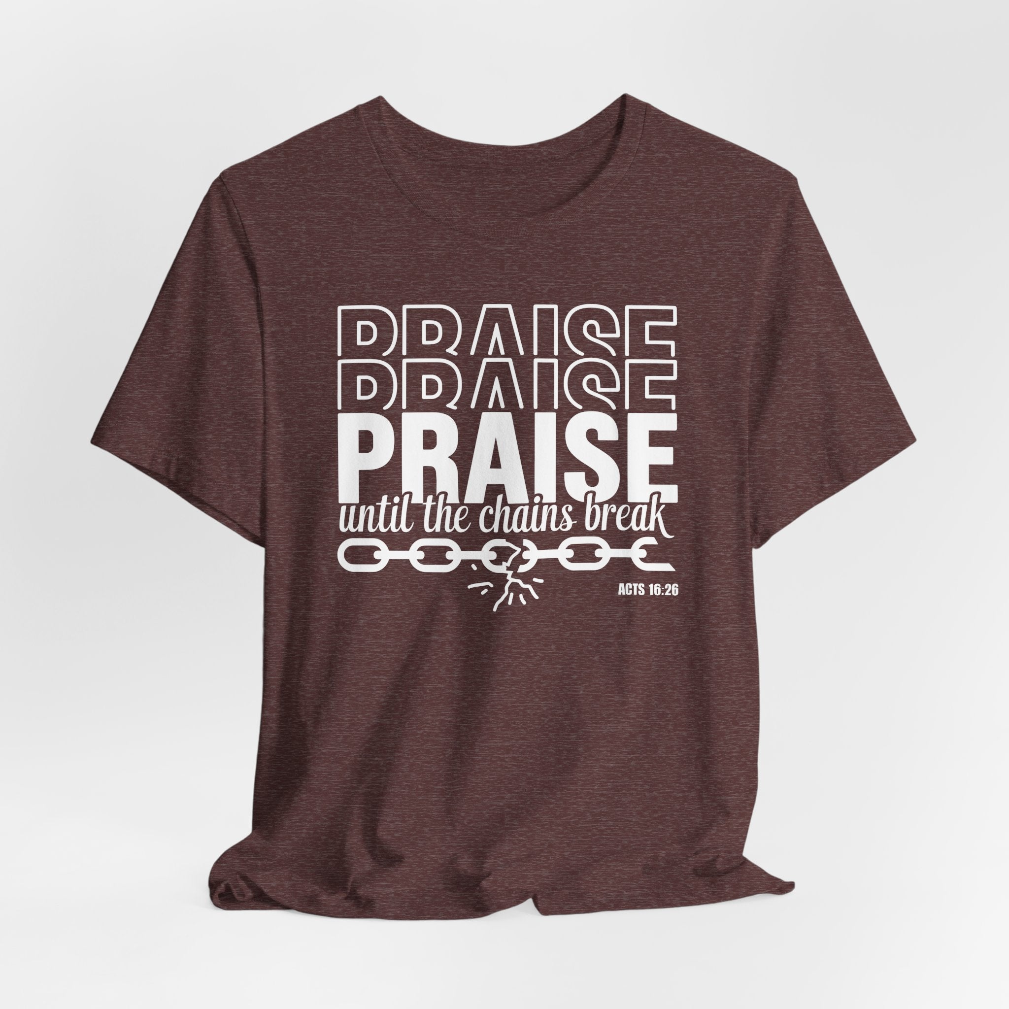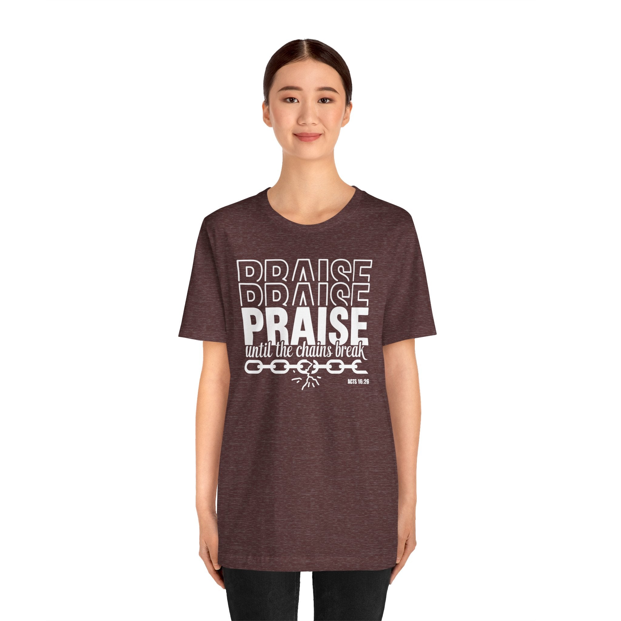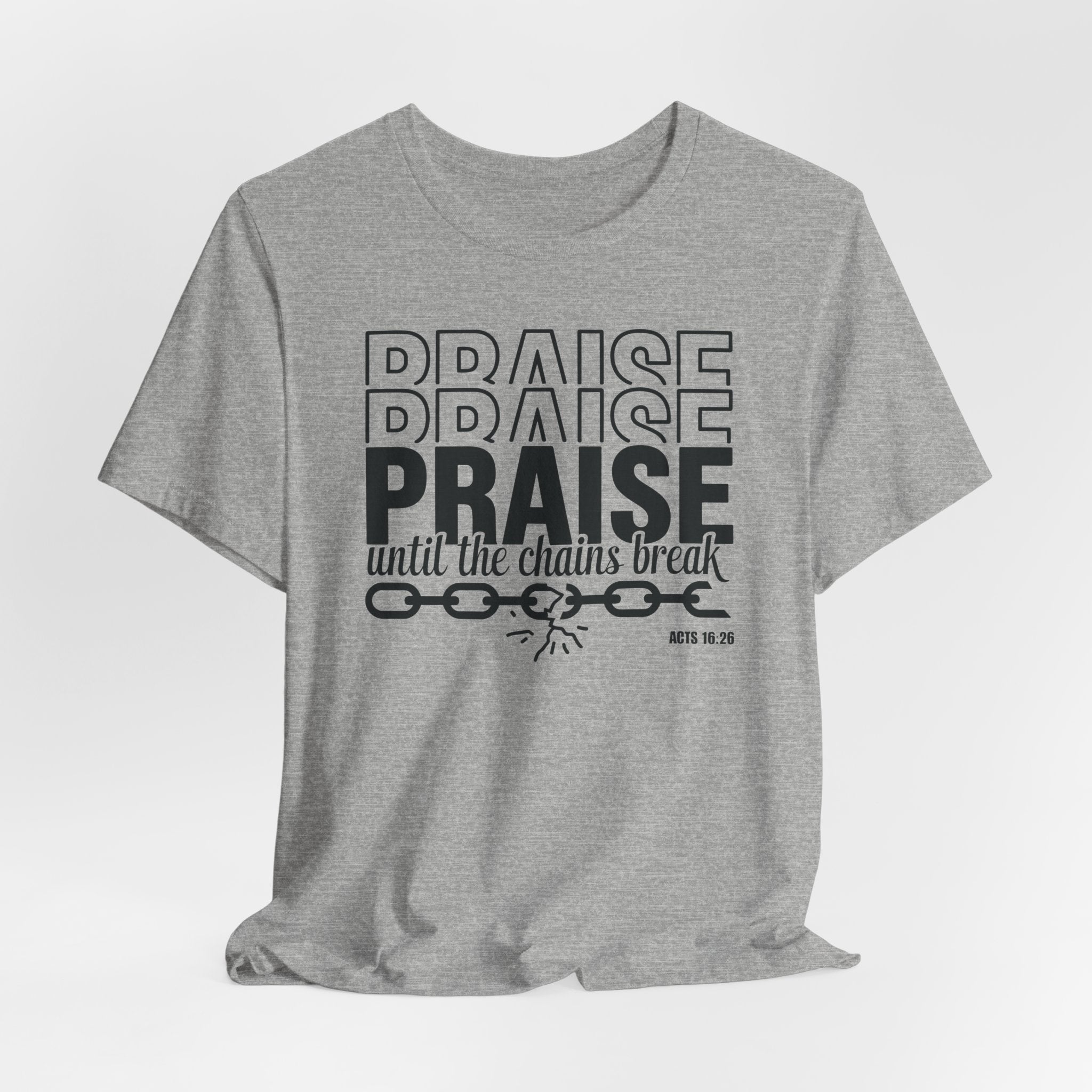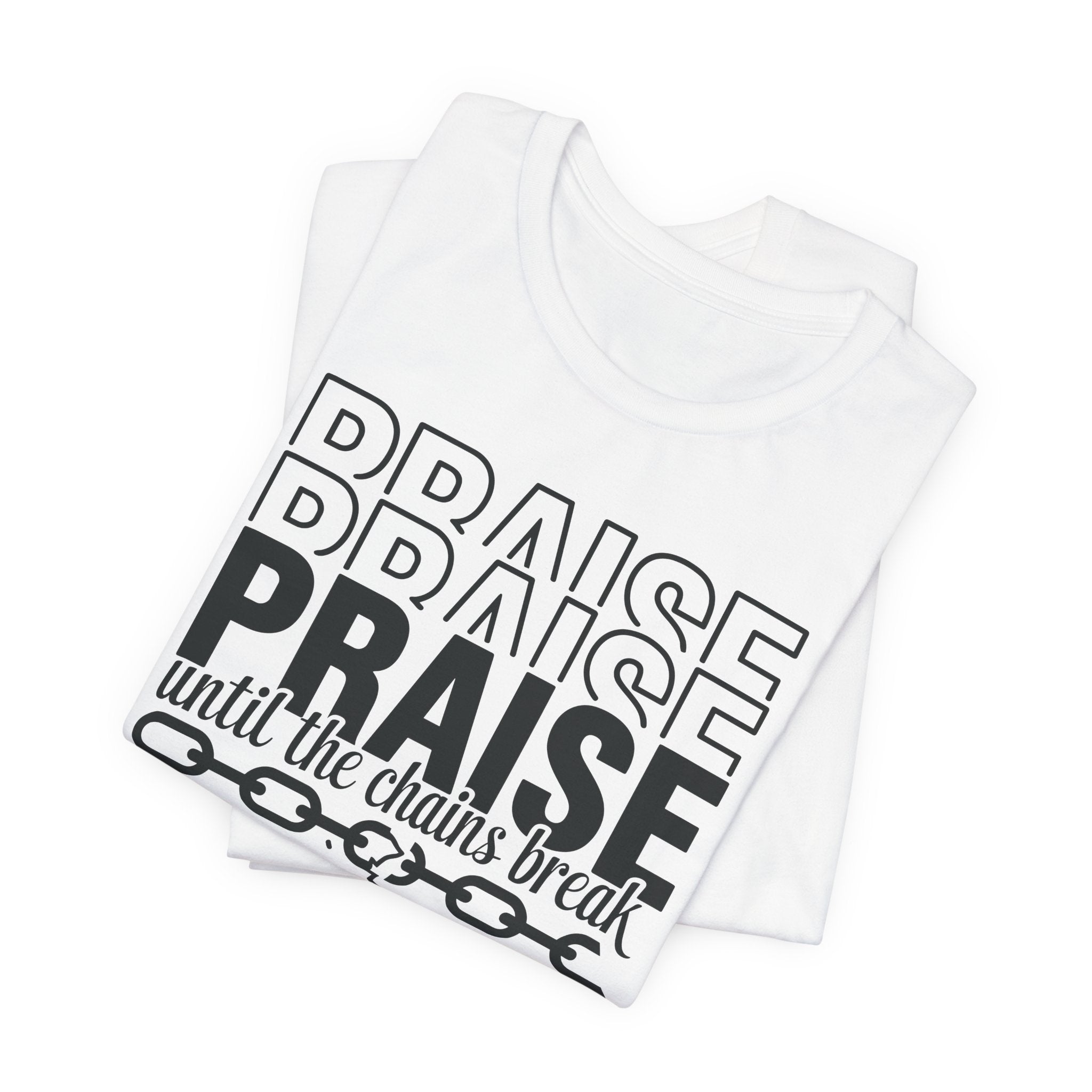 Praise Until the Chains Break tee • a bold Christian T-shirt reminding believers that worship brings freedom and breakthrough through Jesus.