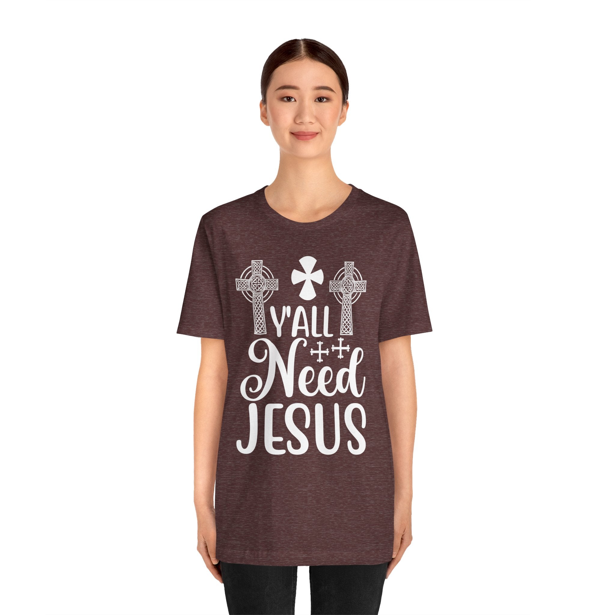 Y’all Need Jesus tee • a fun and confident Christian T-shirt reminding everyone of the real solution — more Jesus in our lives.