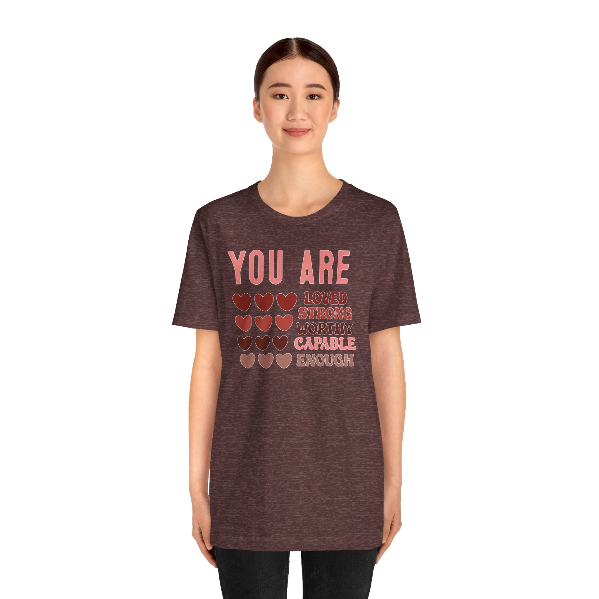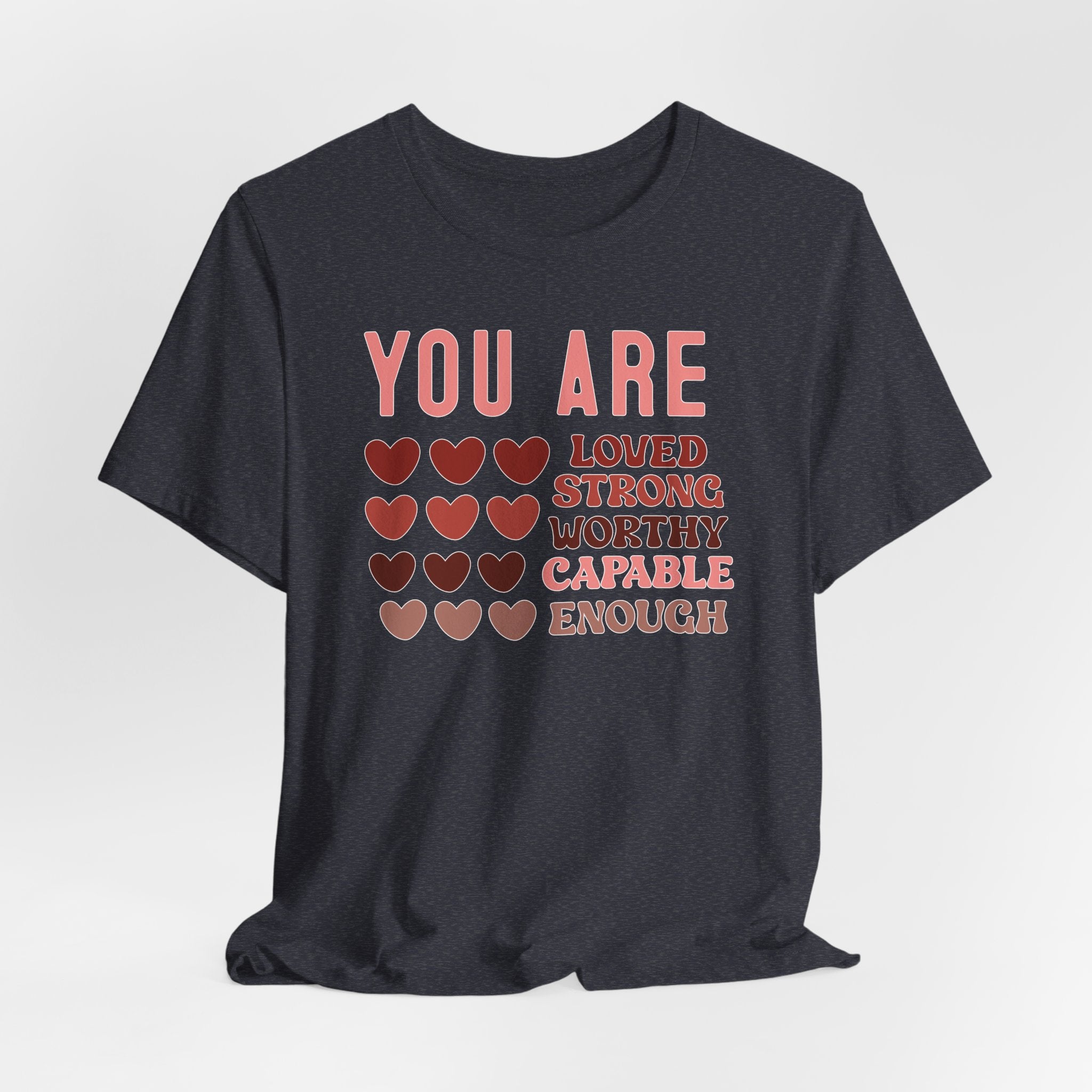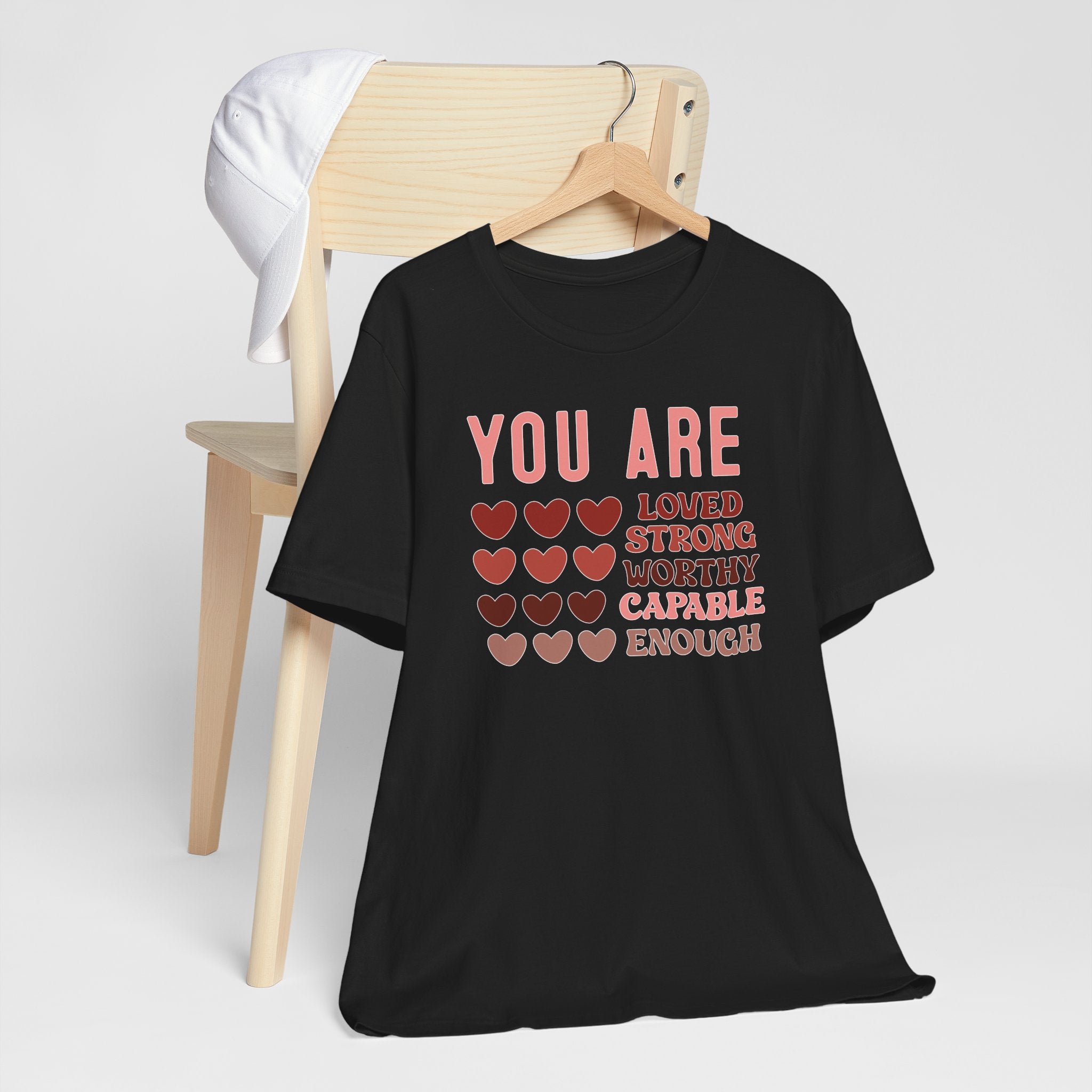 You Are Loved Strong Worthy tee • an encouraging Christian T-shirt reminding believers of their true value and identity in Christ.