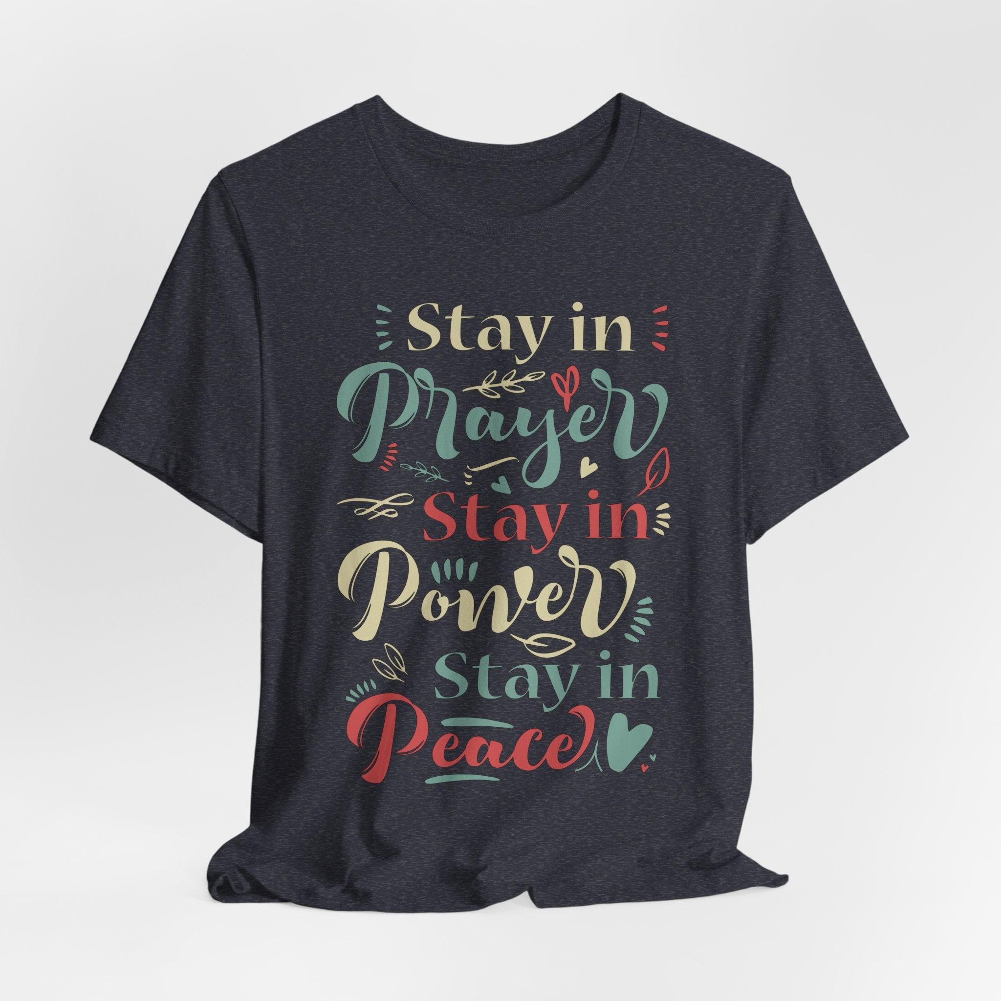 Stay in Prayer Power Peace tee • a calming Christian T-shirt encouraging a life rooted in prayer, God’s strength, and His perfect peace.