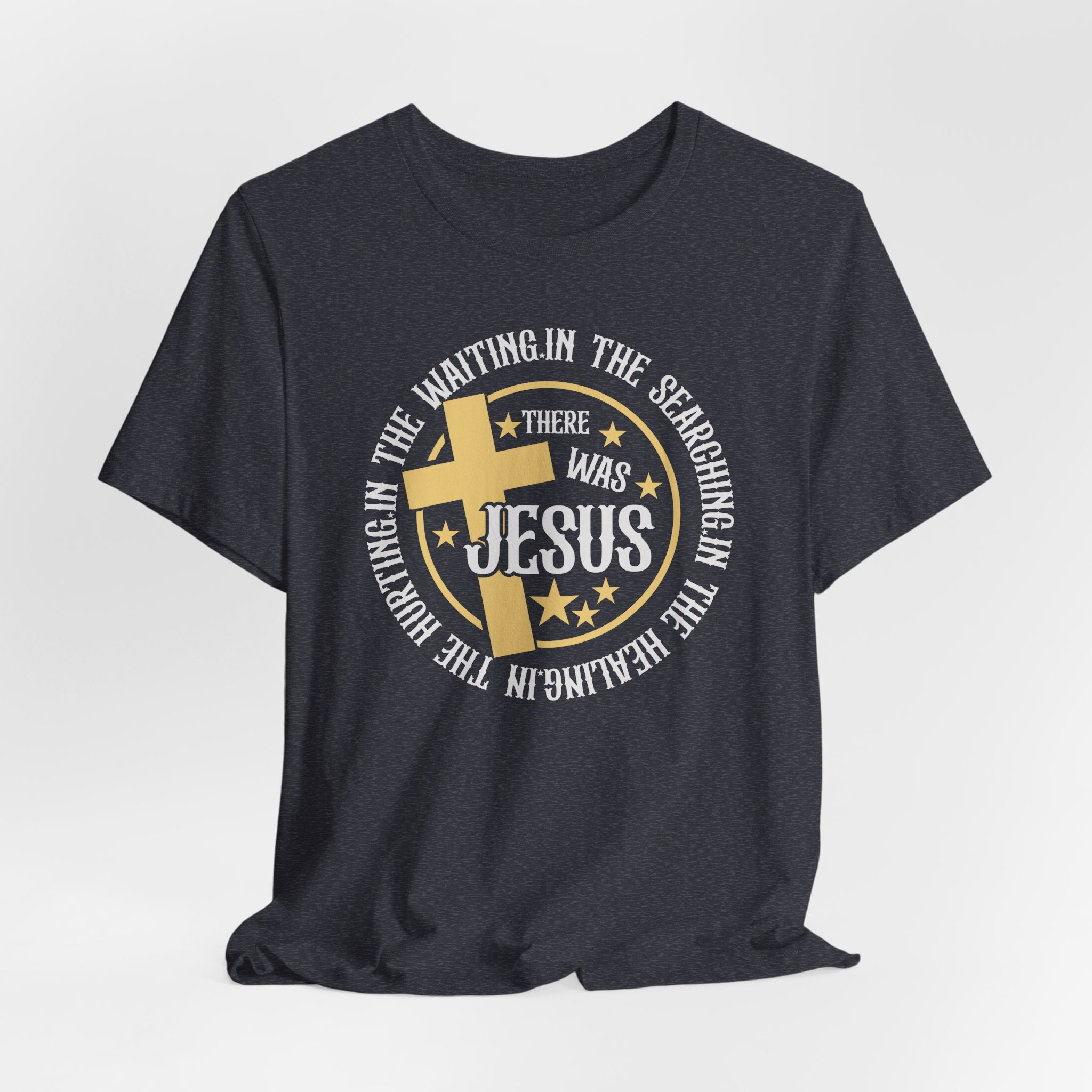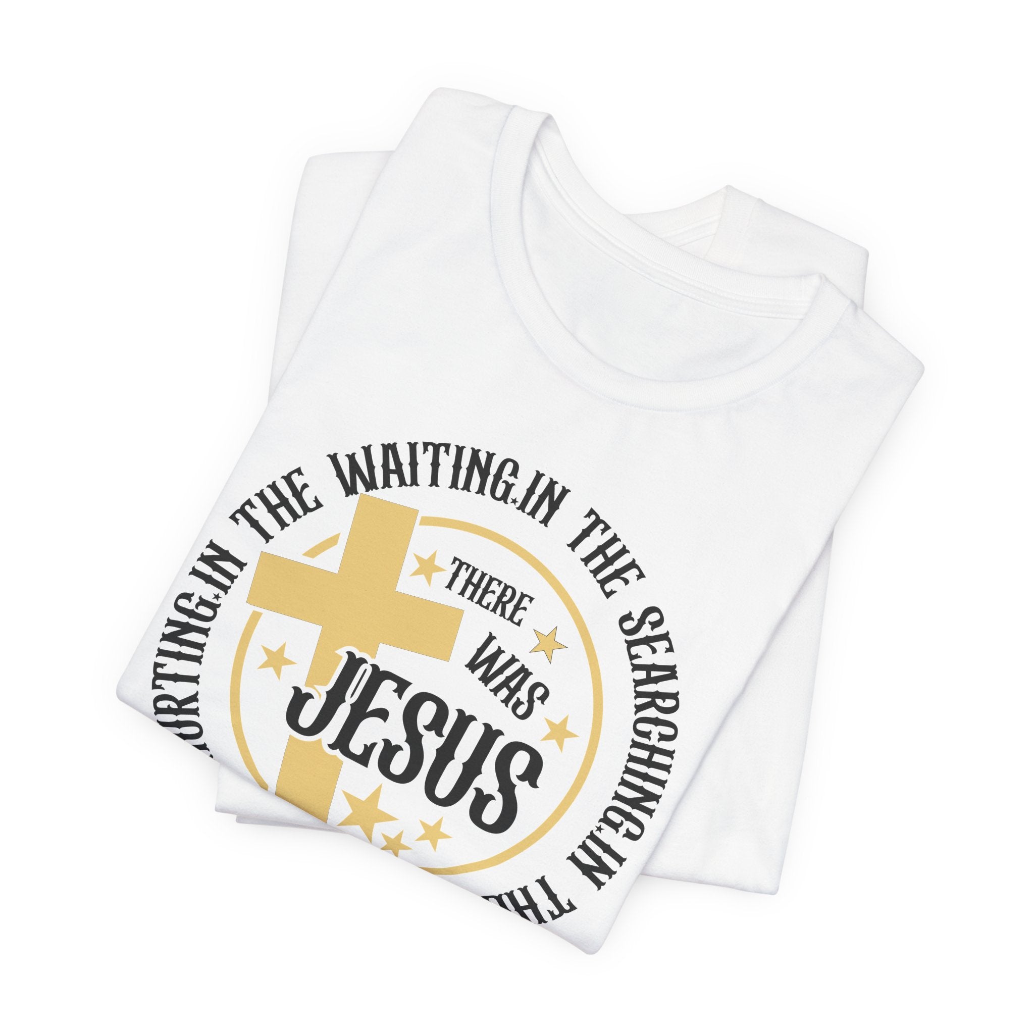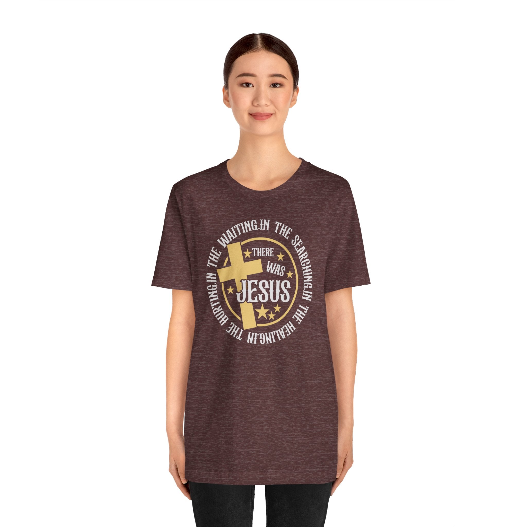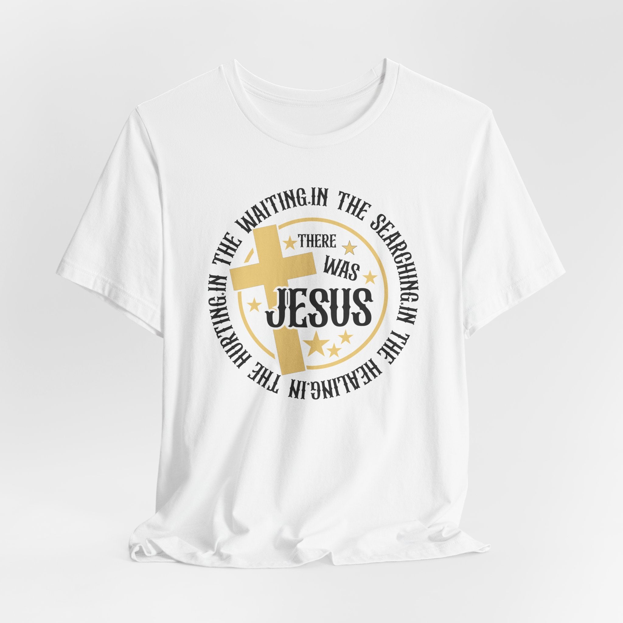 There Was Jesus tee • a comforting Christian T-shirt reminding believers that Jesus is always present — in waiting, searching, healing, and hurting.