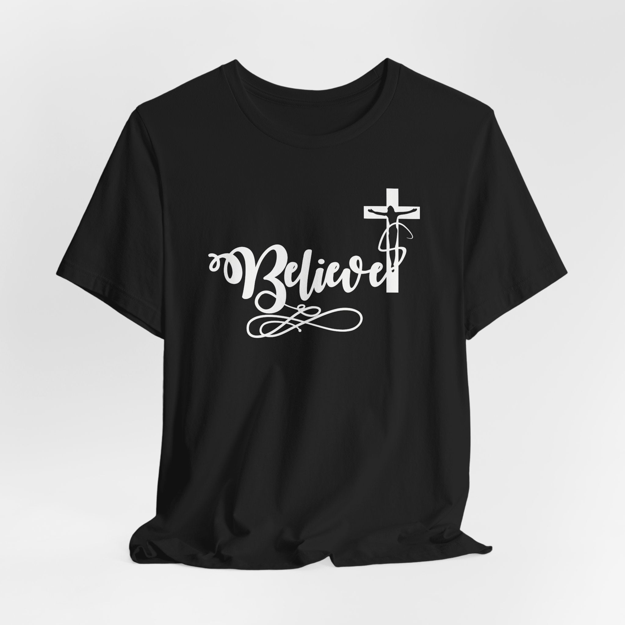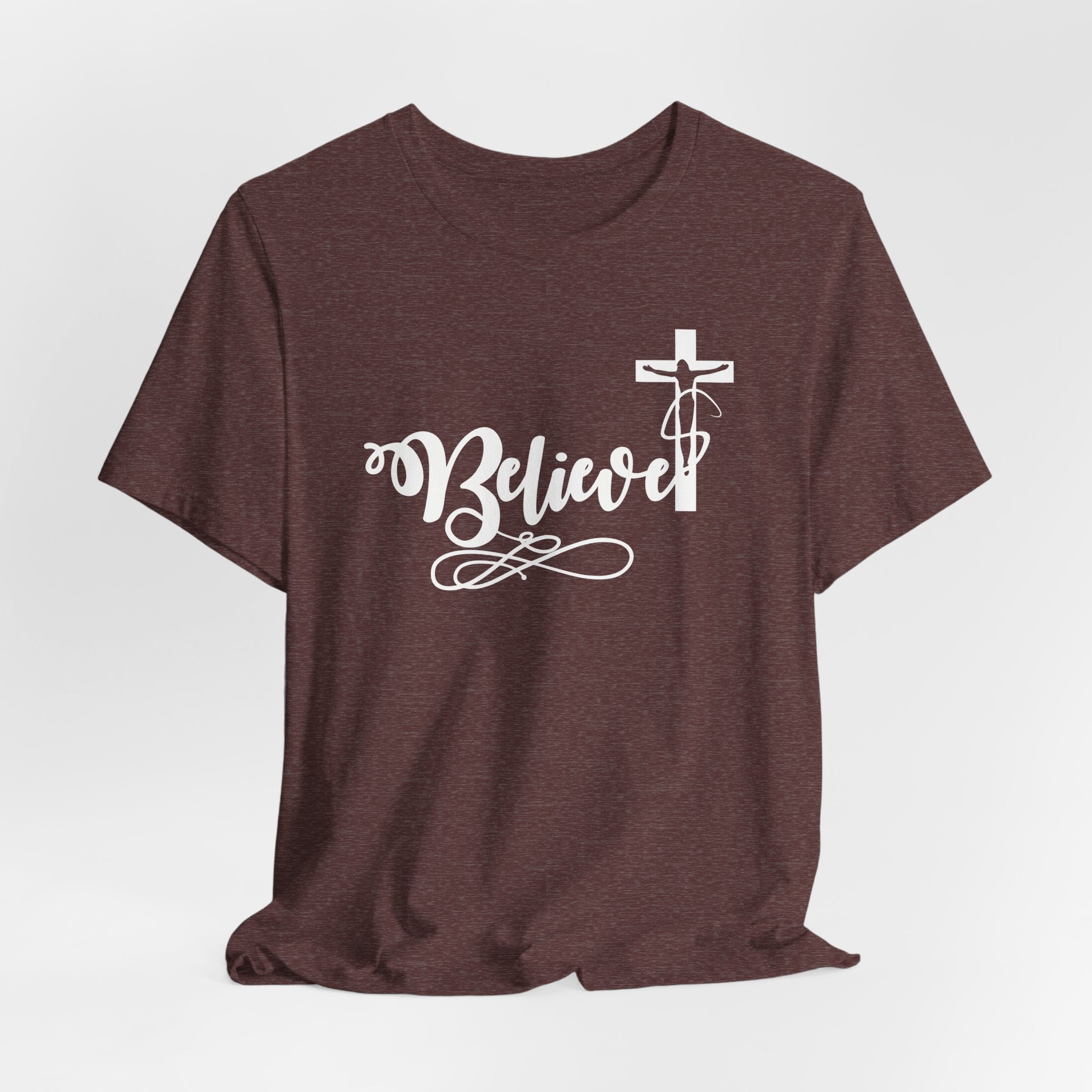 Believer tee • a bold Christian T-shirt celebrating salvation and faith in Jesus through His finished work on the cross.