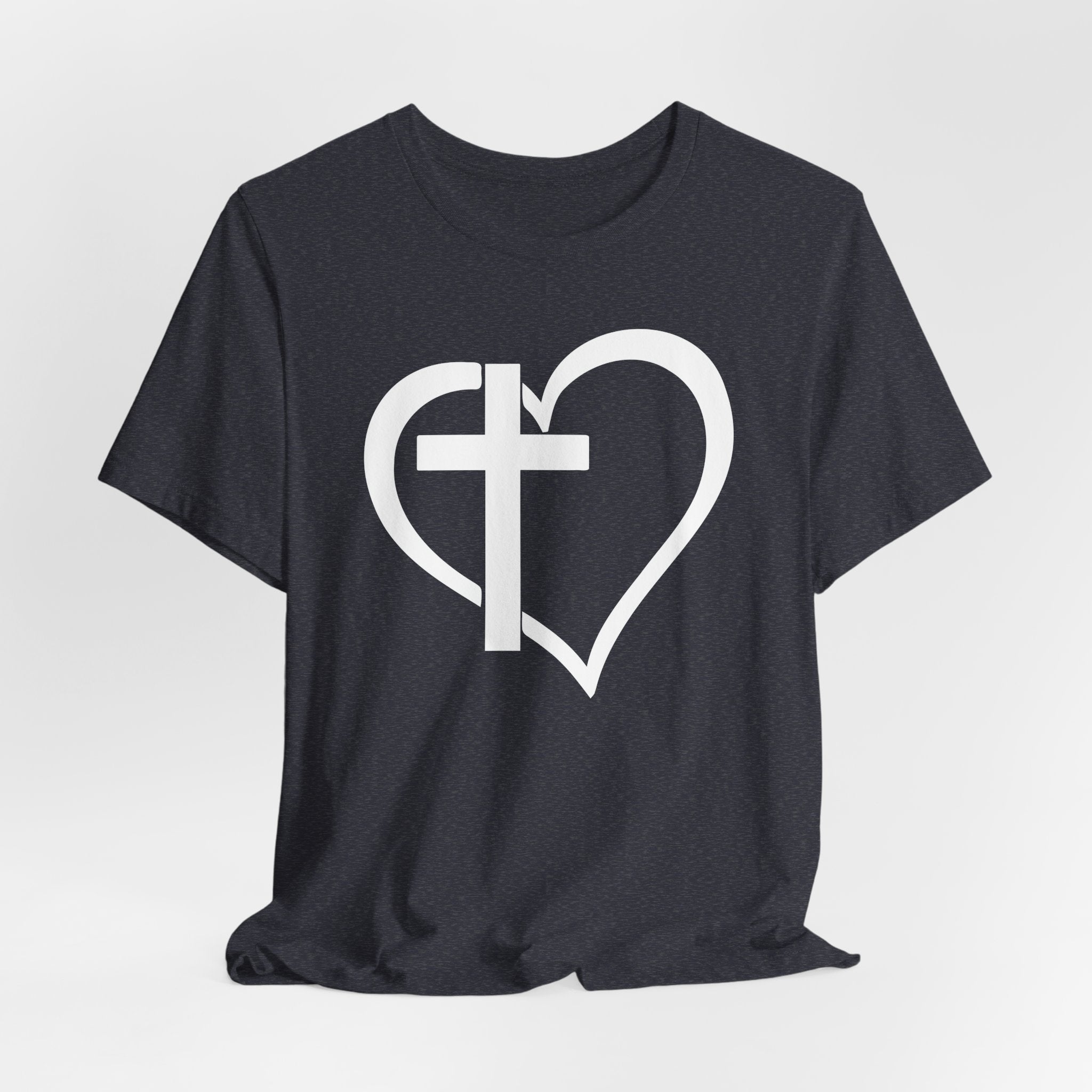 Cross Heart tee • a minimalist Christian T-shirt blending the cross and heart to express Jesus’ love and our salvation.