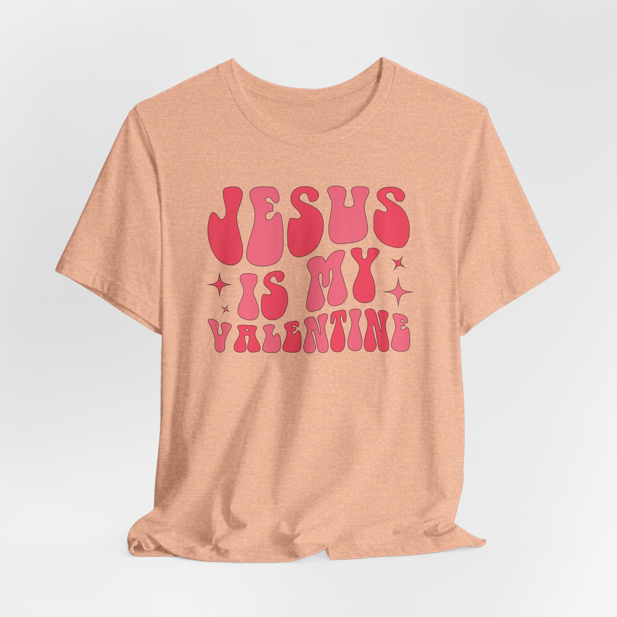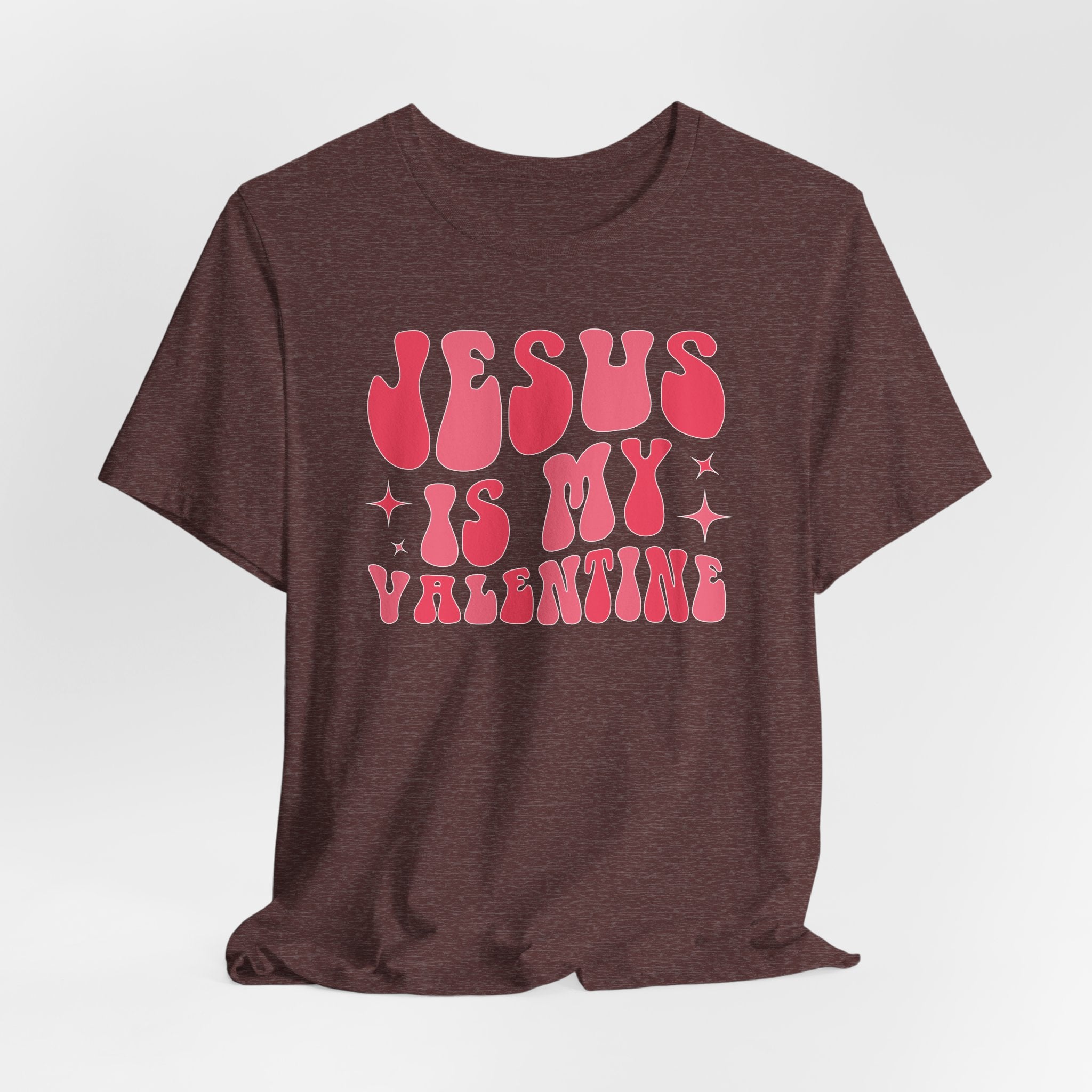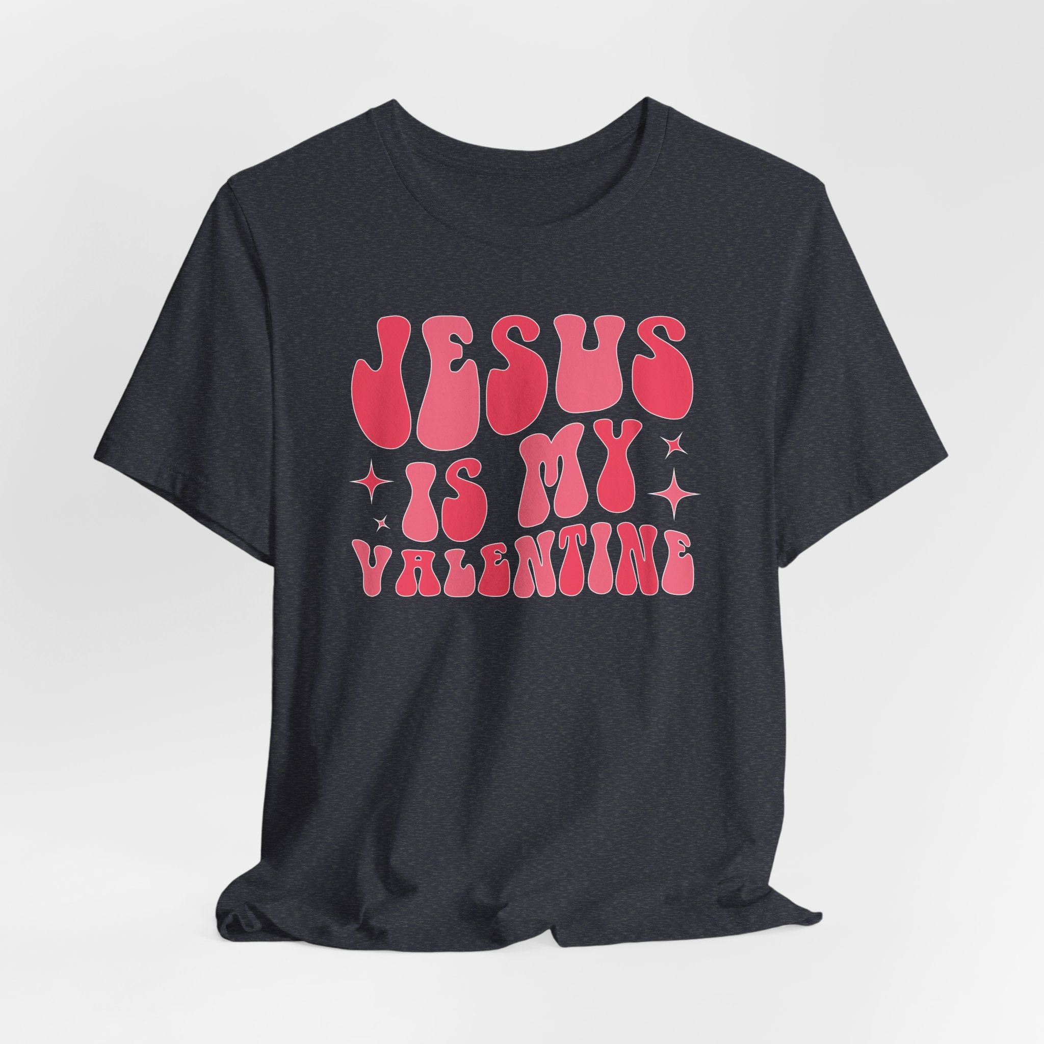 Jesus Is My Valentine tee — a groovy, retro Christian T-shirt celebrating Christ as the true source of love.