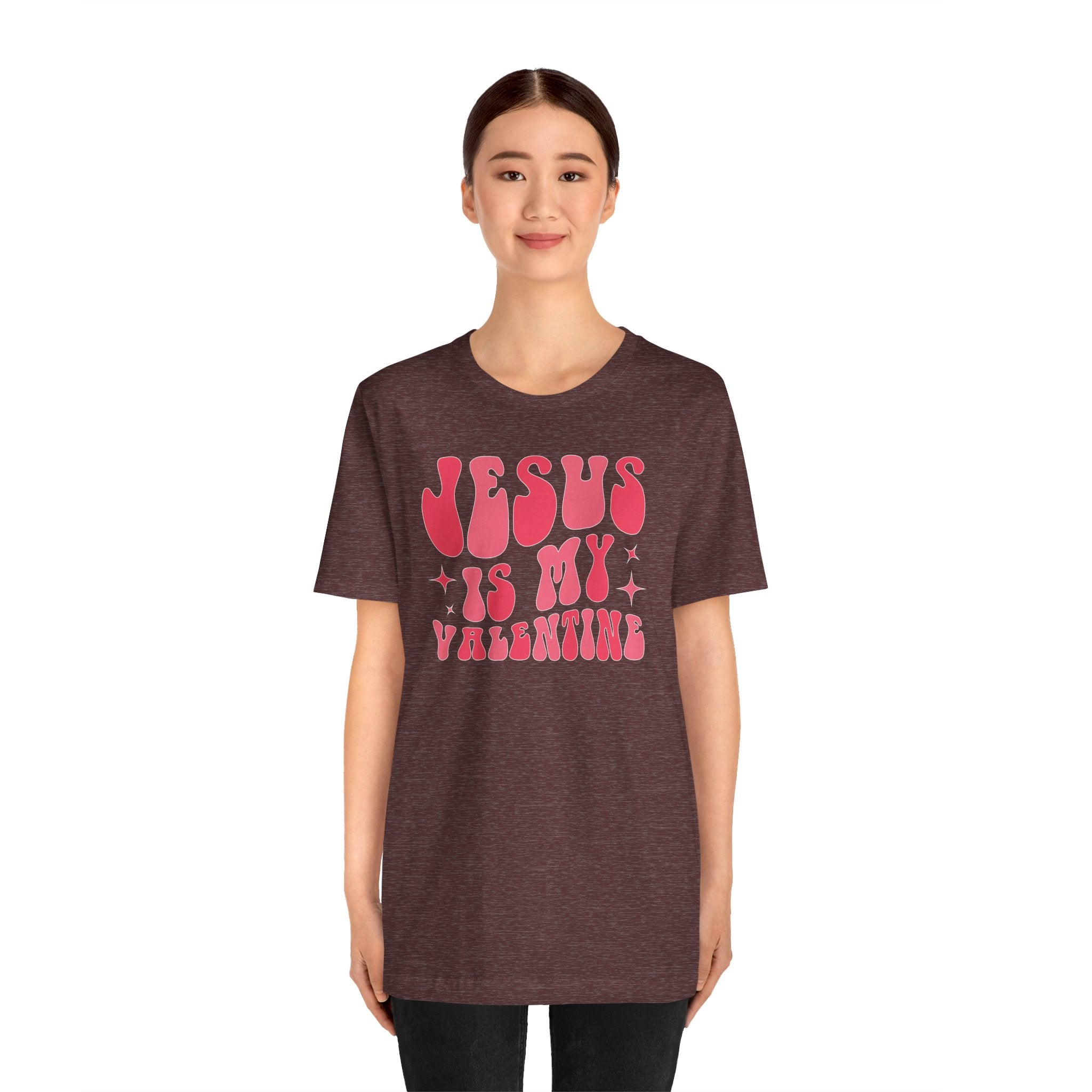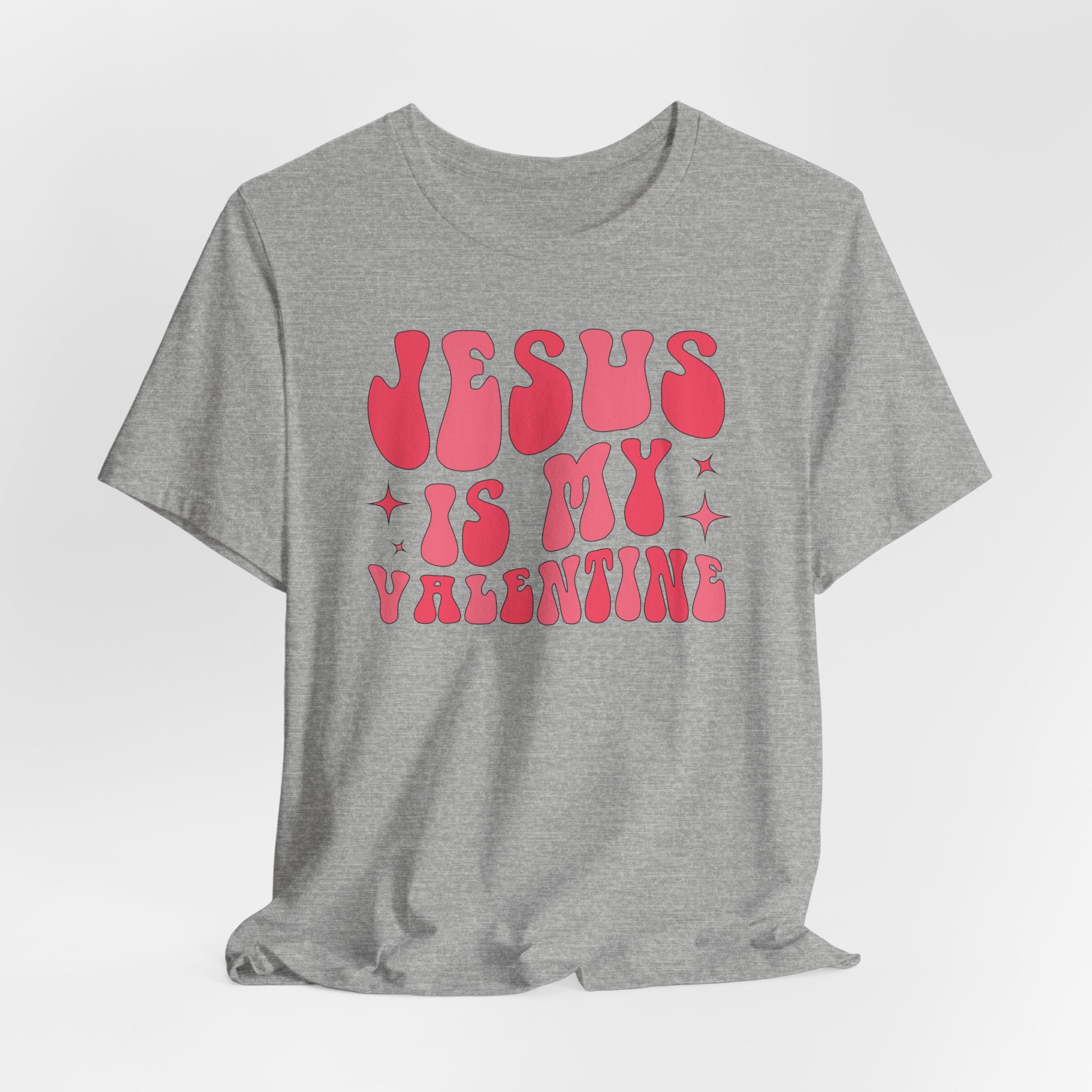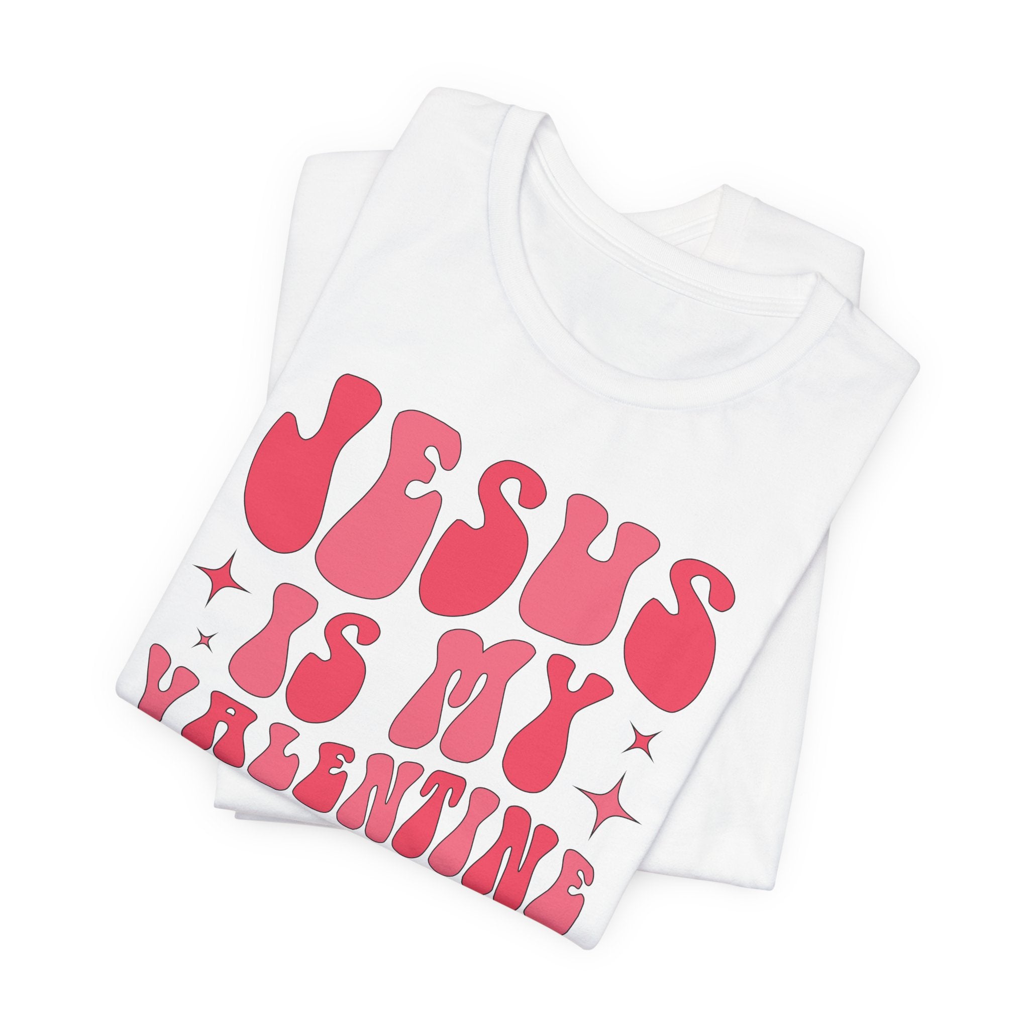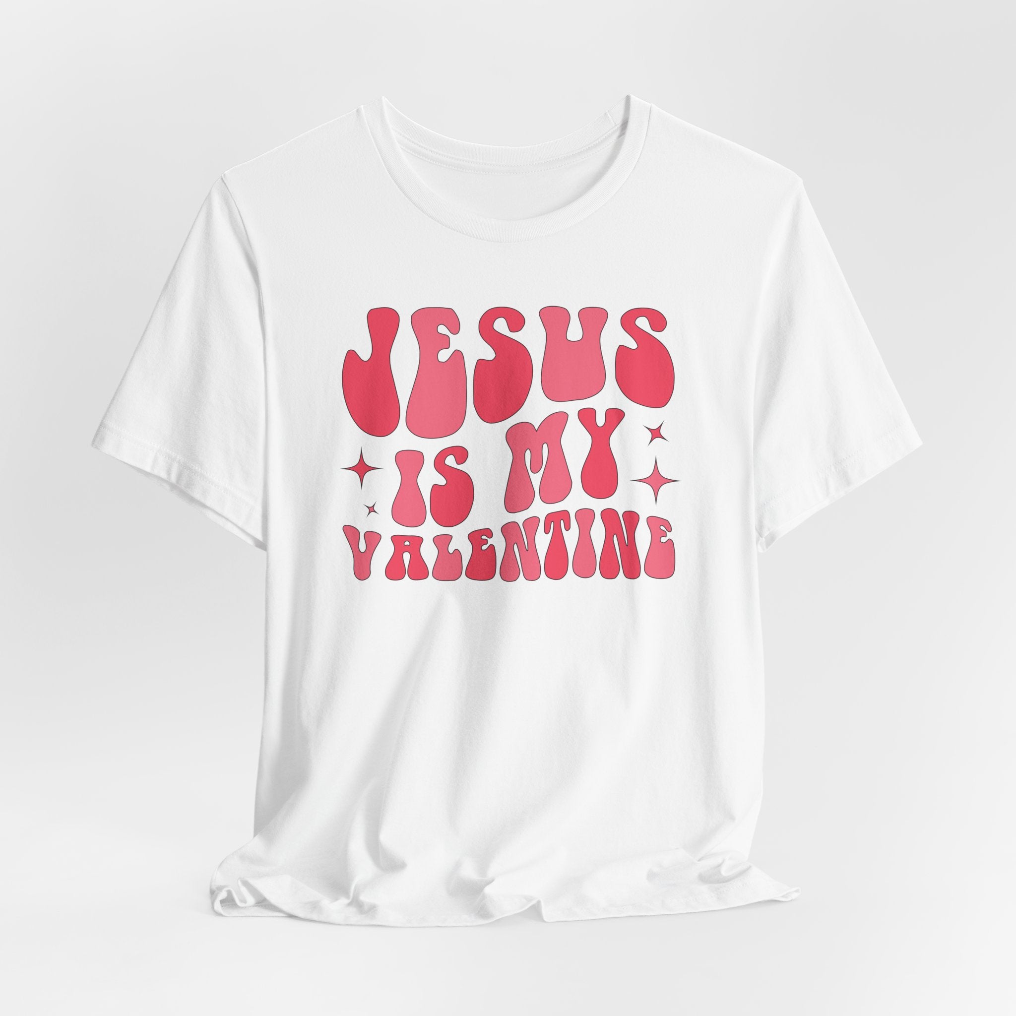 Jesus Is My Valentine tee — a groovy, retro Christian T-shirt celebrating Christ as the true source of love.