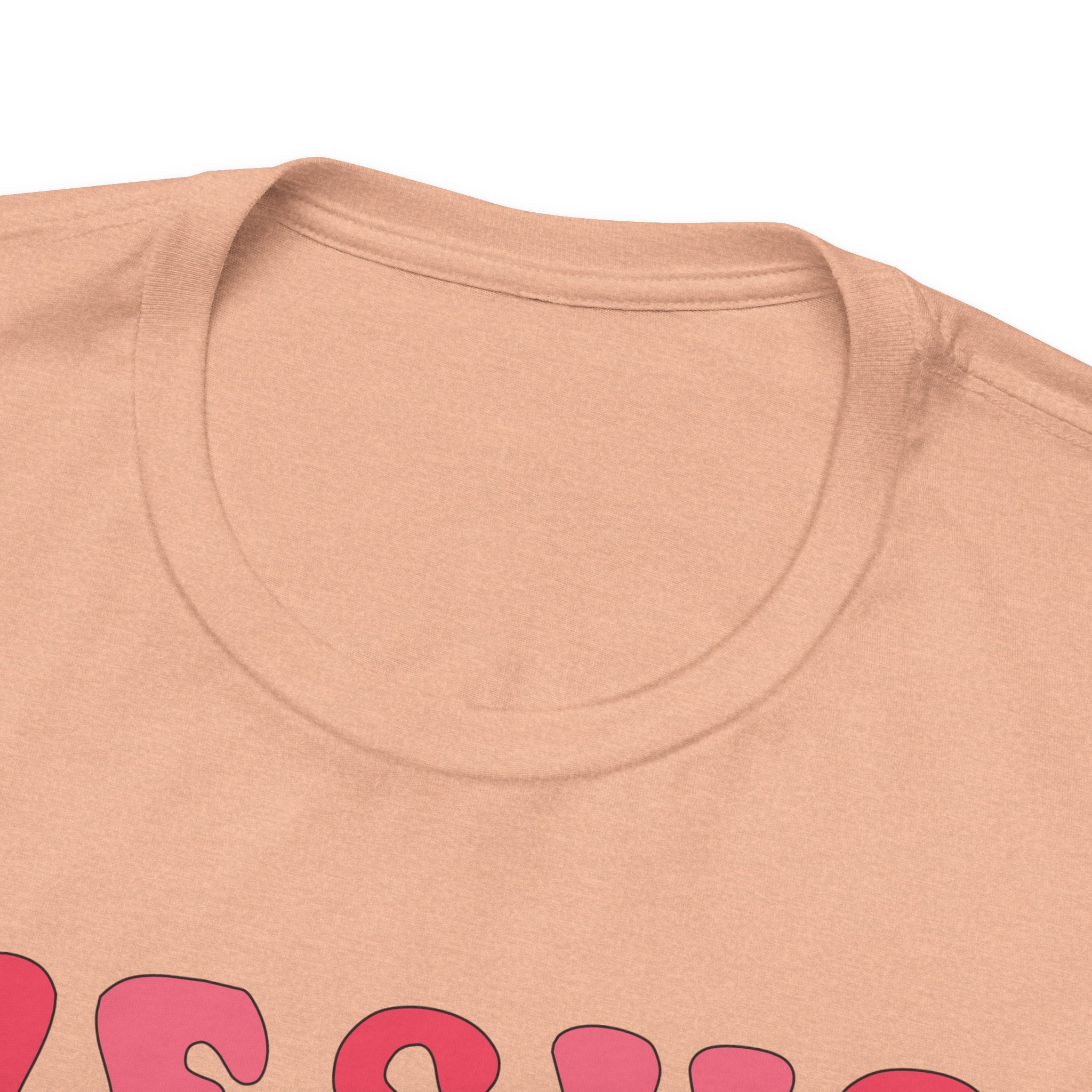 Fun & Faithful Style: The 70s-inspired groovy font in shades of pink makes this a fun and fashionable faith tee for the Valentine's season or any day.