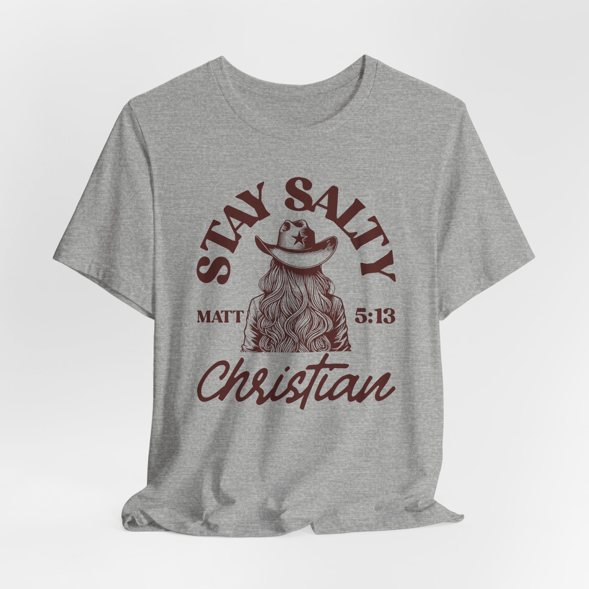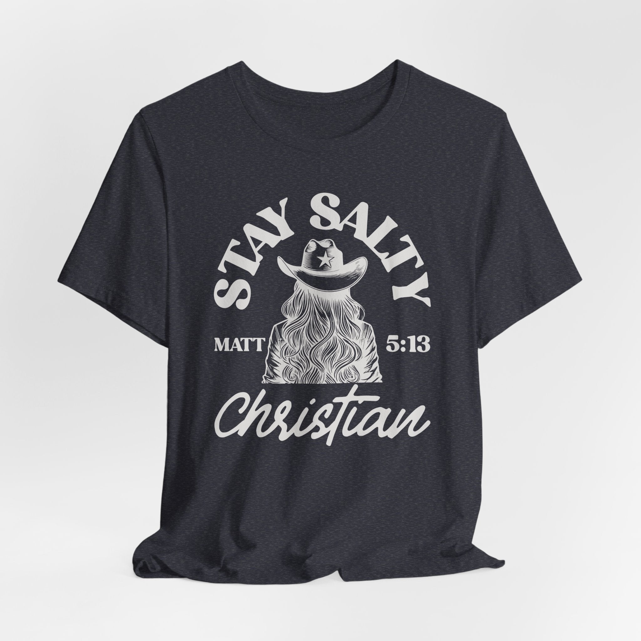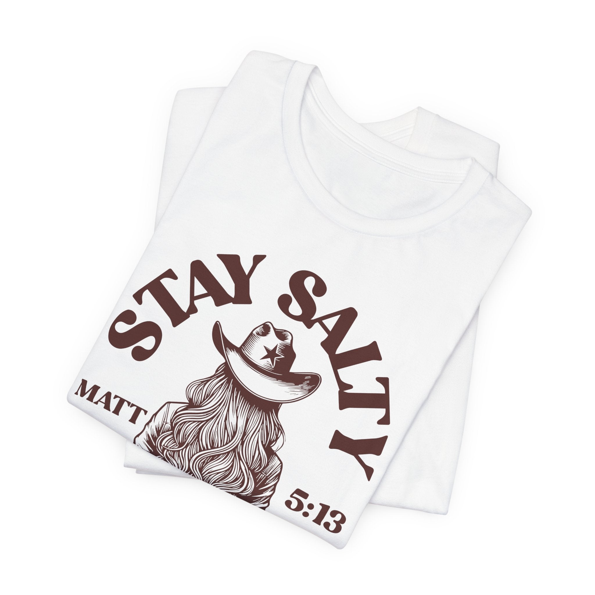 Stay Salty tee — a western-style, empowering Christian T-shirt for the Christian cowgirl, from Matthew 5:13.