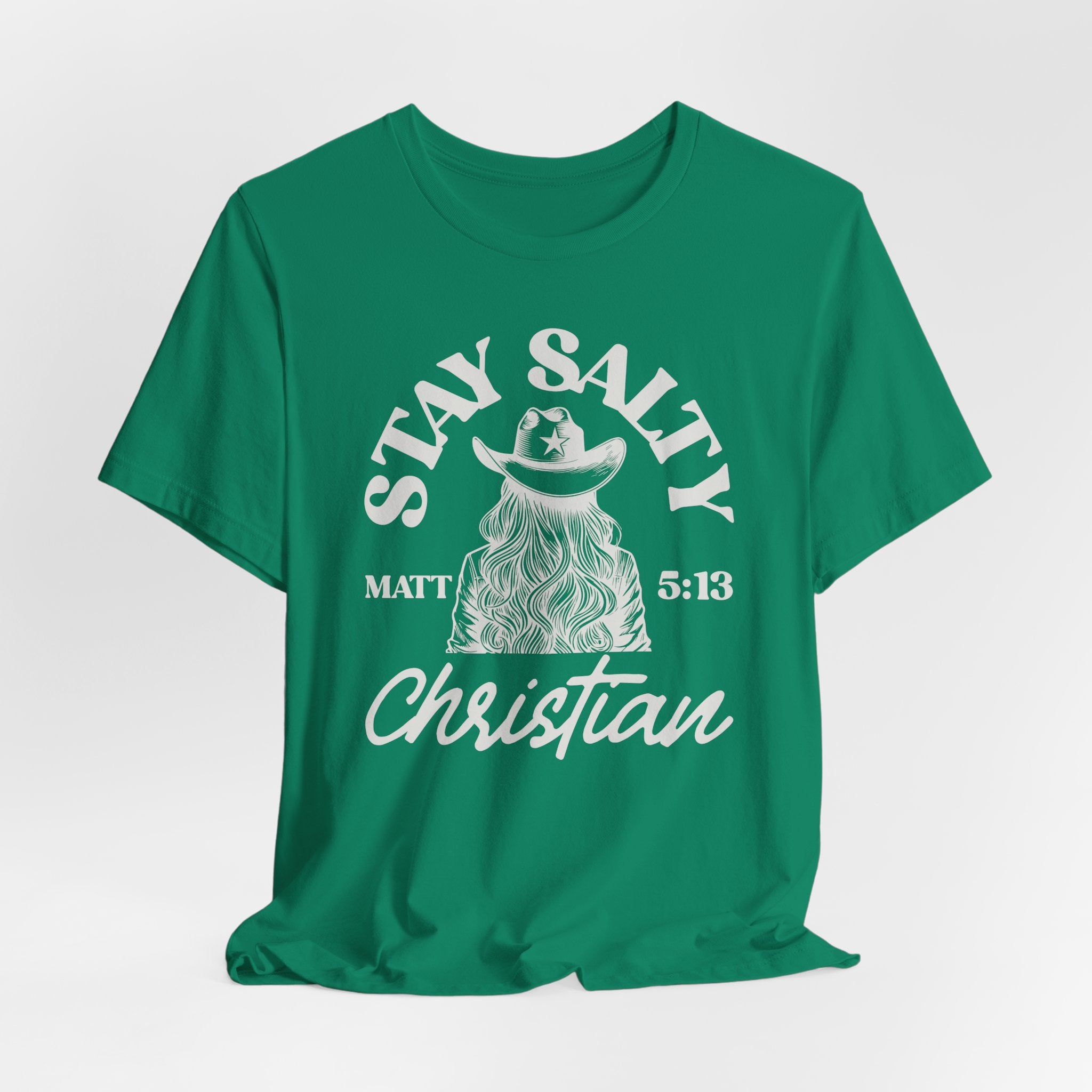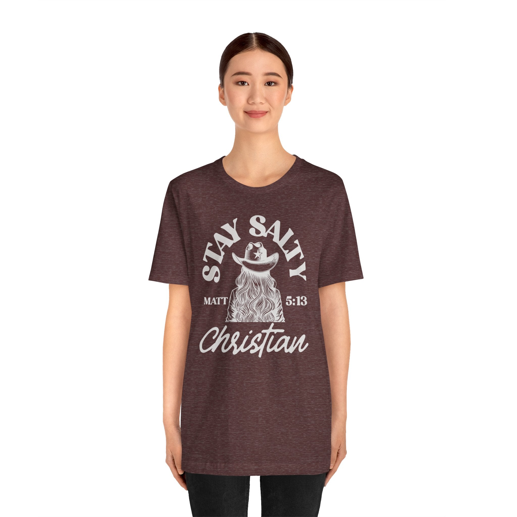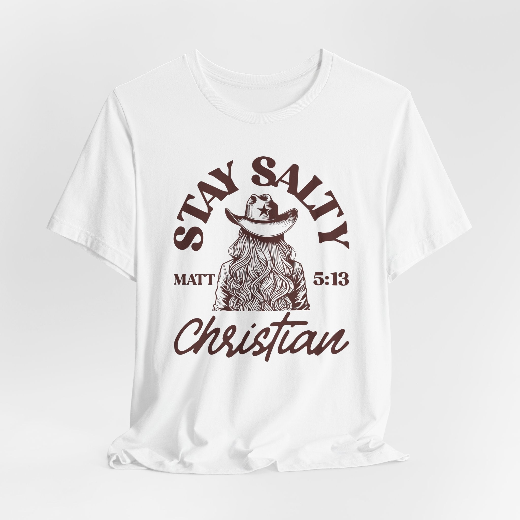 Stay Salty tee — a western-style, empowering Christian T-shirt for the Christian cowgirl, from Matthew 5:13.