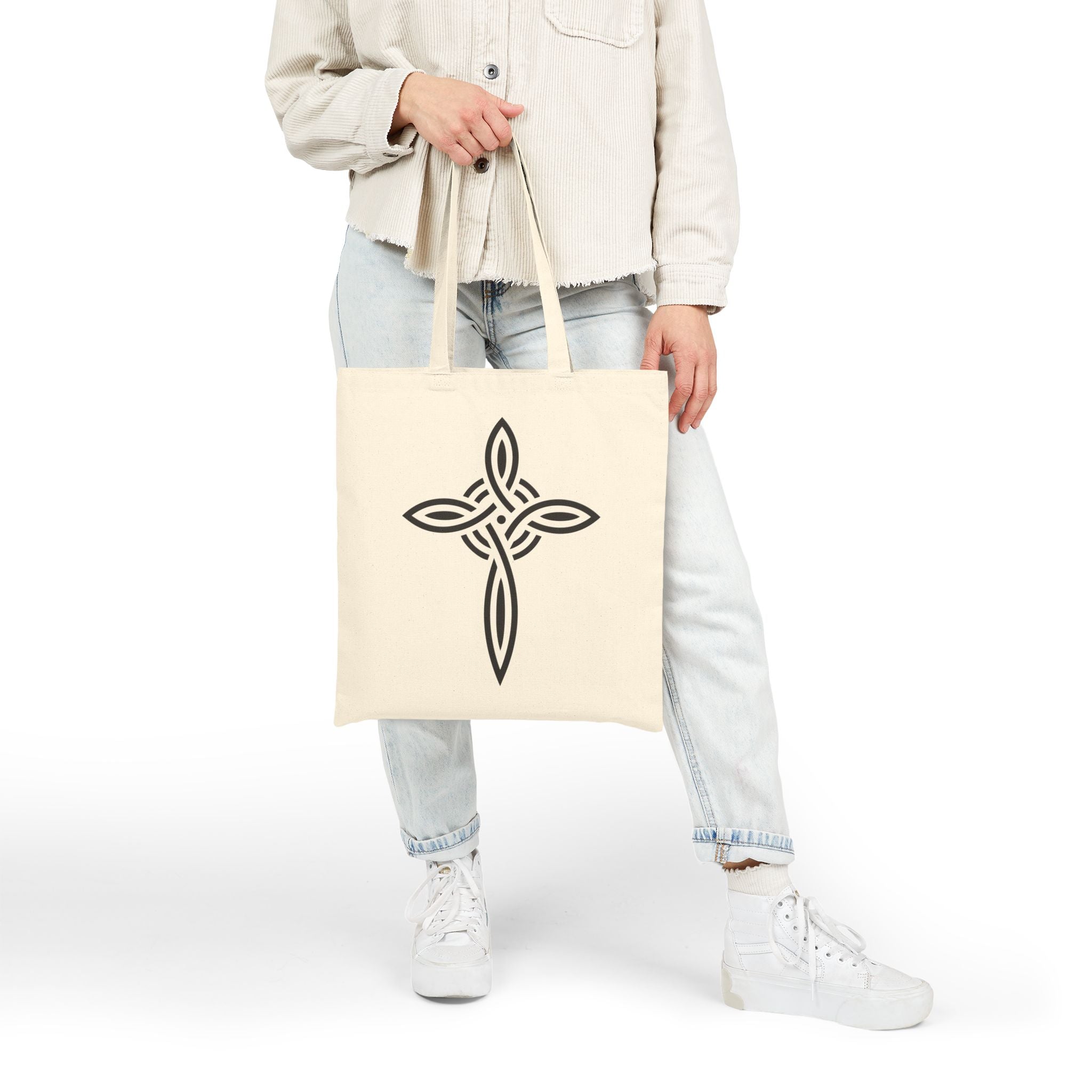 Celtic Cross tote bag — a timeless Christian canvas bag featuring a classic symbol of faith, spiritual heritage, and worship.